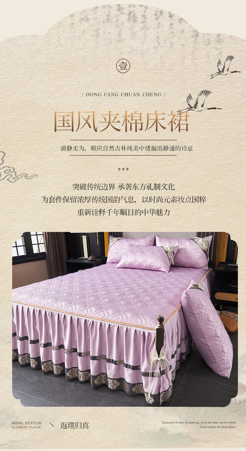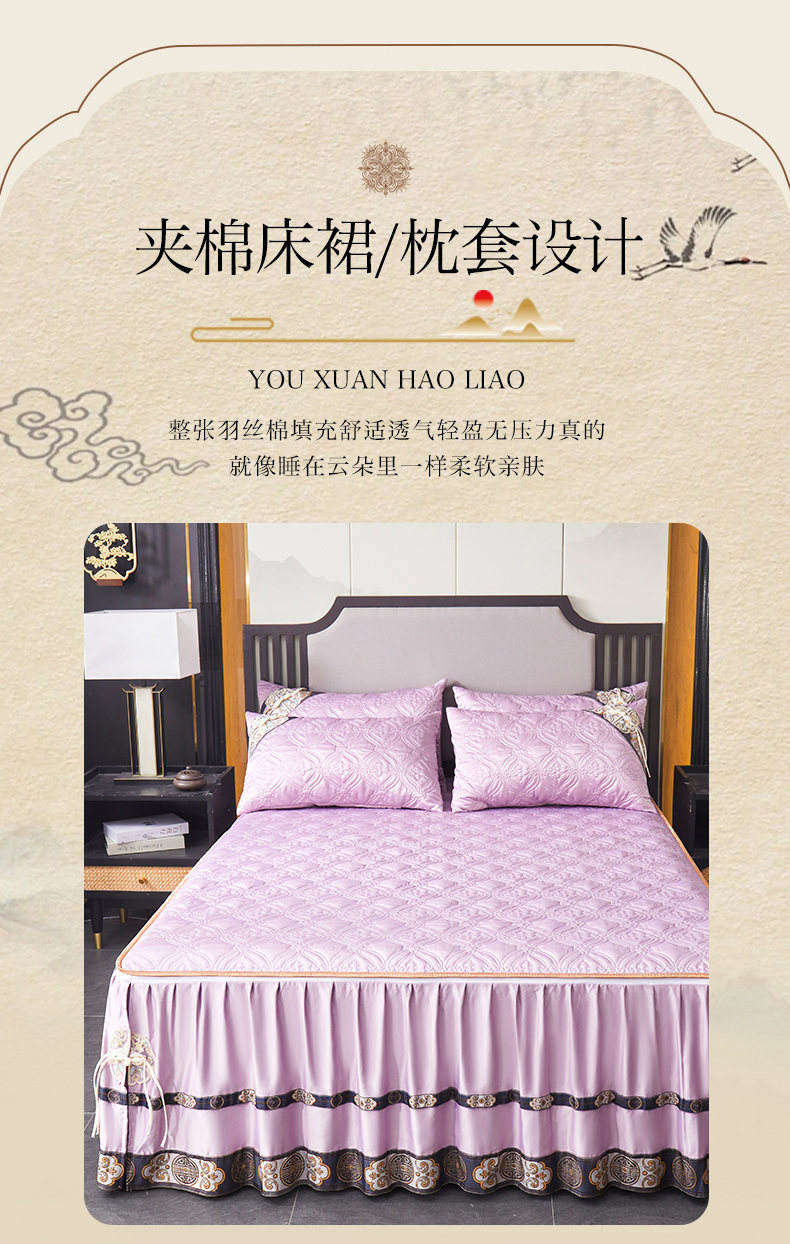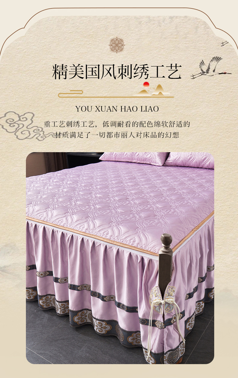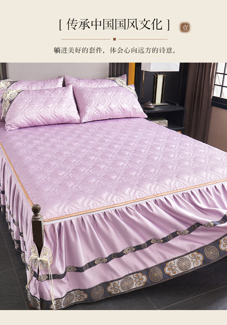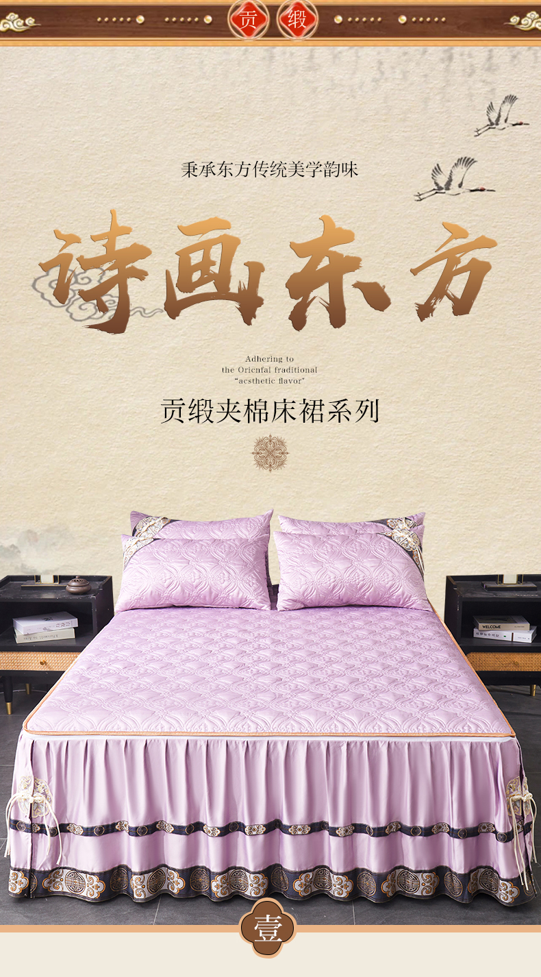 当前位置: 91家纺网 > 商品网购 > 床品套件 > 三件套 > 罗艺轩 2024新款贡缎夹棉中国风新中式系列床裙三件套 中国风-茉莉紫