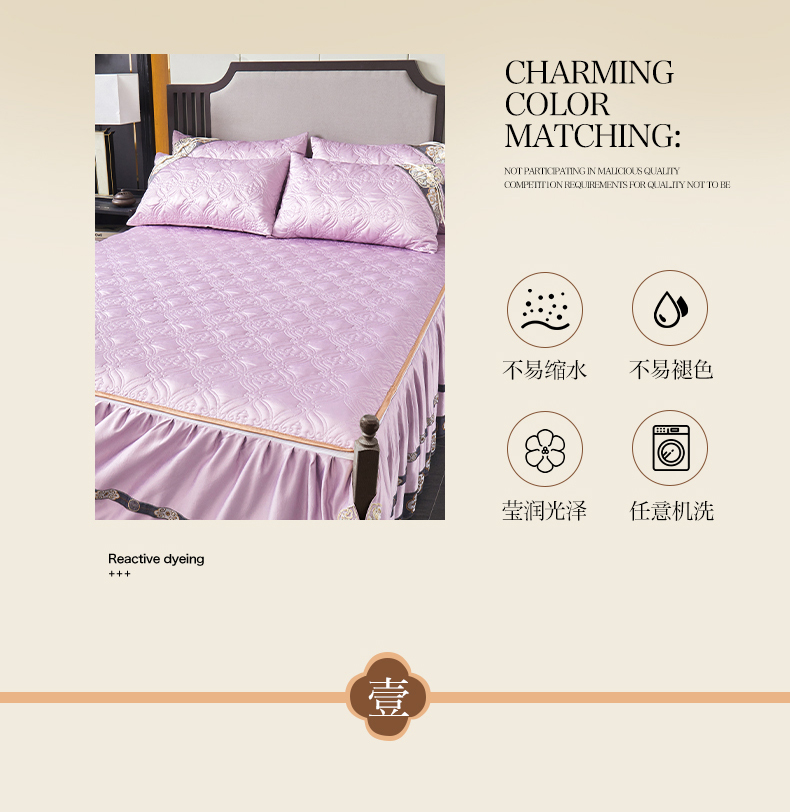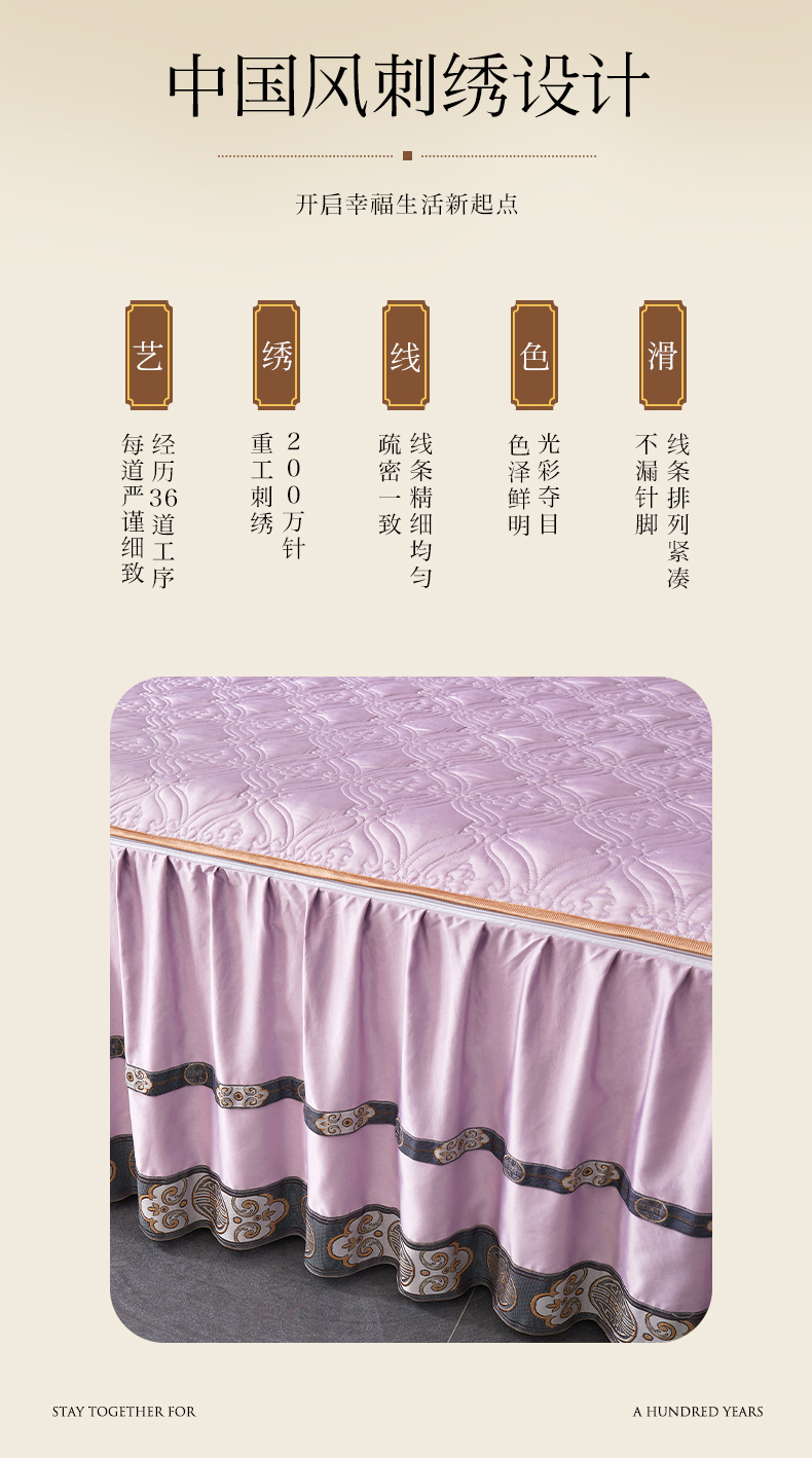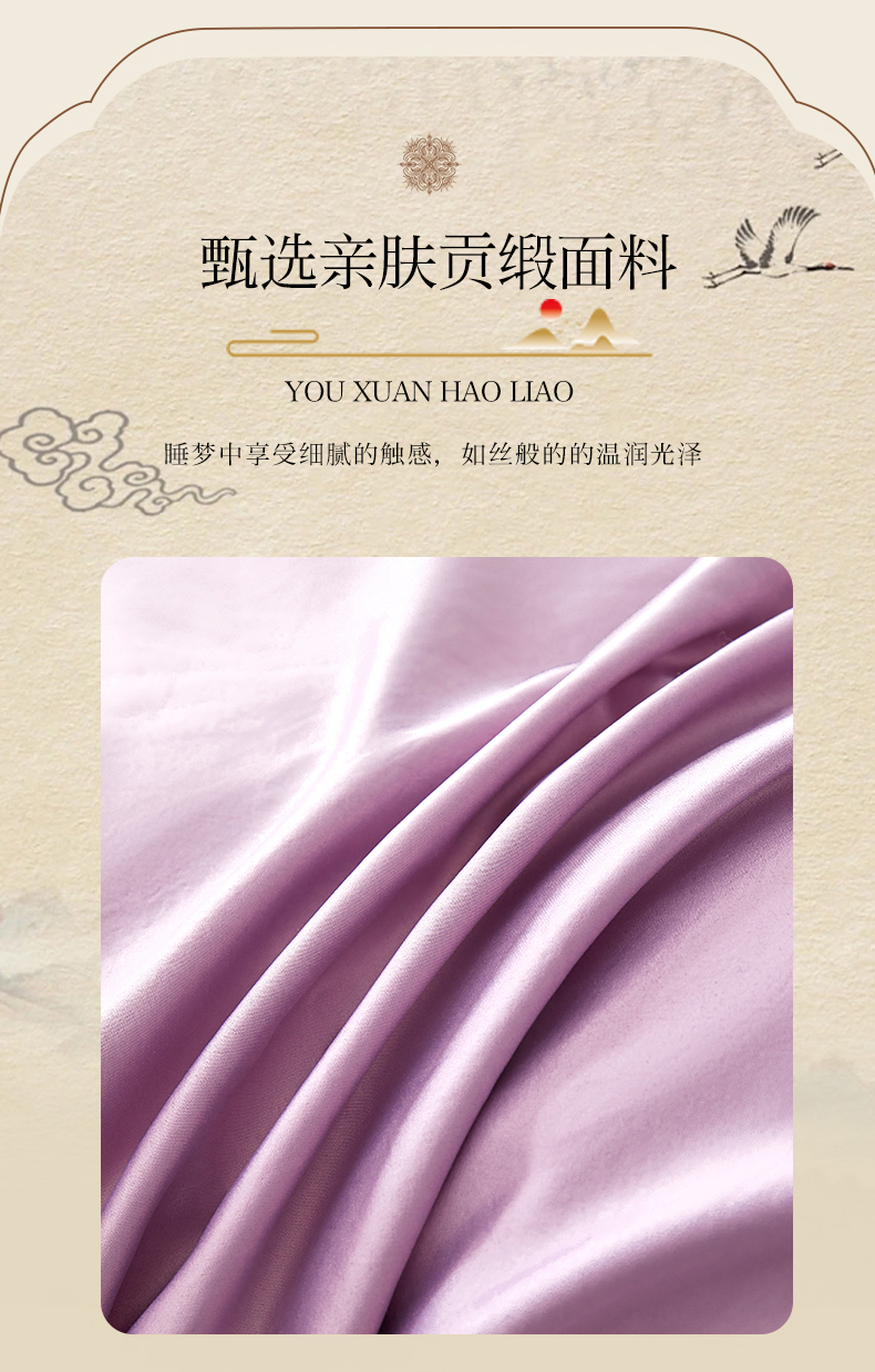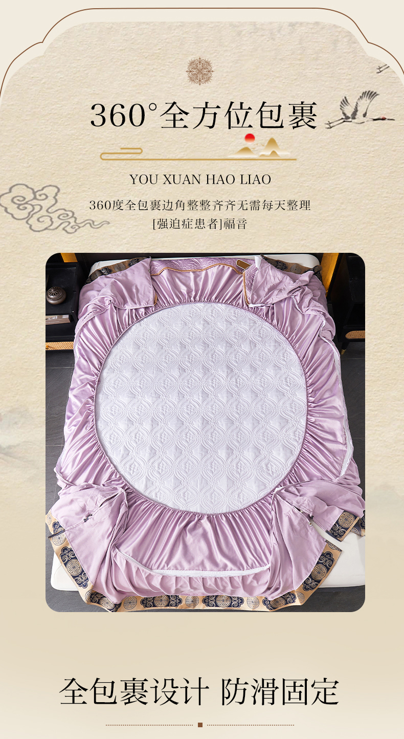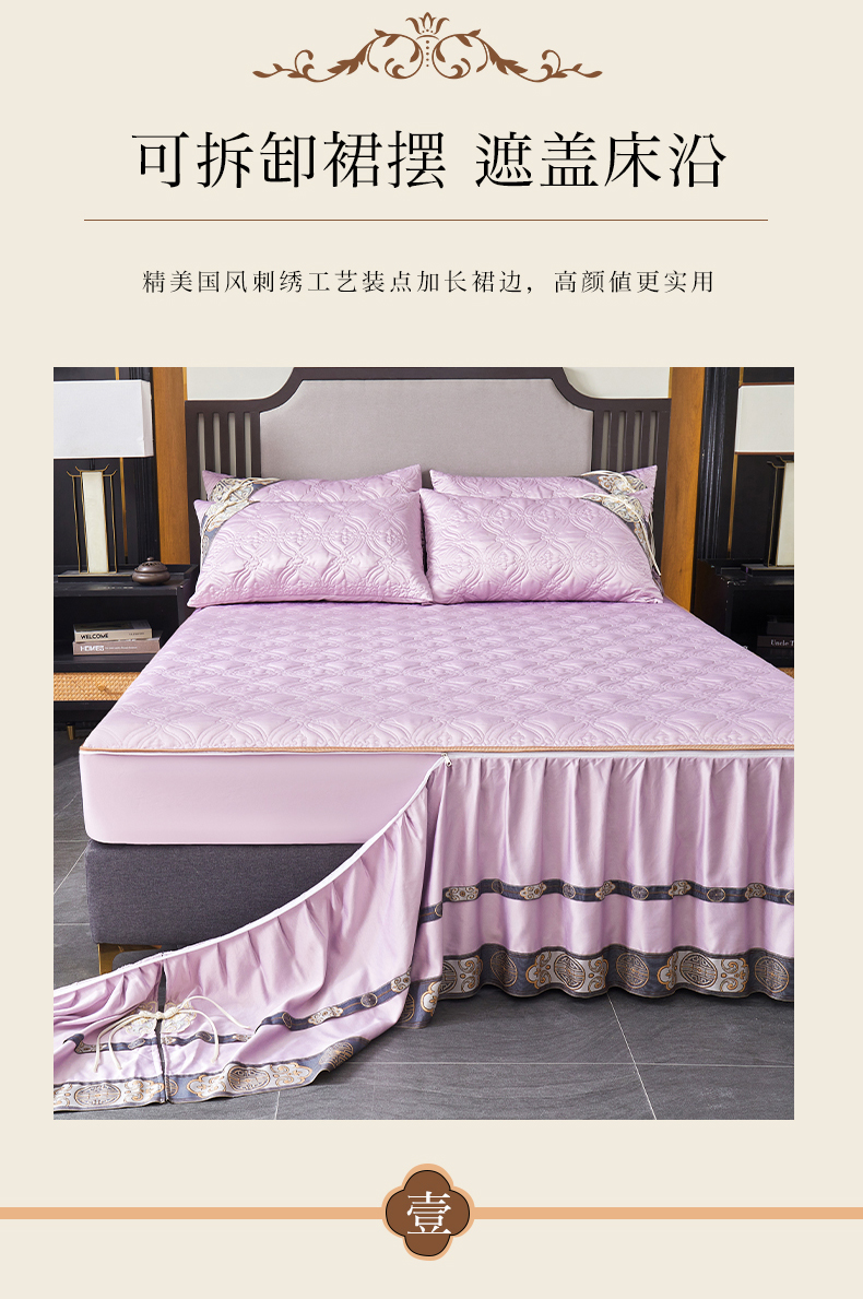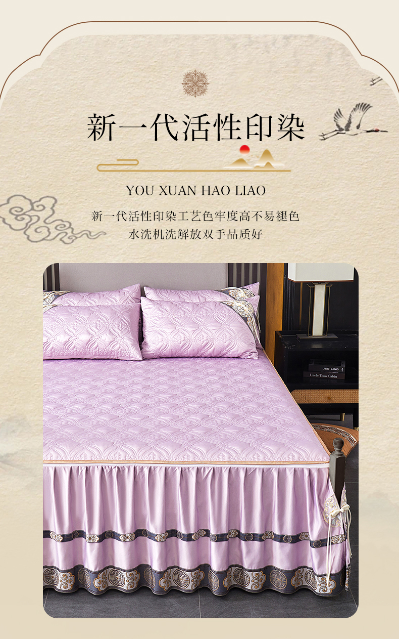 当前位置: 91家纺网 > 商品网购 > 床品套件 > 三件套 > 罗艺轩 2024新款贡缎夹棉中国风新中式系列床裙三件套 中国风-茉莉紫