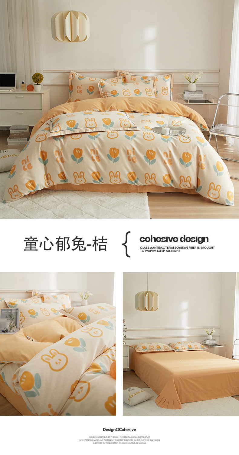 当前位置: 91家纺网 > 商品网购 > 床品套件 > 四件套 > 全棉普通四件套 > 沐白家居 2024新款全棉生态磨毛印花四件套系列 童心郁兔-桔