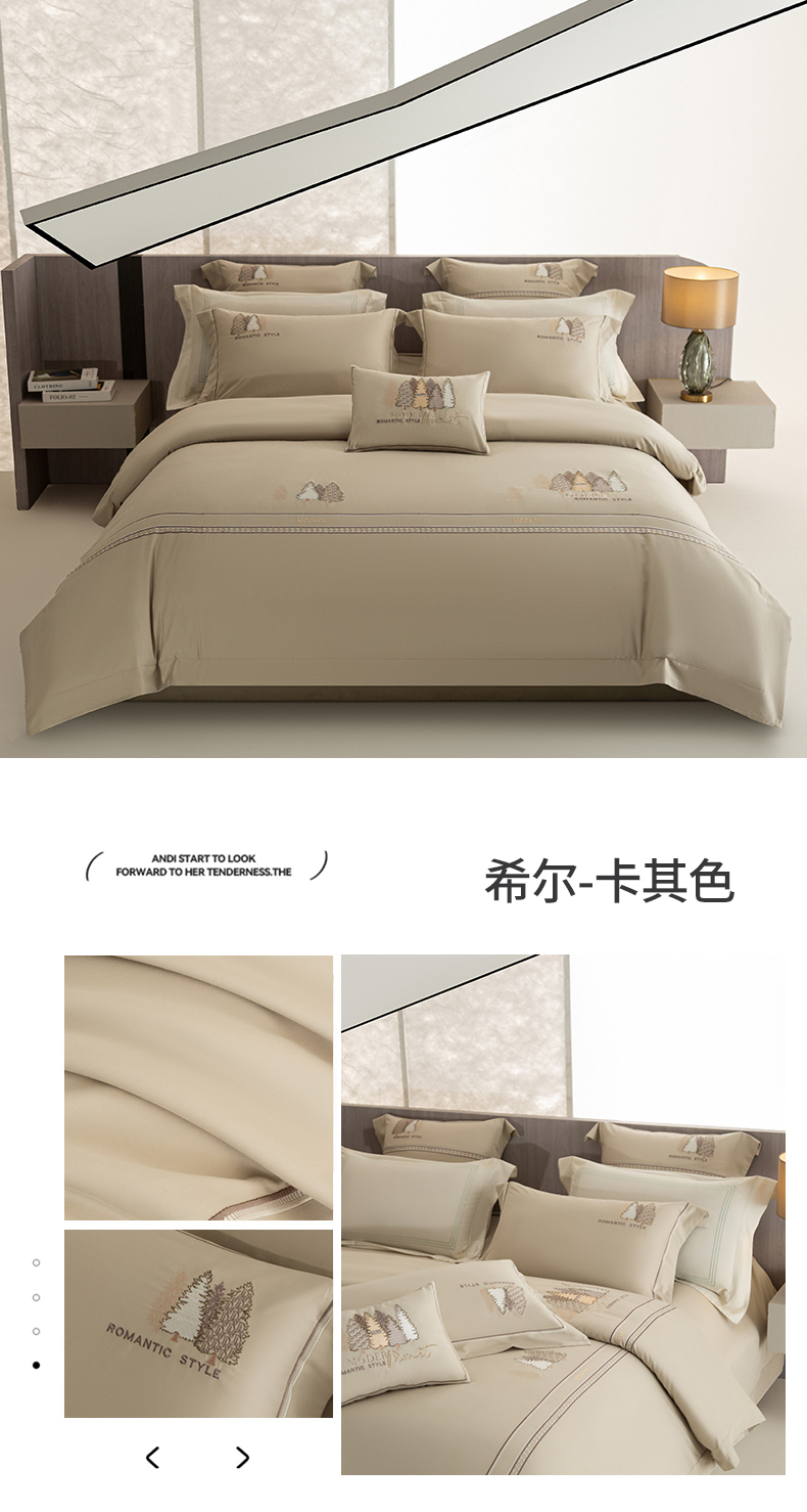 商品名称:高大尚婚庆馆 2025新款长绒棉磨毛高端绣花四件套 希尔 卡其色