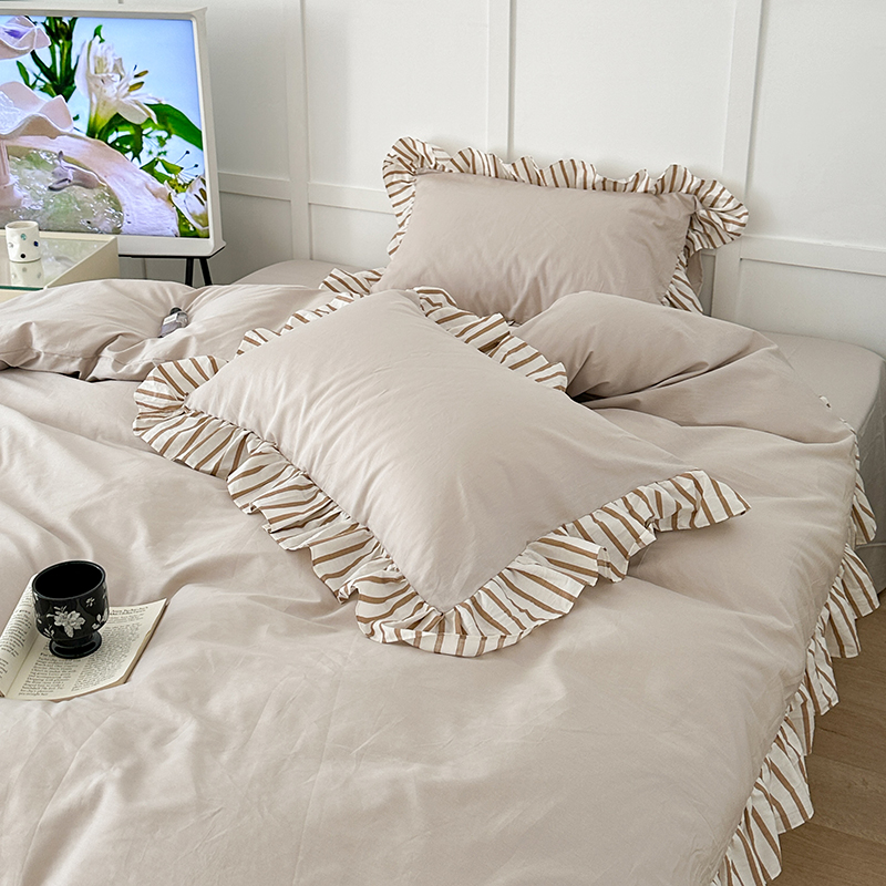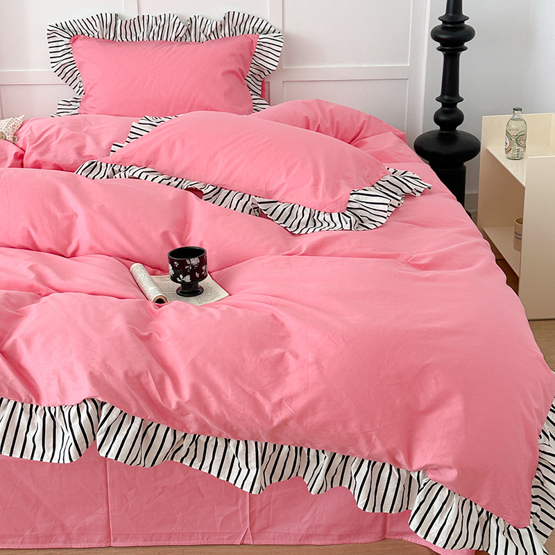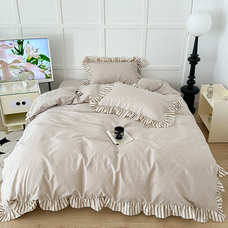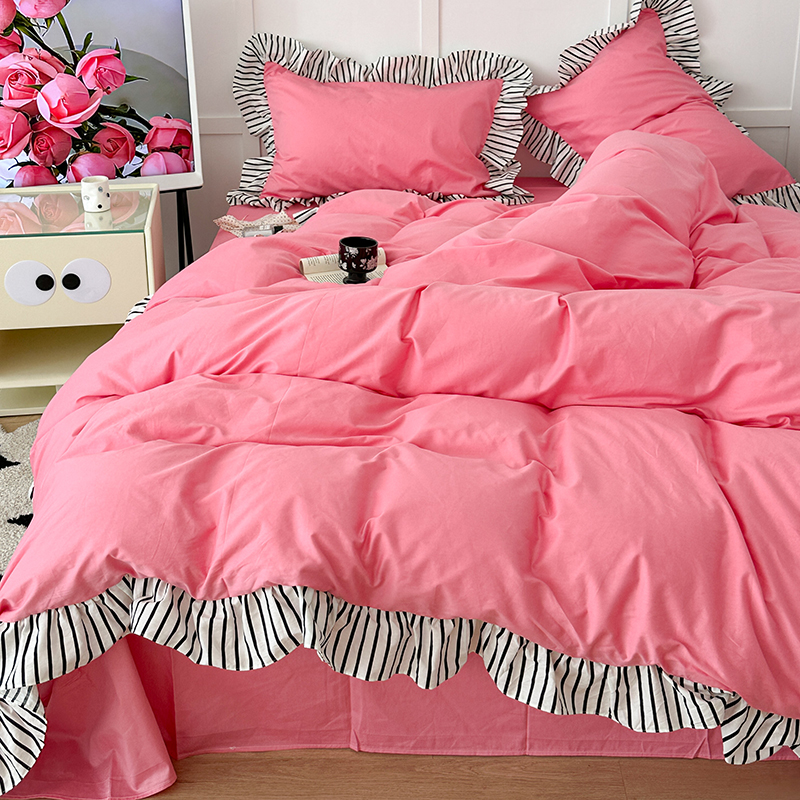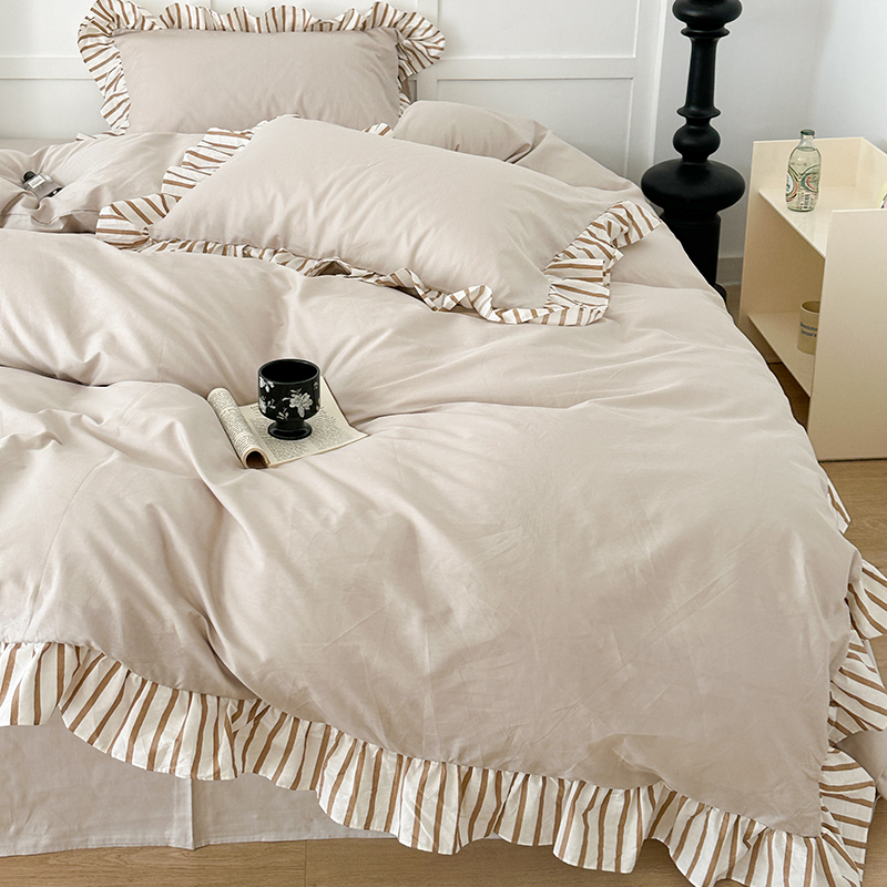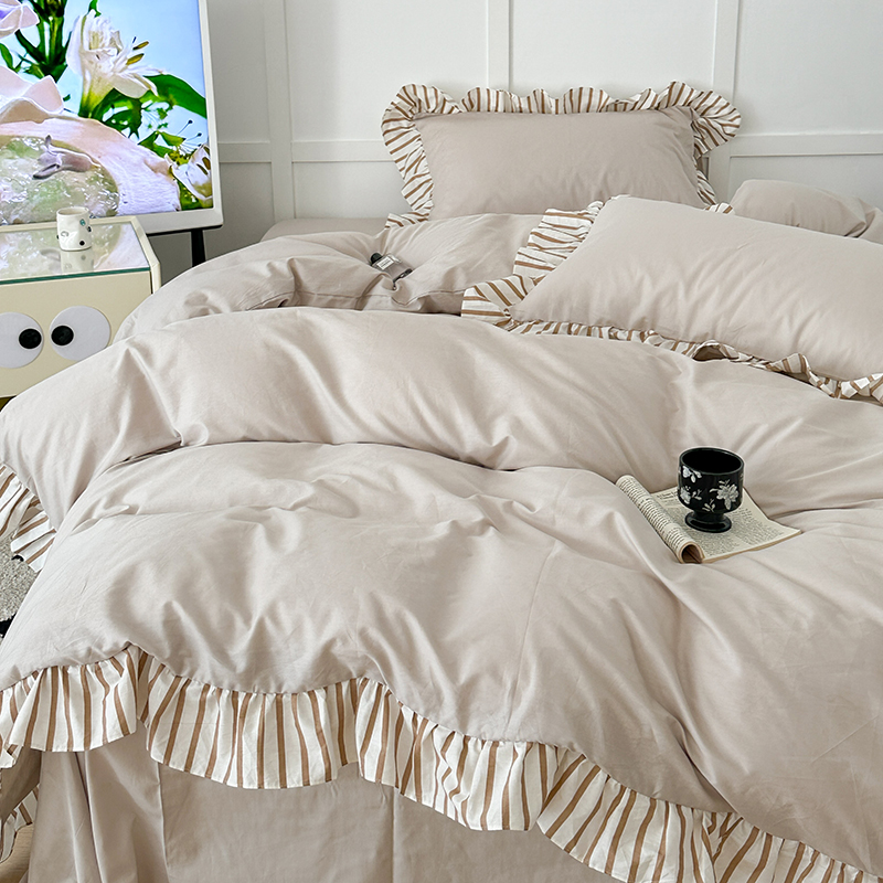 (总)昔可家纺 2024新款纯色亲肤条纹花边四件套