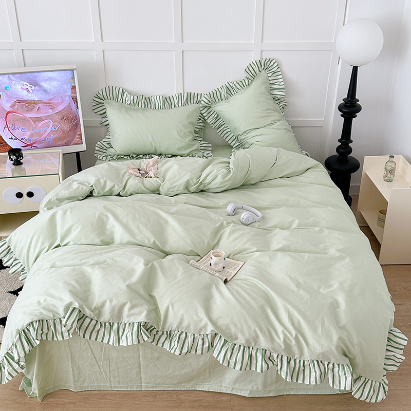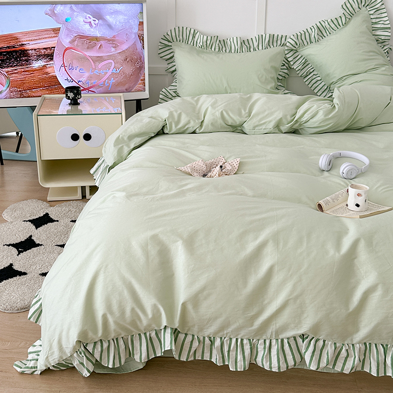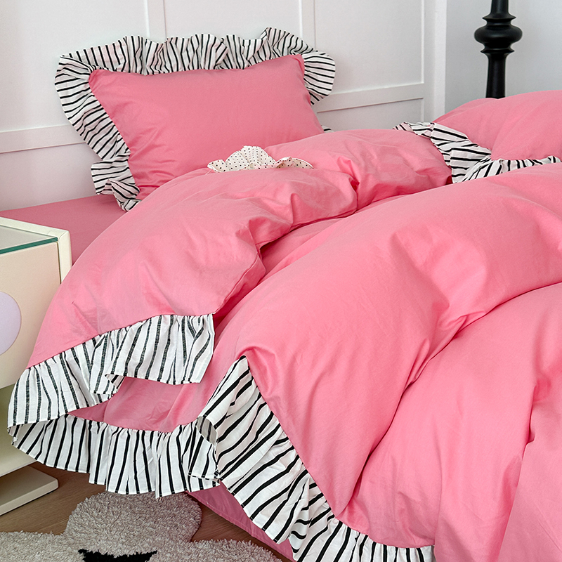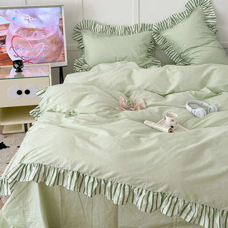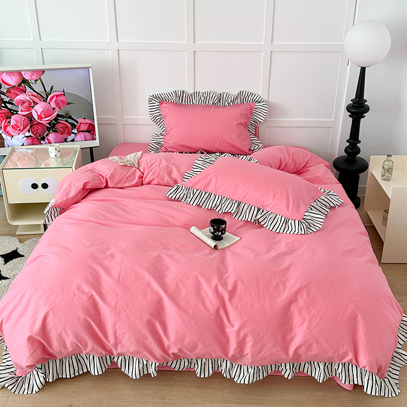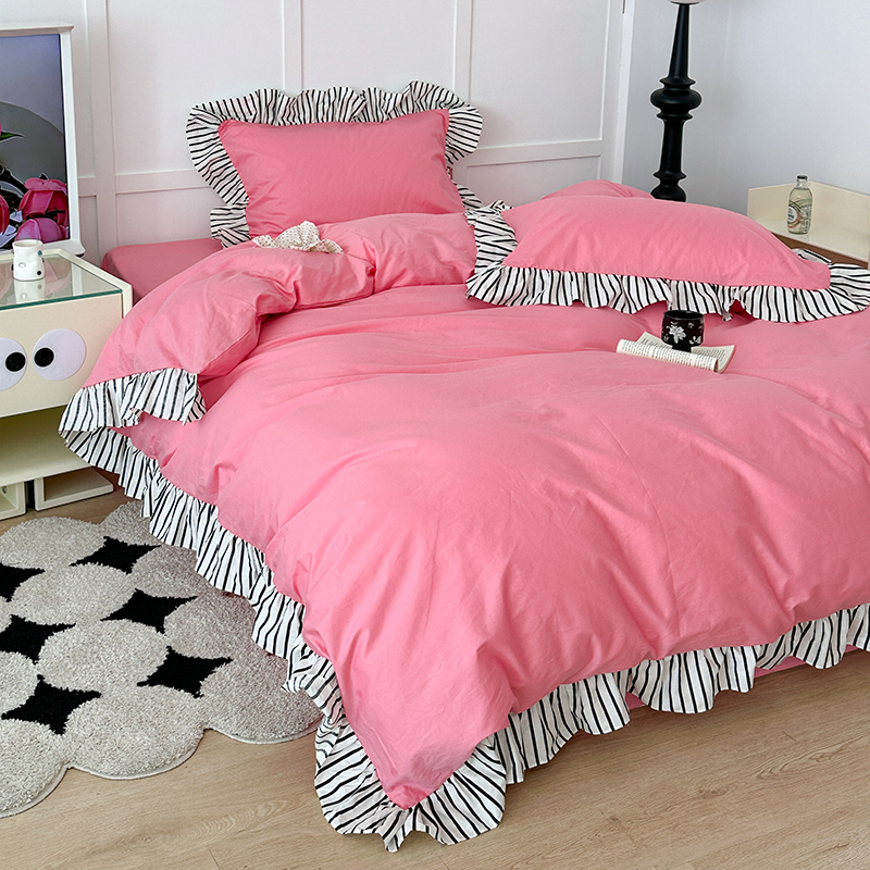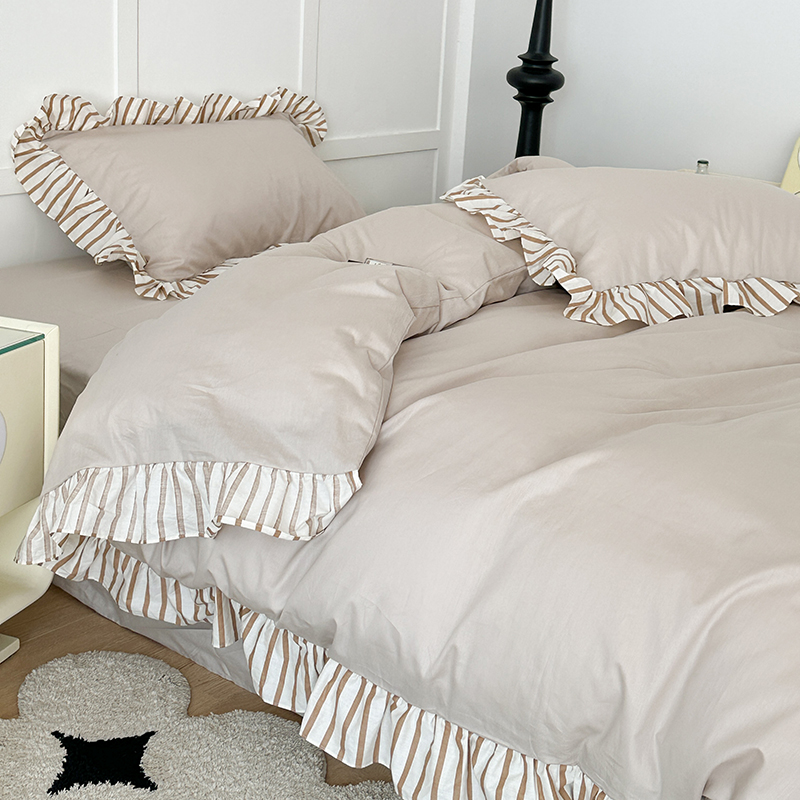 (总)昔可家纺 2024新款纯色亲肤条纹花边四件套