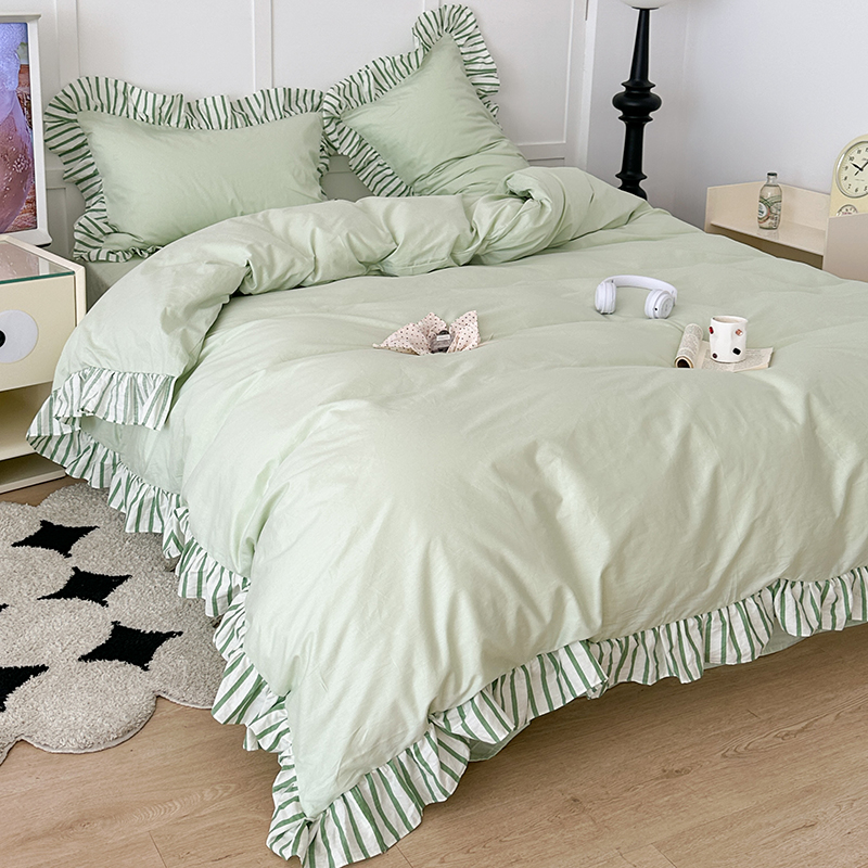 商品名称:(总)昔可家纺 2024新款纯色亲肤条纹花边四件套