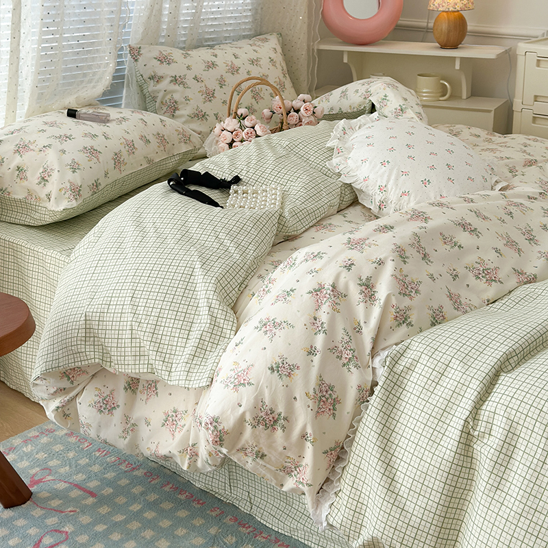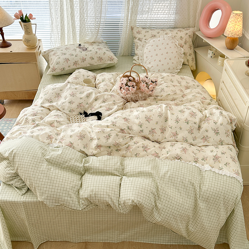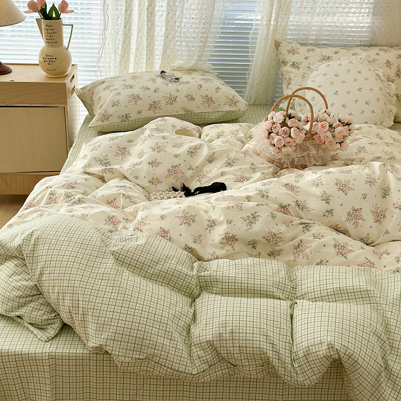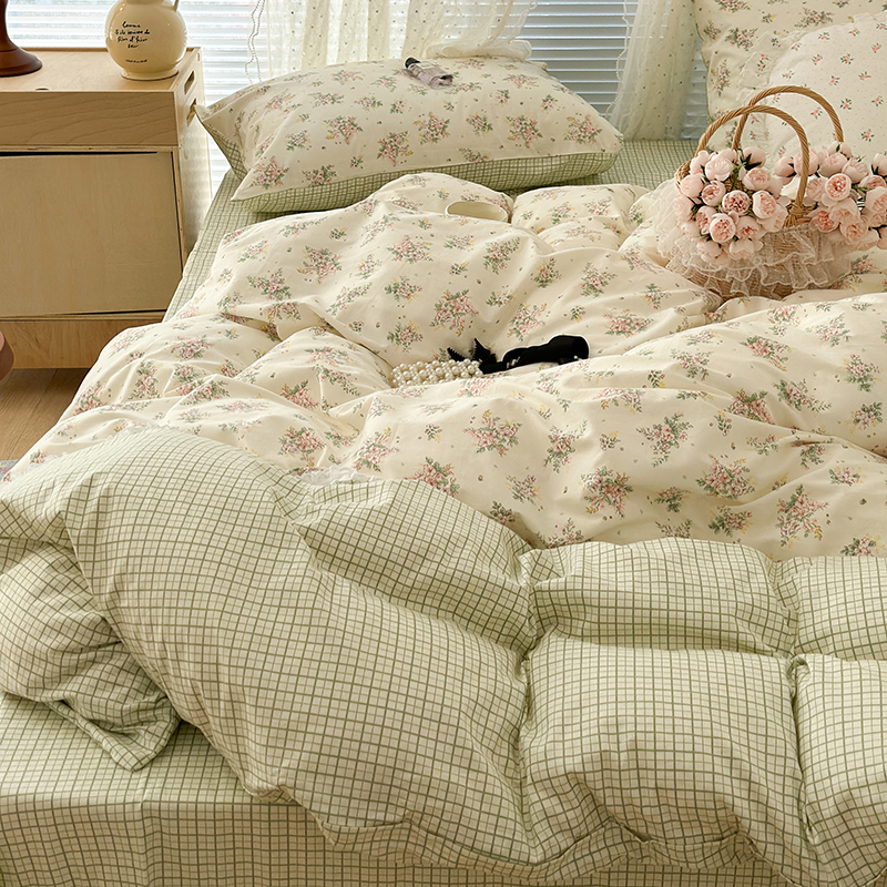 (总)昔可 2023新款全棉ins格子混搭系列四件套,ins简约绿格,粉蓝格,开心果格,学院格纹,粉绿格,海盐兰格,黄绿格,夏日蓝条,芝士黄条,紫芋泥芝士格