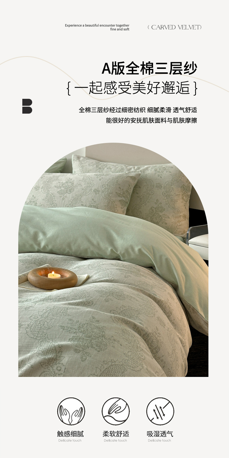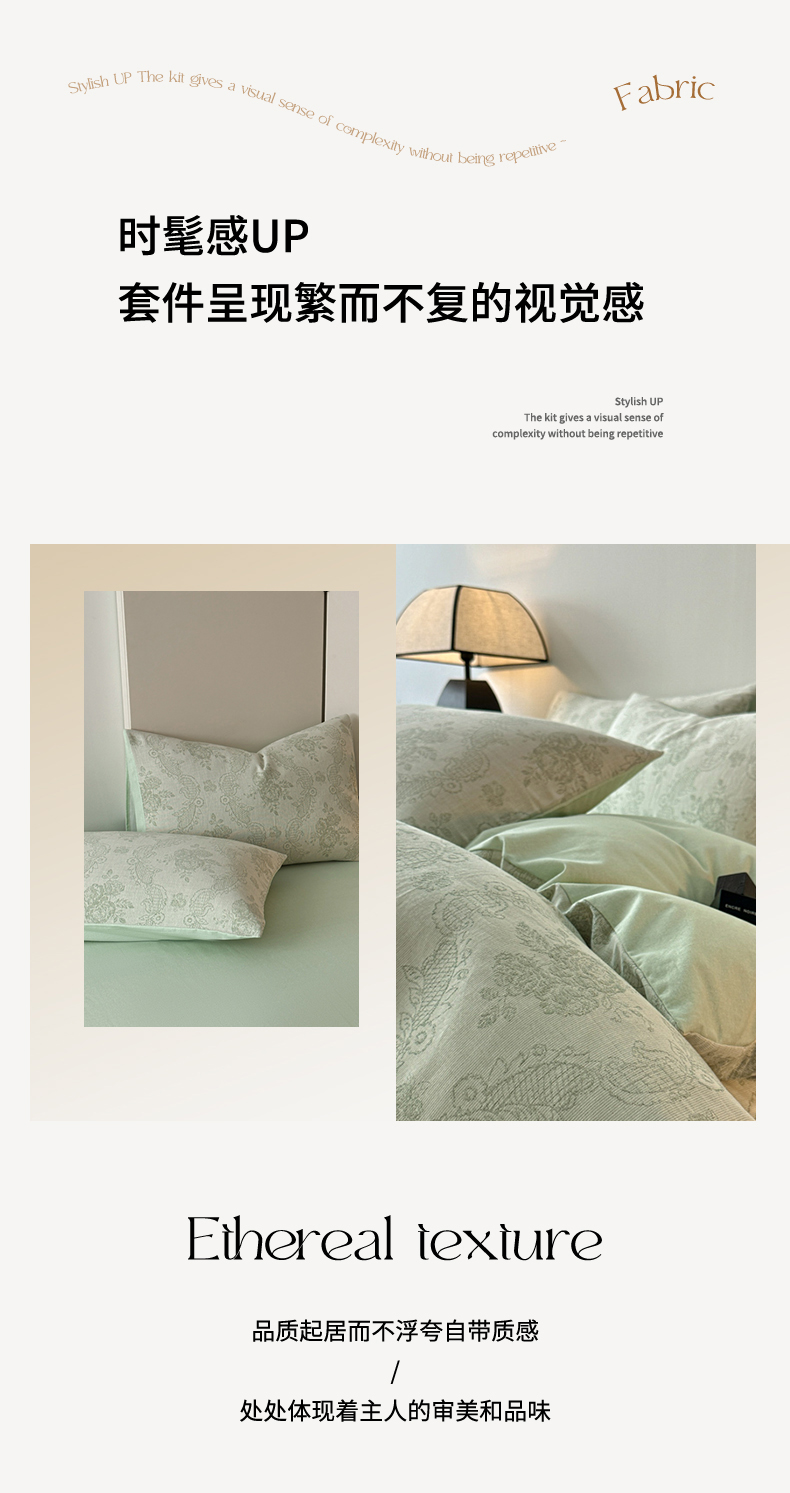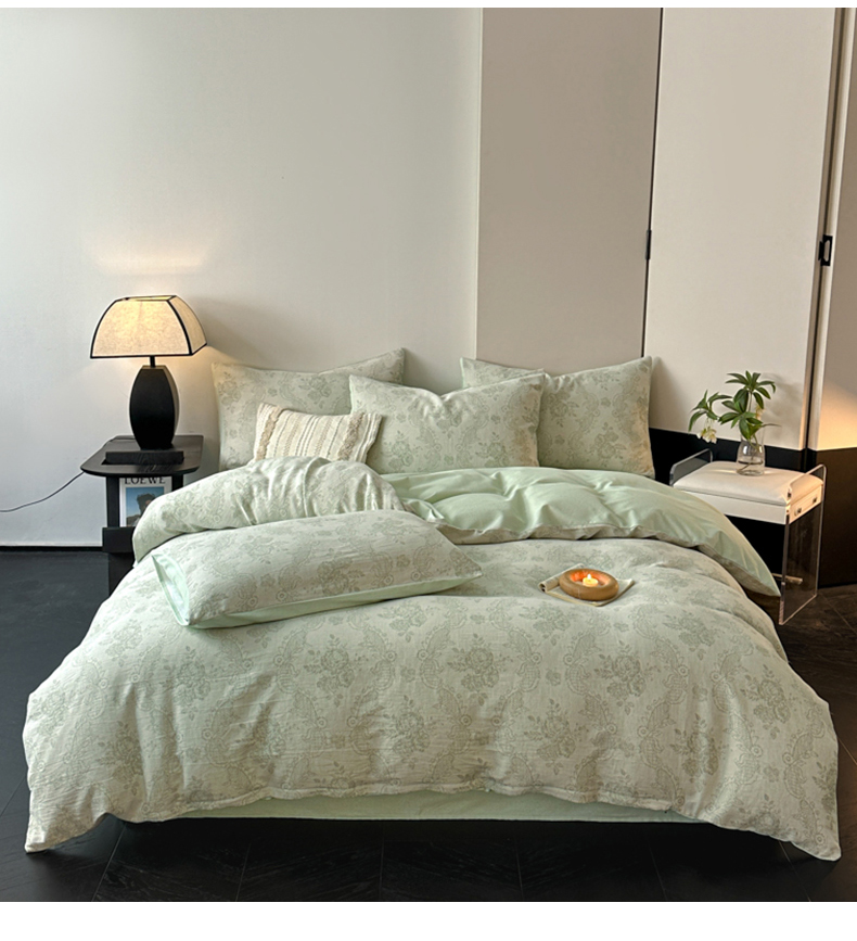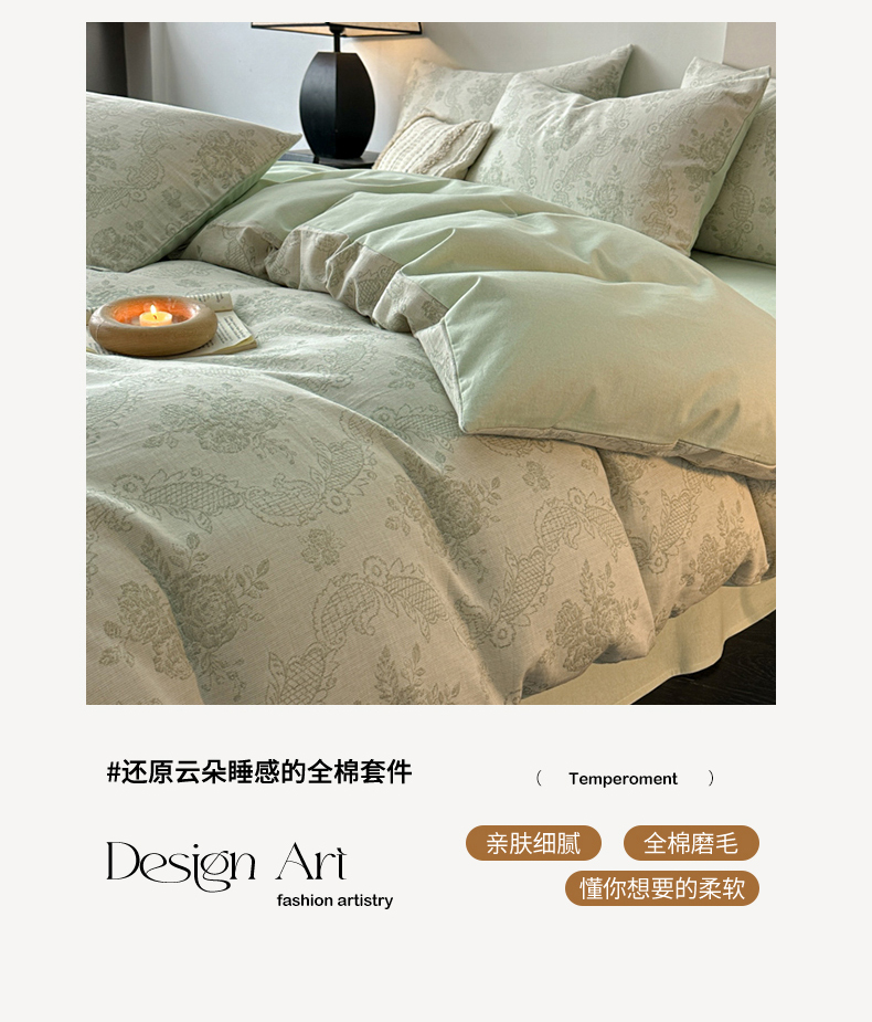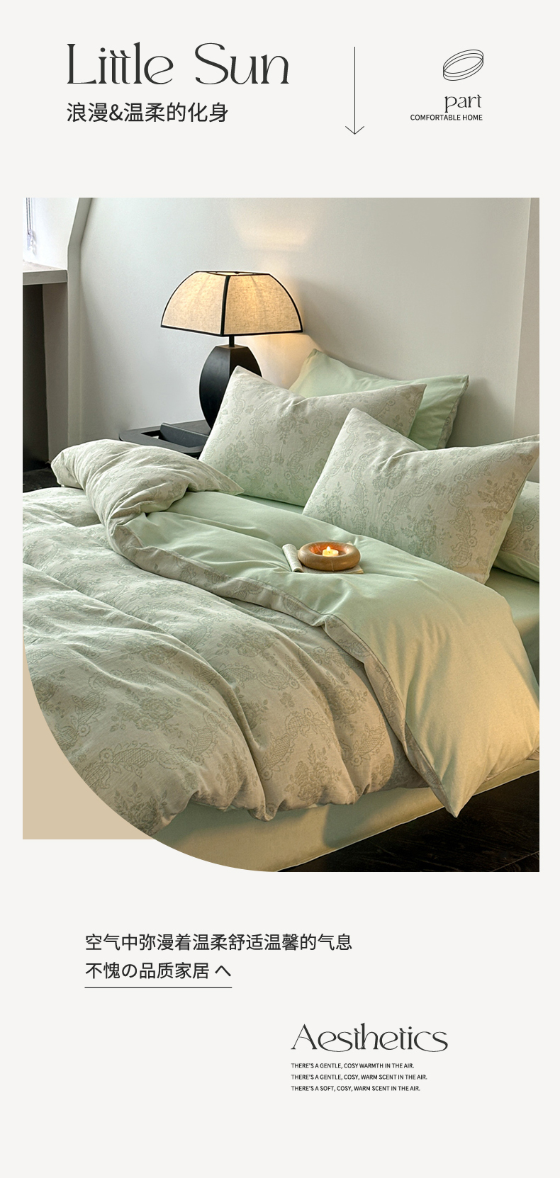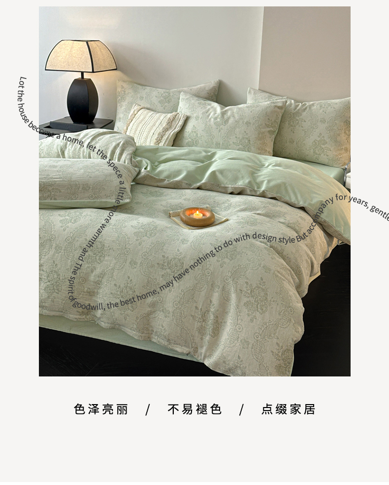 当前位置: 91家纺网 > 商品网购 > 床品套件 > 四件套 > 全棉普通四件套 > 博雅 2024新款全棉提花三层纱磨毛四件套(上图送2000元货款) 玫瑰面纱(绿)