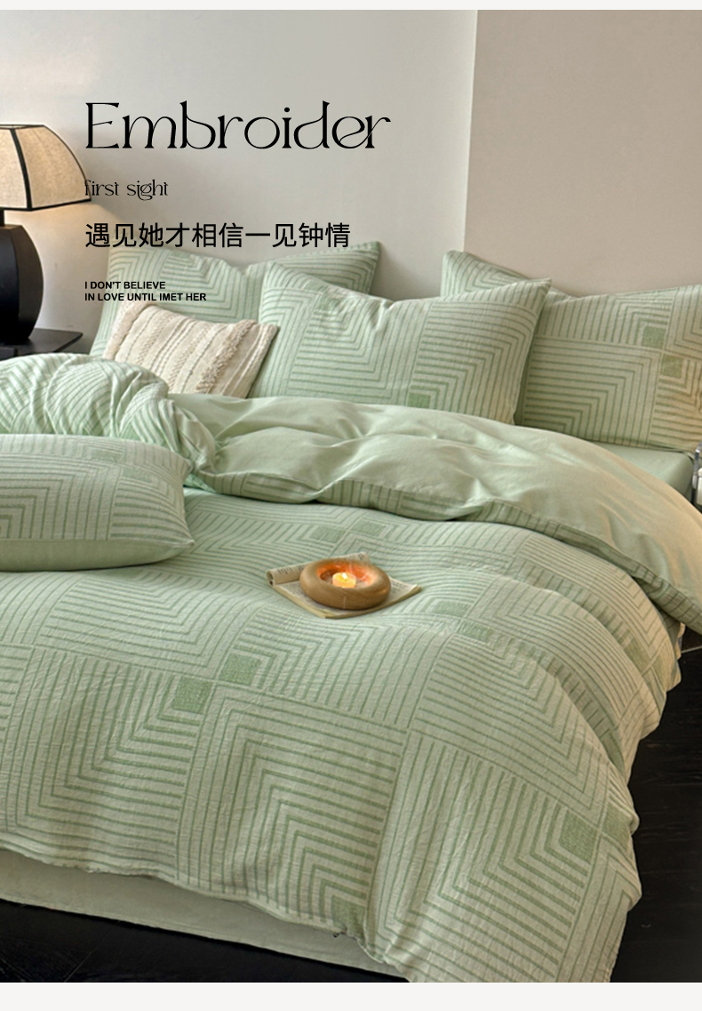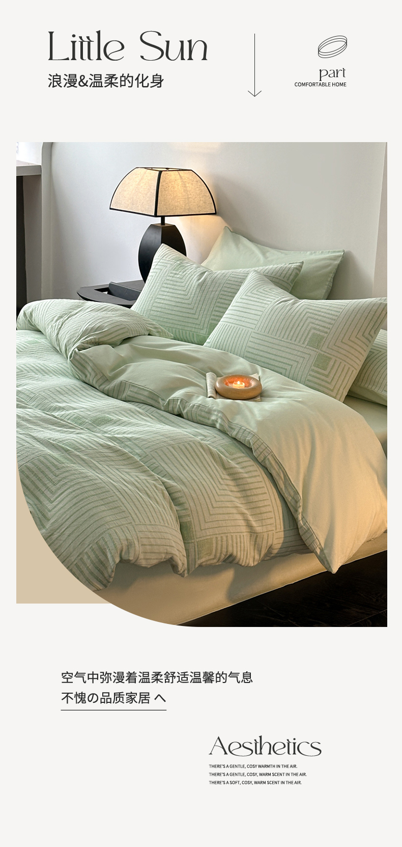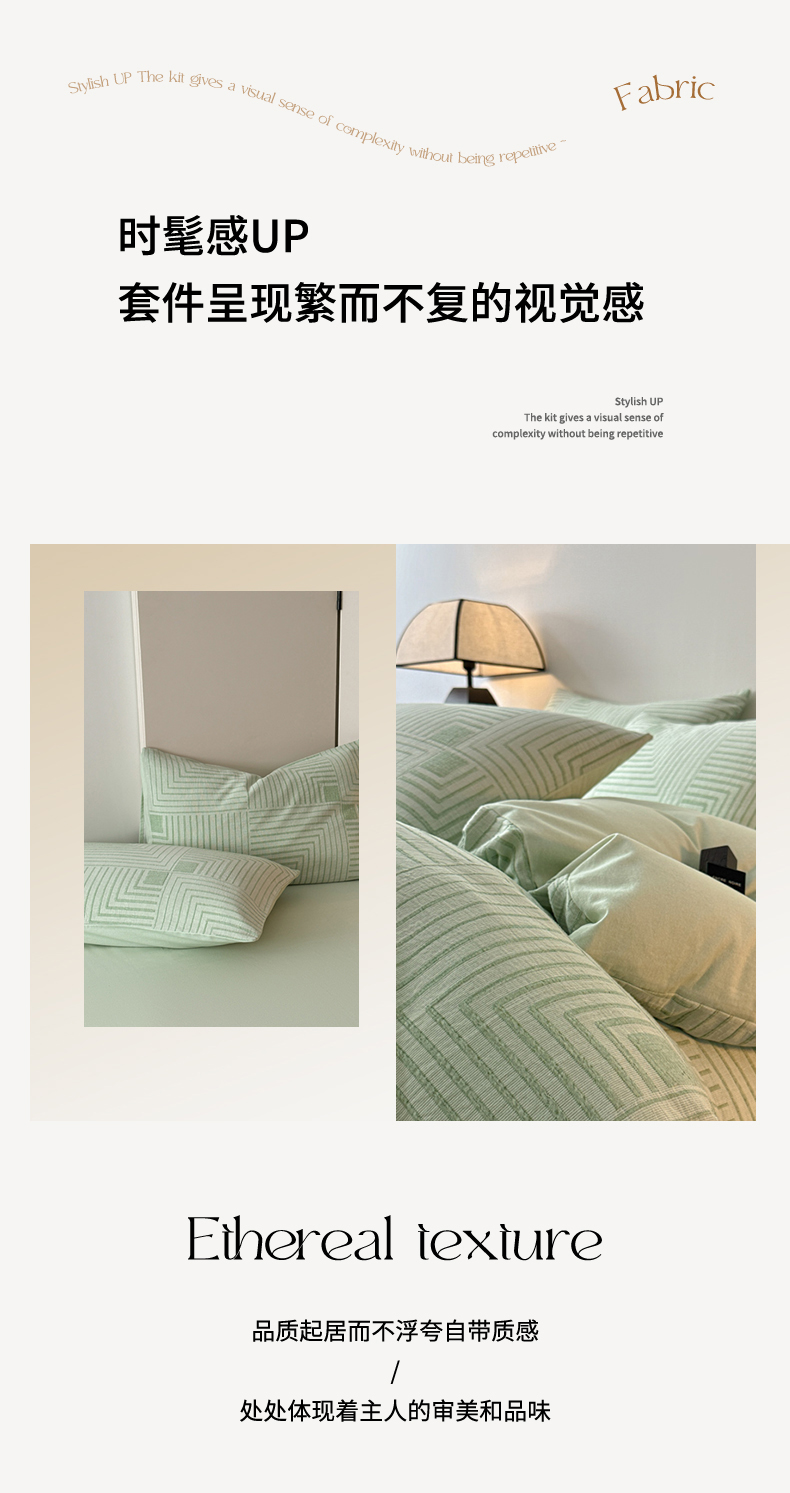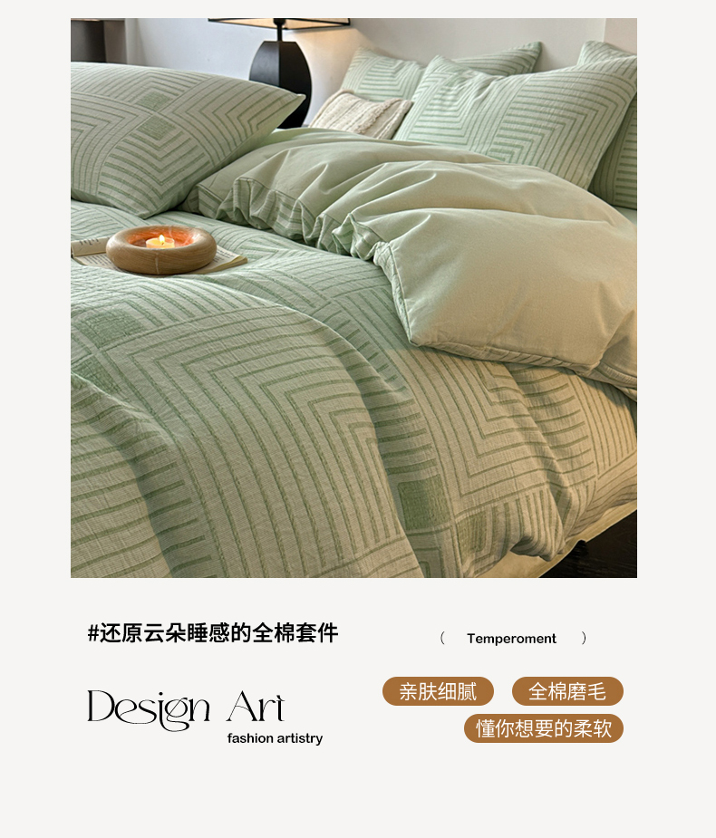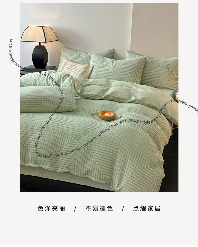 当前位置: 91家纺网 > 商品网购 > 床品套件 > 四件套 > 全棉普通四件套 > 博雅 2024新款全棉提花三层纱磨毛四件套(上图送2000元货款) 意象空间(绿)