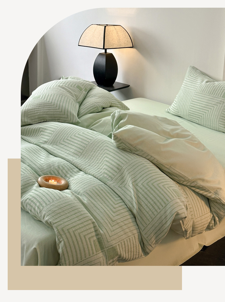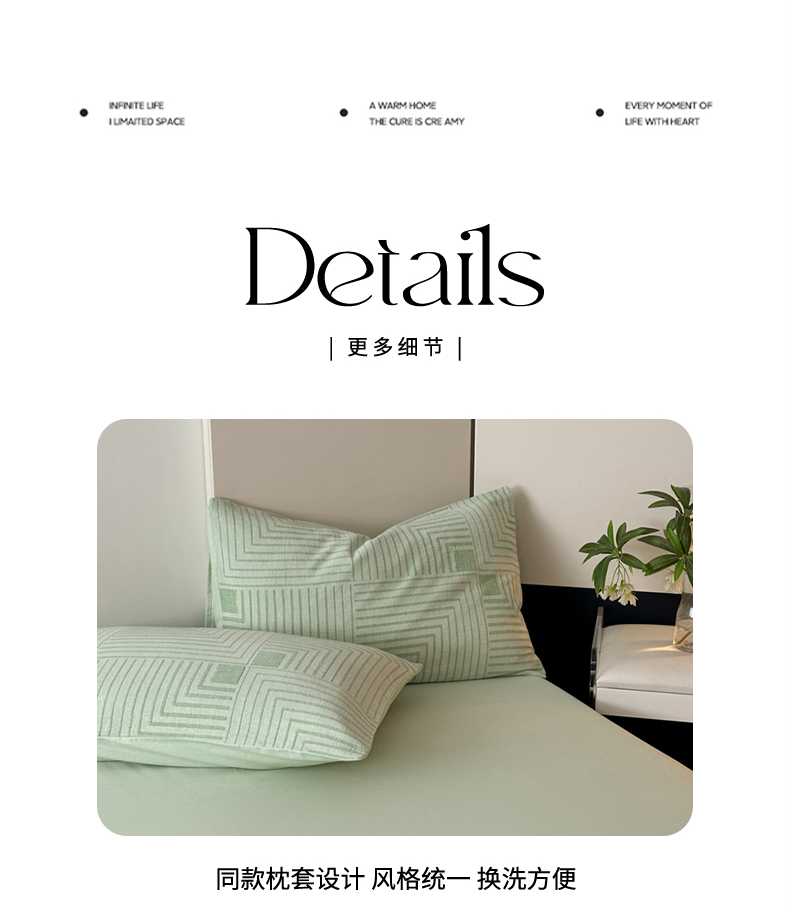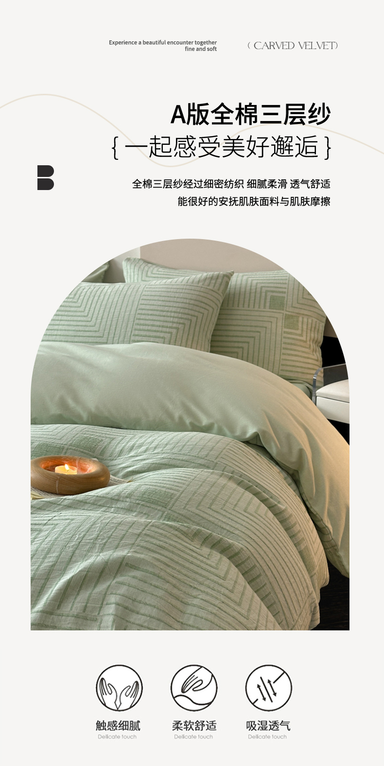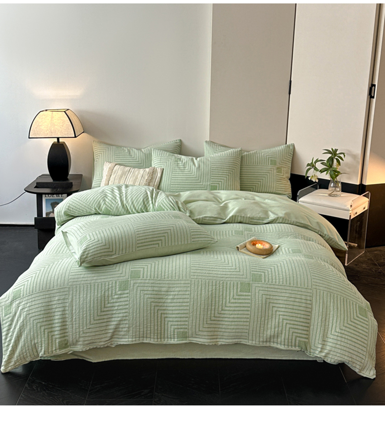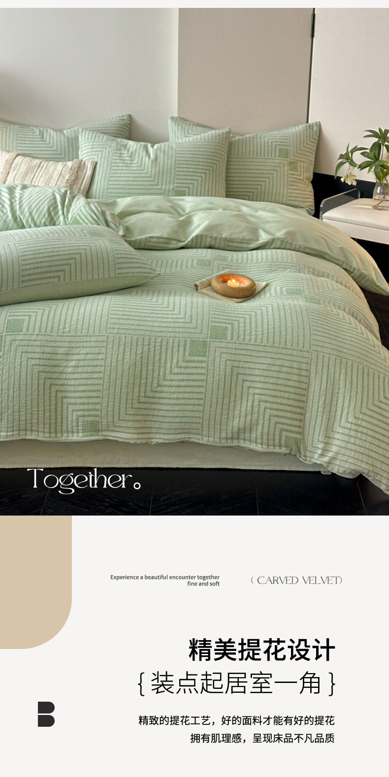 当前位置: 91家纺网 > 商品网购 > 床品套件 > 四件套 > 全棉普通四件套 > 博雅 2024新款全棉提花三层纱磨毛四件套(上图送2000元货款) 意象空间(绿)