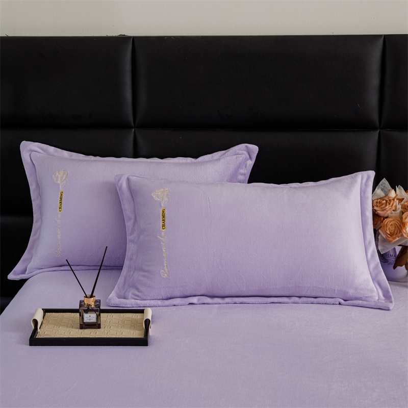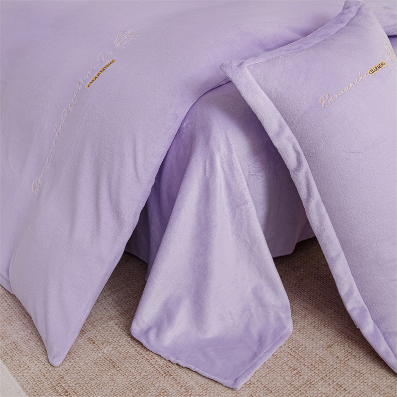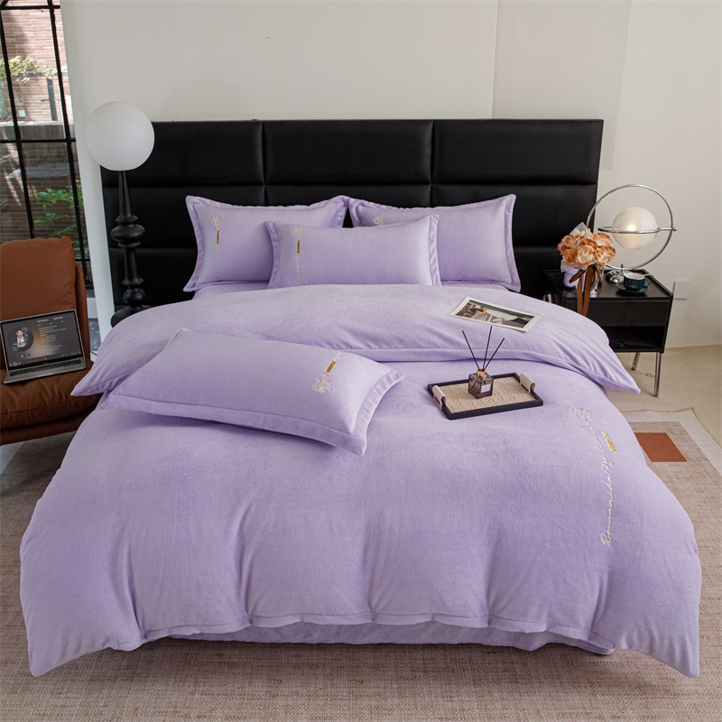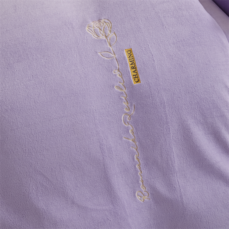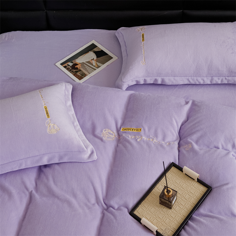 商品名称:神州川 2024直播爆款高克重保暖加厚纯色刺绣牛奶绒四件套-遇见-紫色