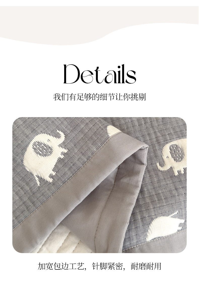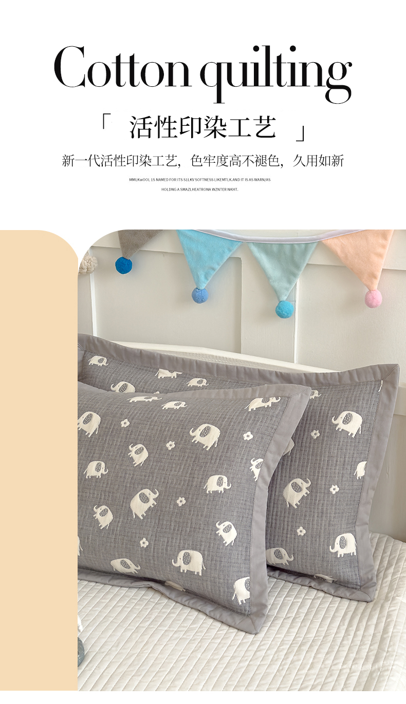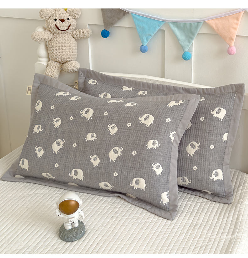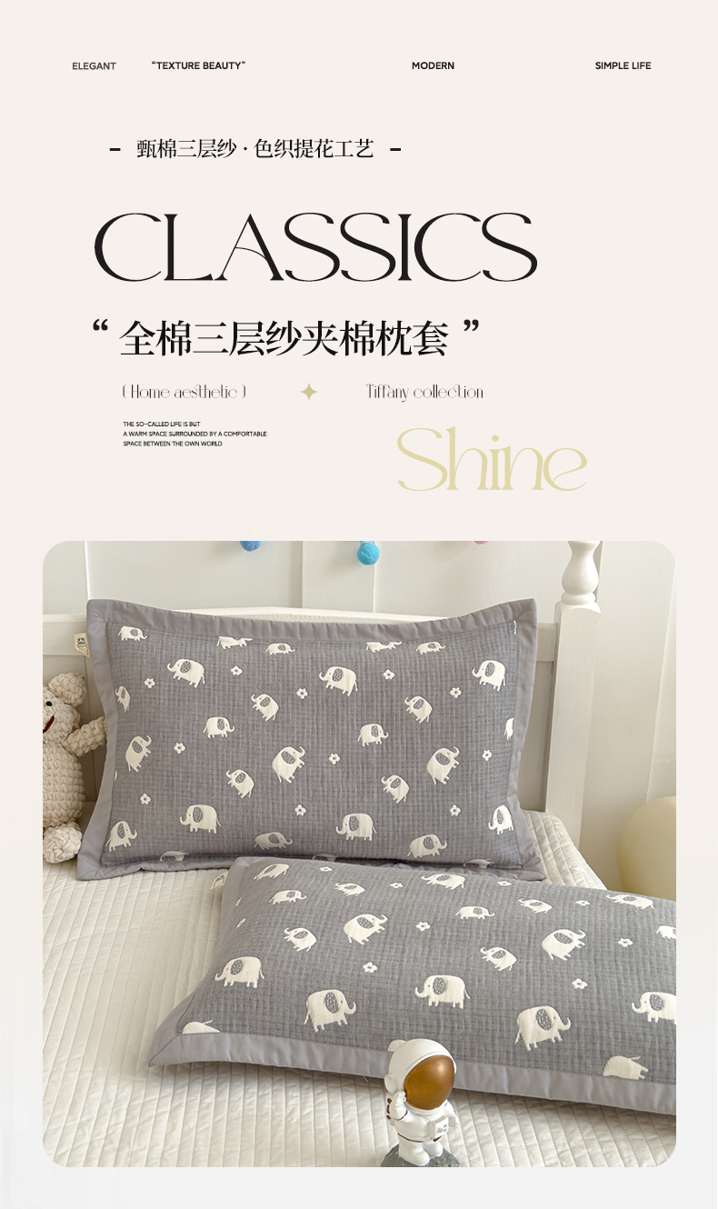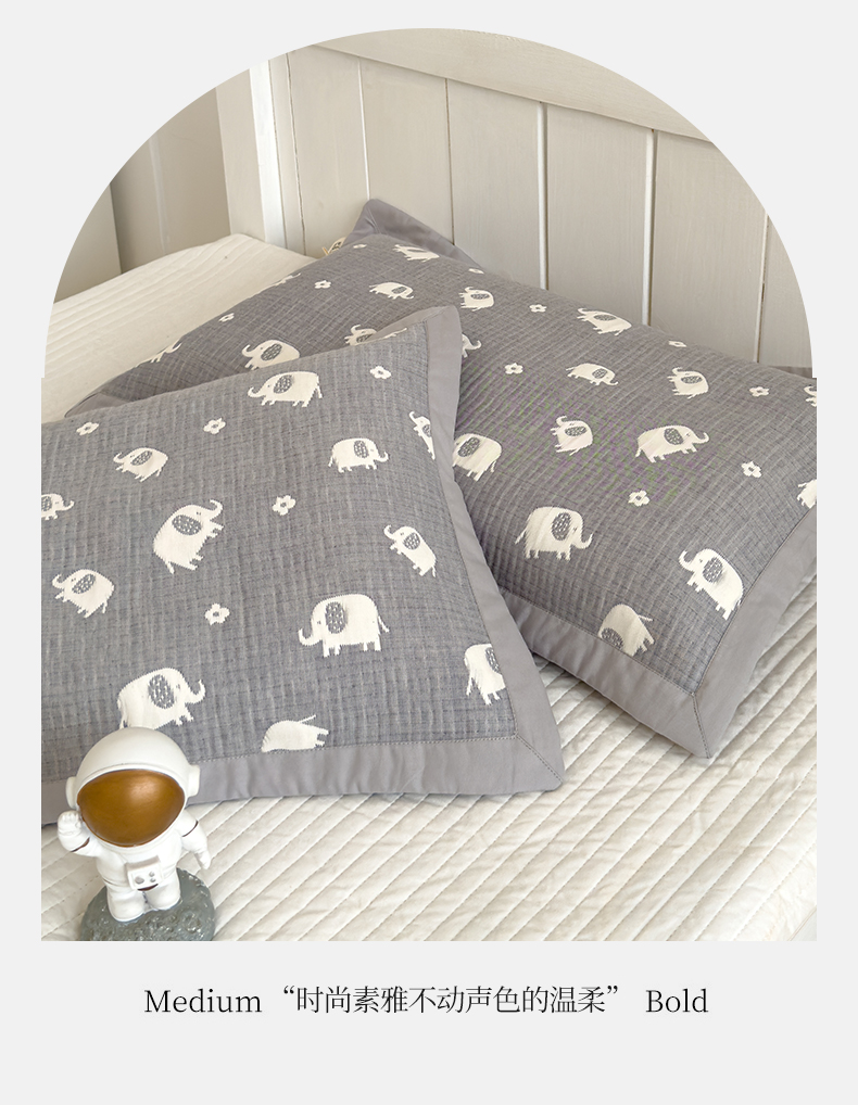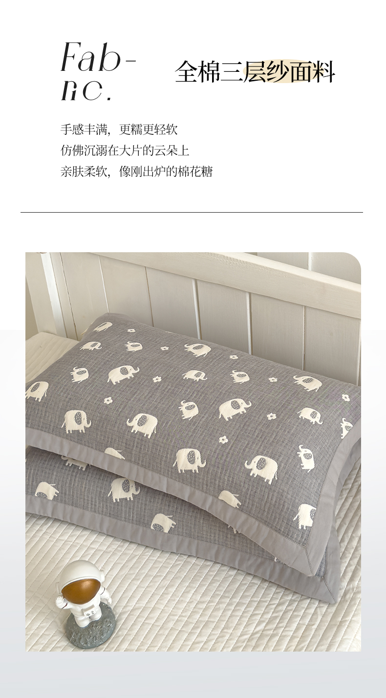 商品名称:2024新品色织立体提花全棉三层纱布夹棉枕套 小象-灰