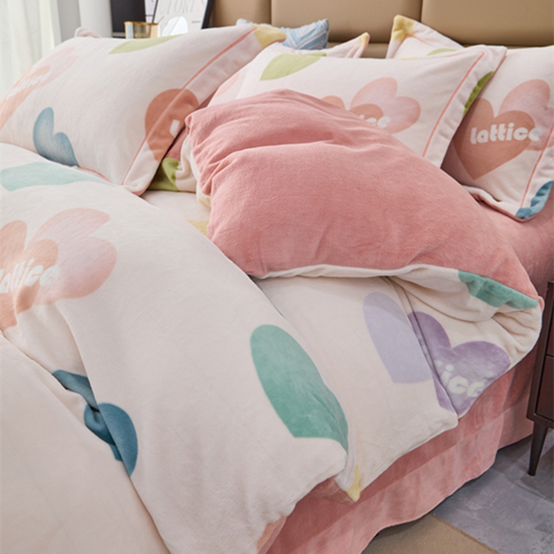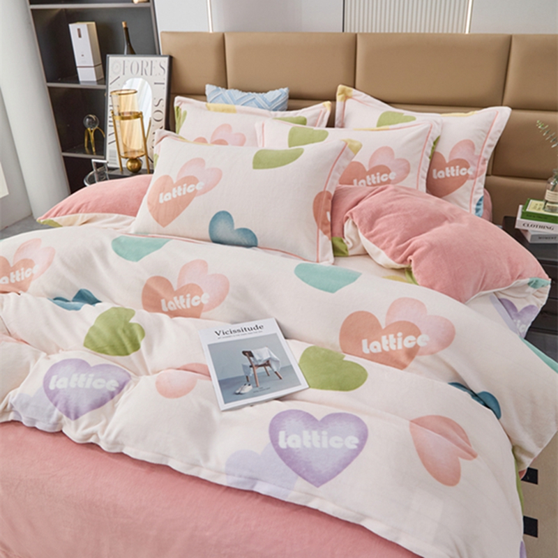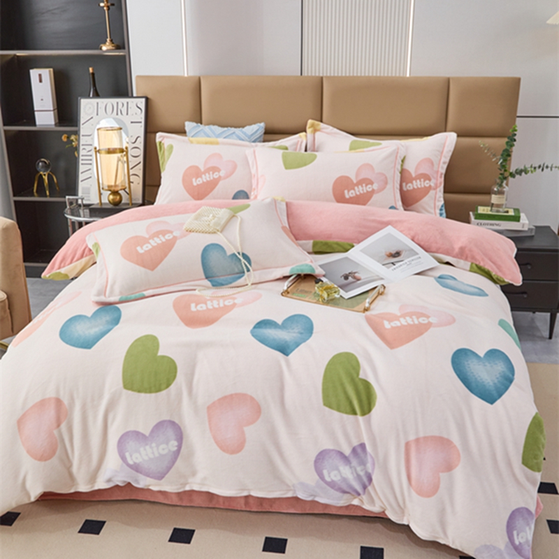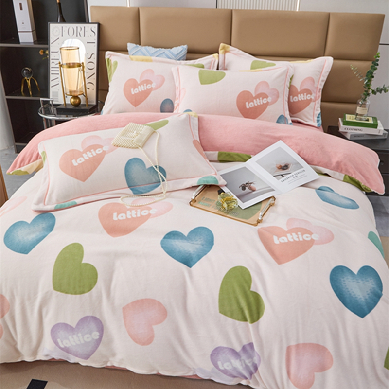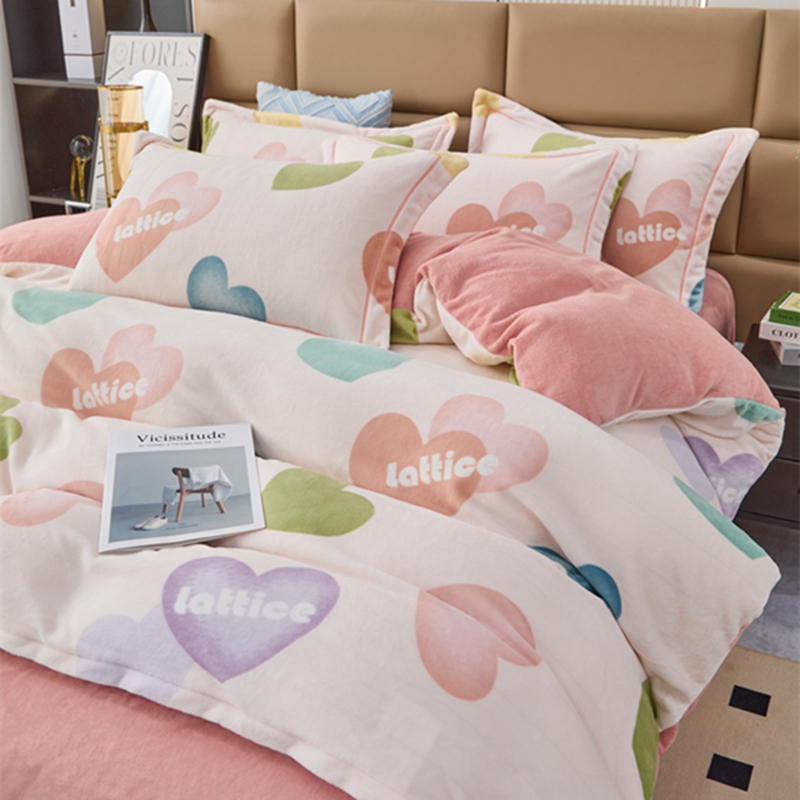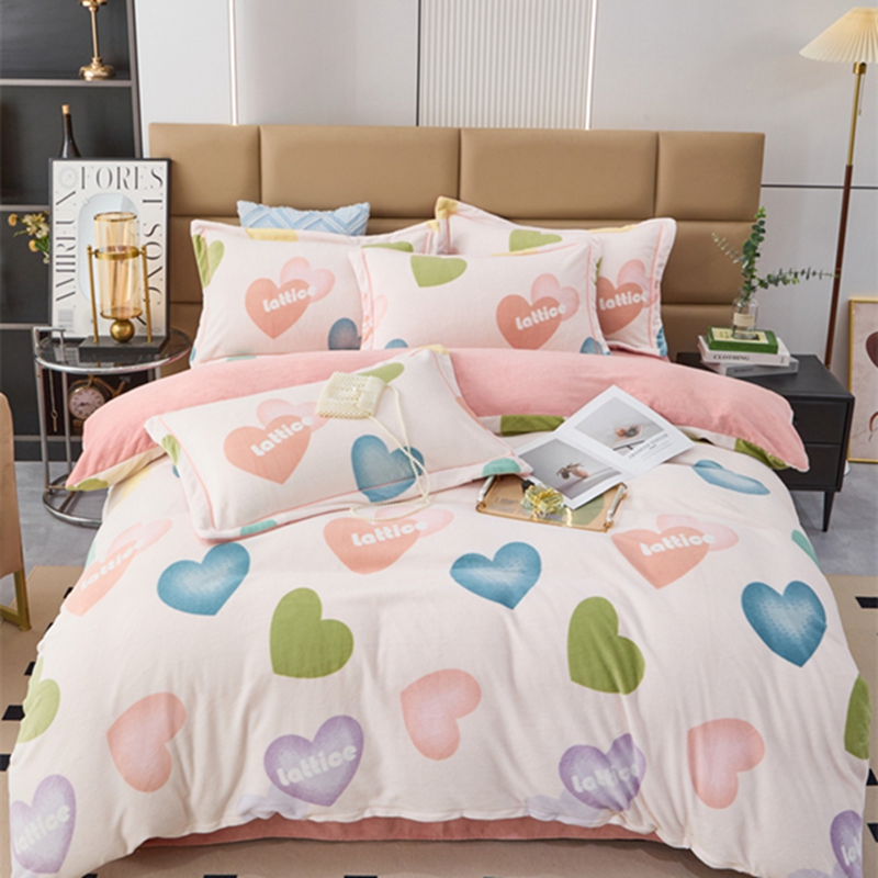 商品名称:卡迪亚 2024新款全消光牛奶绒印花四件套 爱意满满