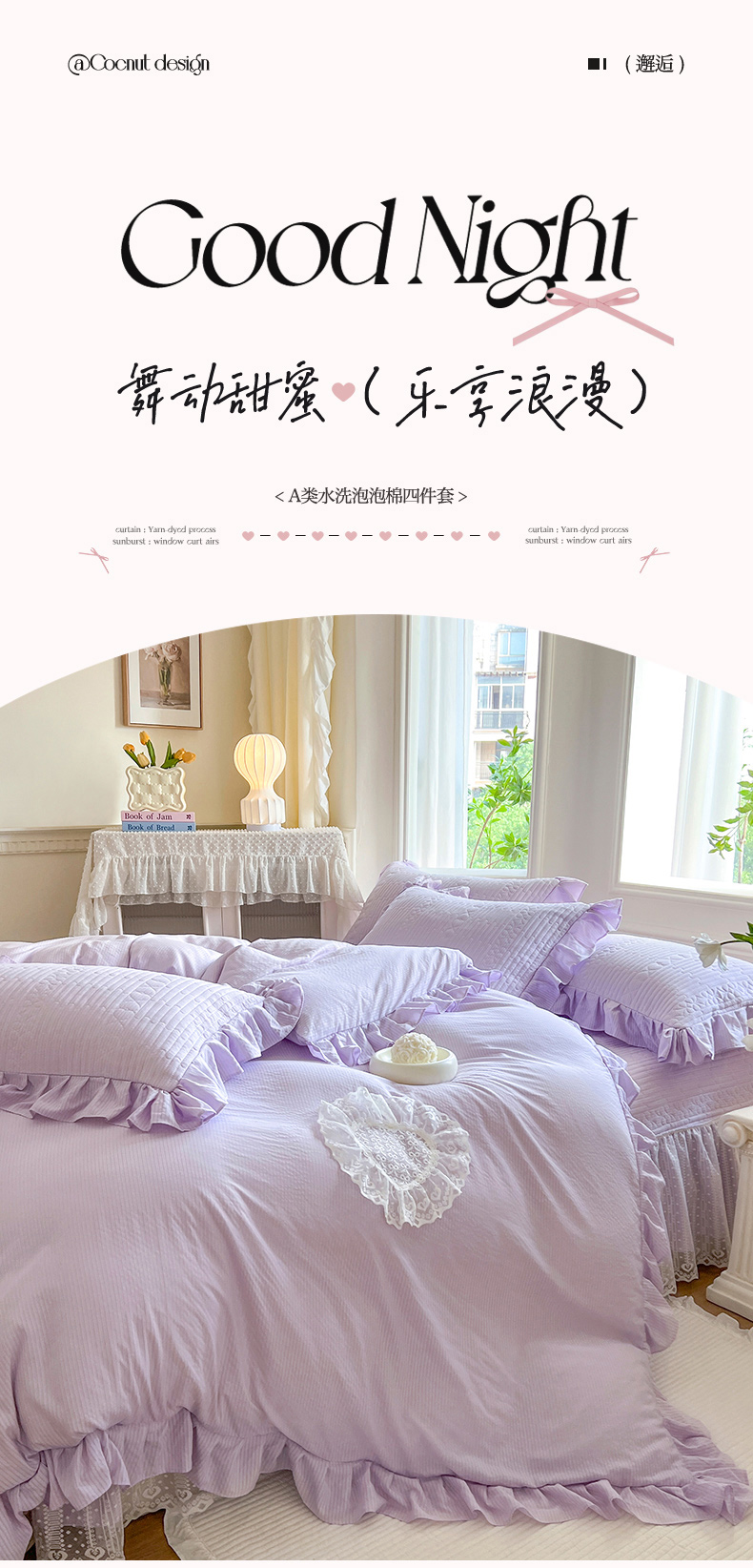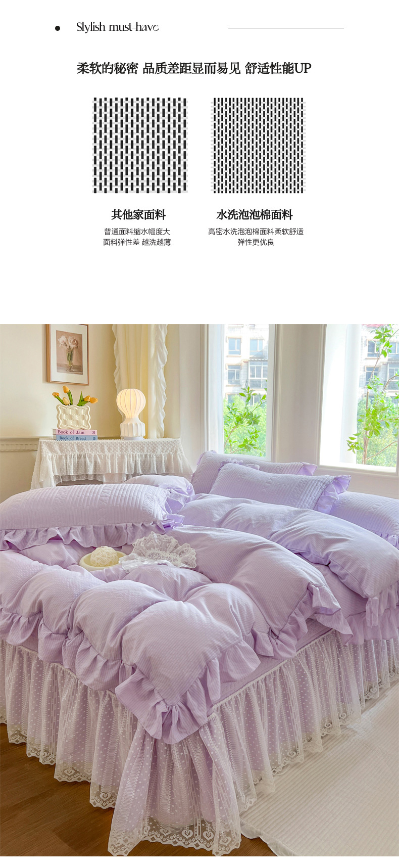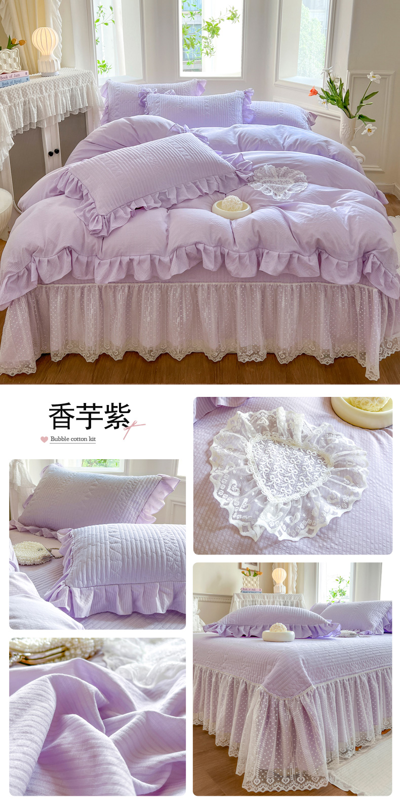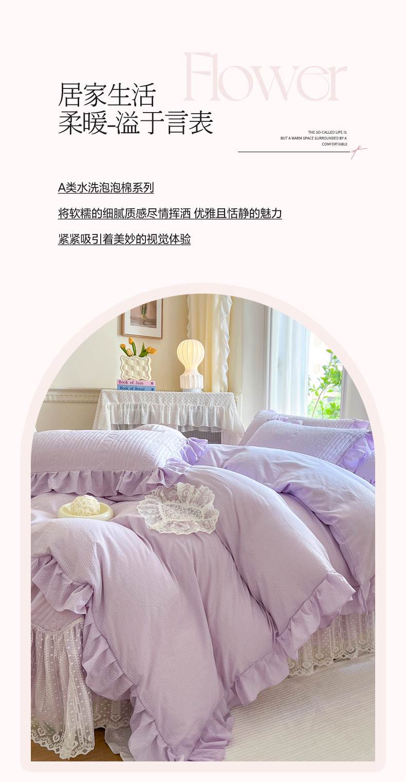 商品名称:乐朵2025春夏 妮可 A类 泡泡棉 夹棉床盖四件套(专版专利 控价188) 香芋紫