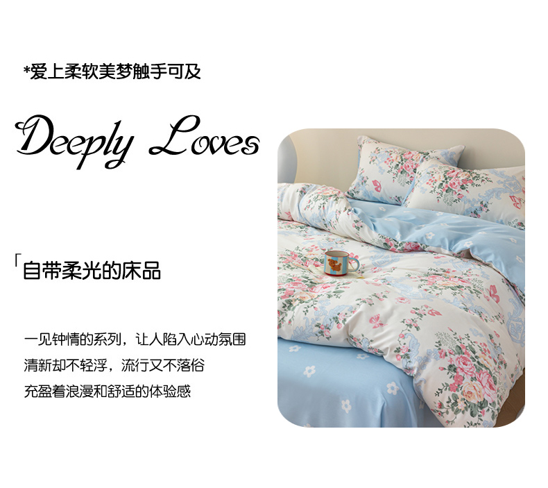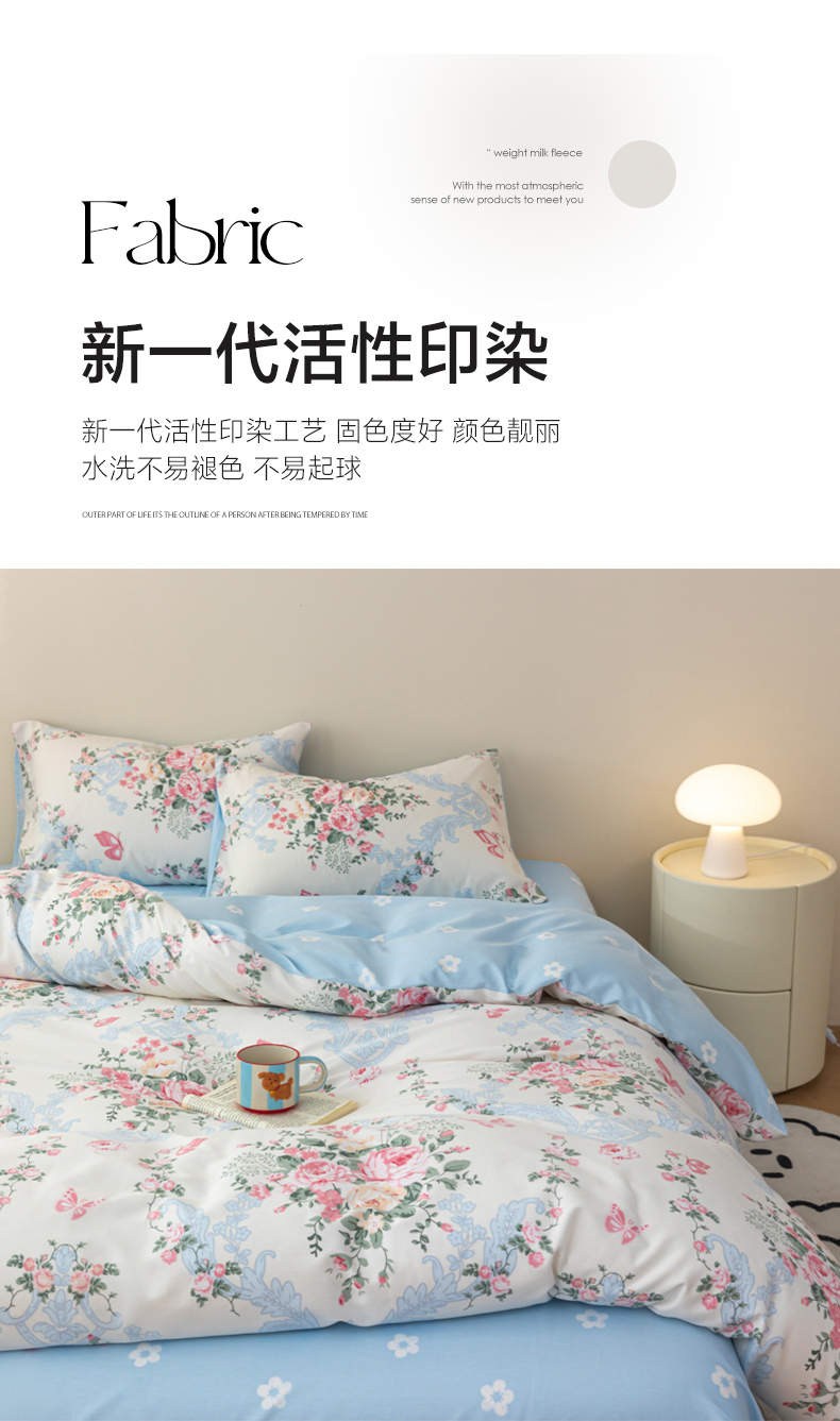 洁柔直播新款全棉磨毛喷气印花四件套加厚纯棉三件套(一字绣工艺款)瑞卡斯,瑞卡斯