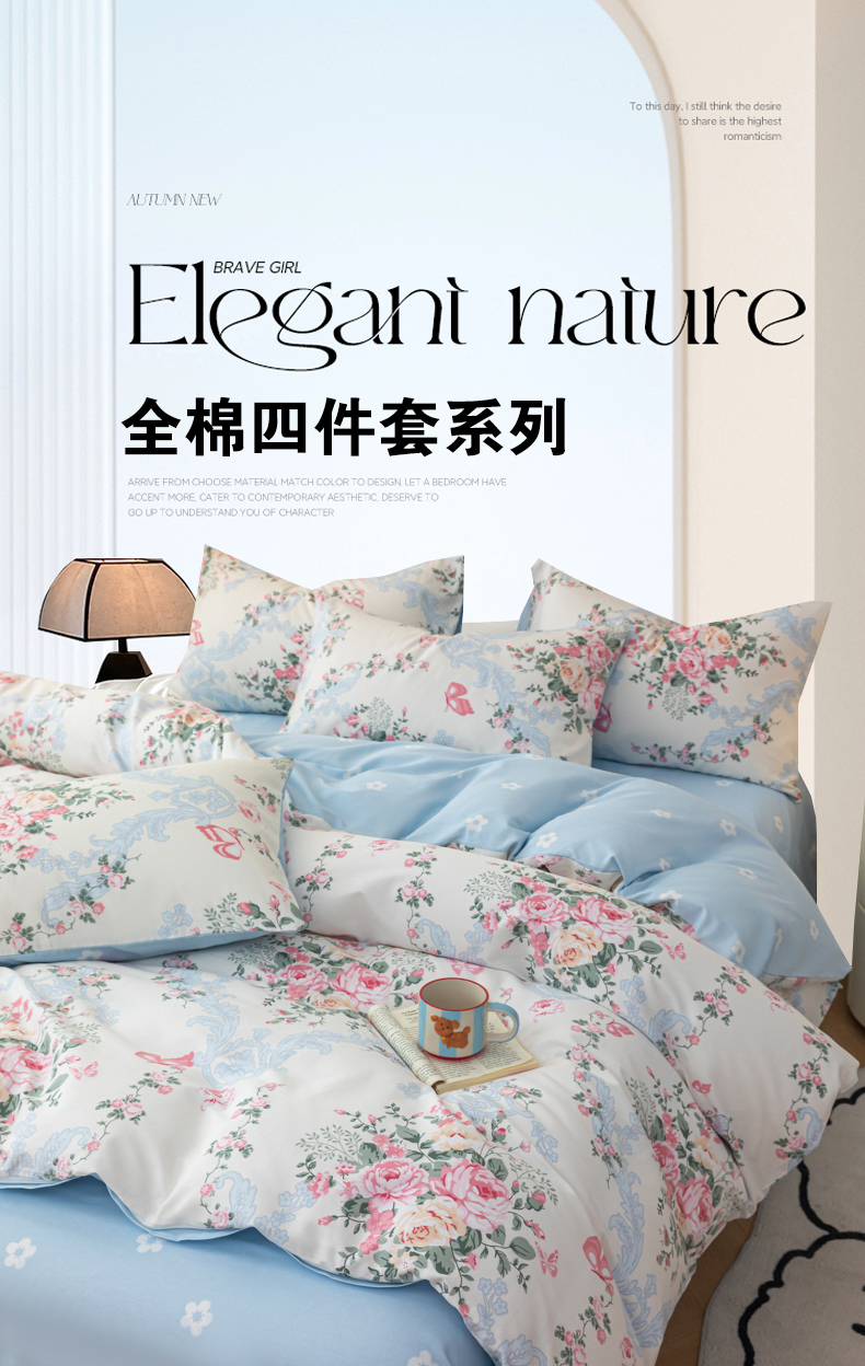 商品名称:洁柔 2025爆款13370全棉小清新印花四件套三件套 雅韵花都
