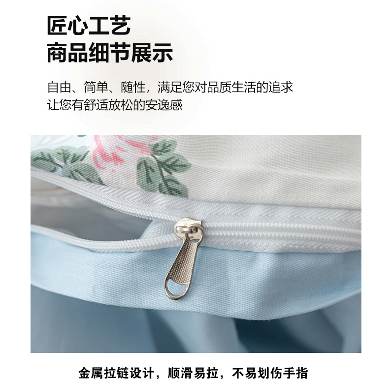 洁柔直播新款全棉磨毛喷气印花四件套加厚纯棉三件套(一字绣工艺款)羽毛诗情,羽毛诗情