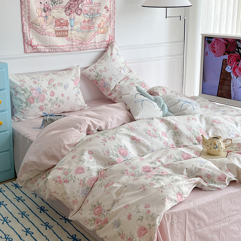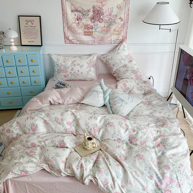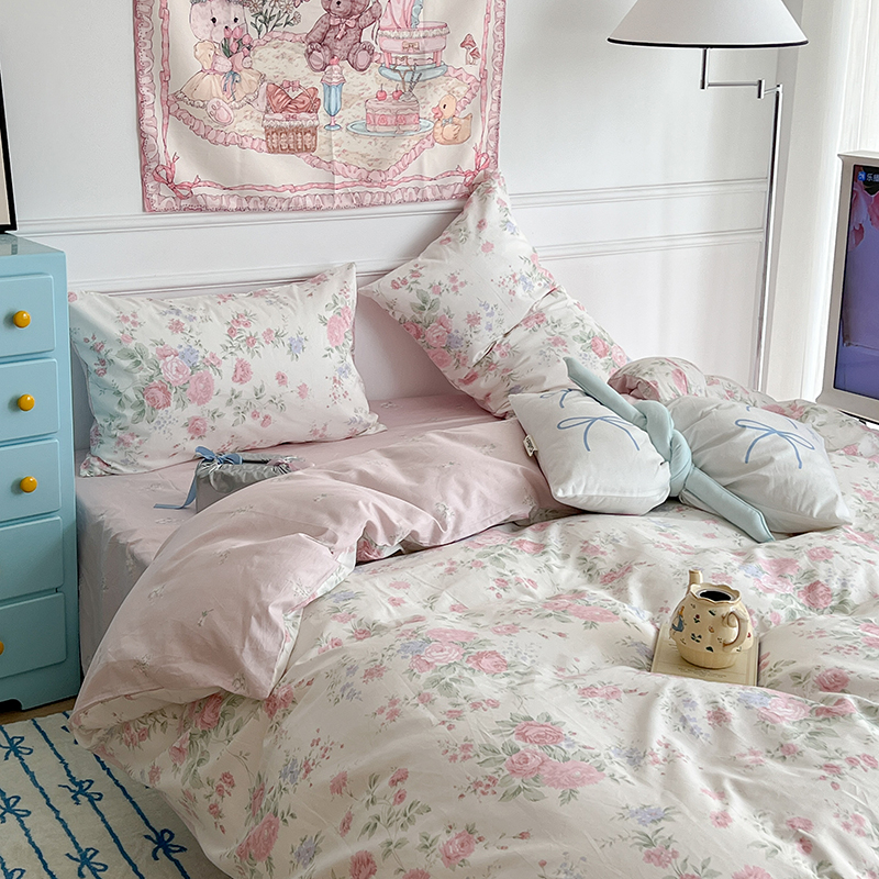 商品名称:昔可家纺 2024新款13372全棉亲肤四件套-小清新系列 芮蔓花园