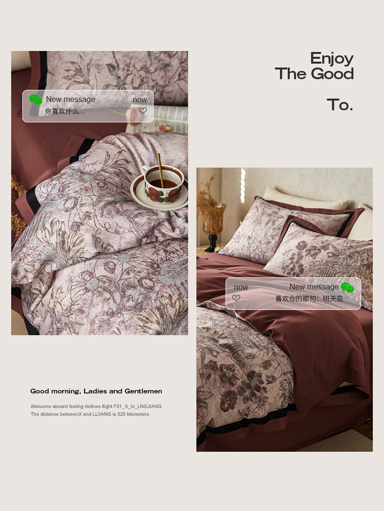 (总)简纯主义2025新款兰精天丝印花四件套,樱桃白,樱桃粉