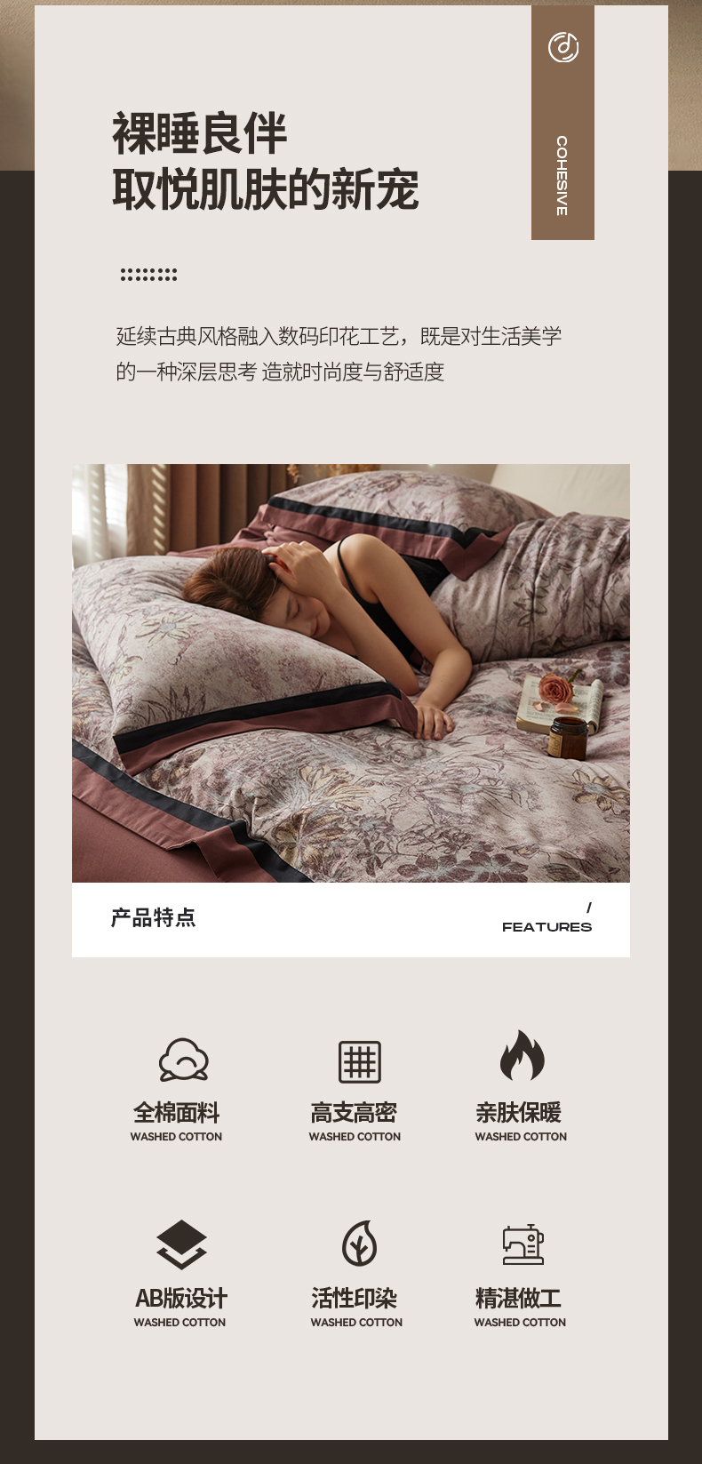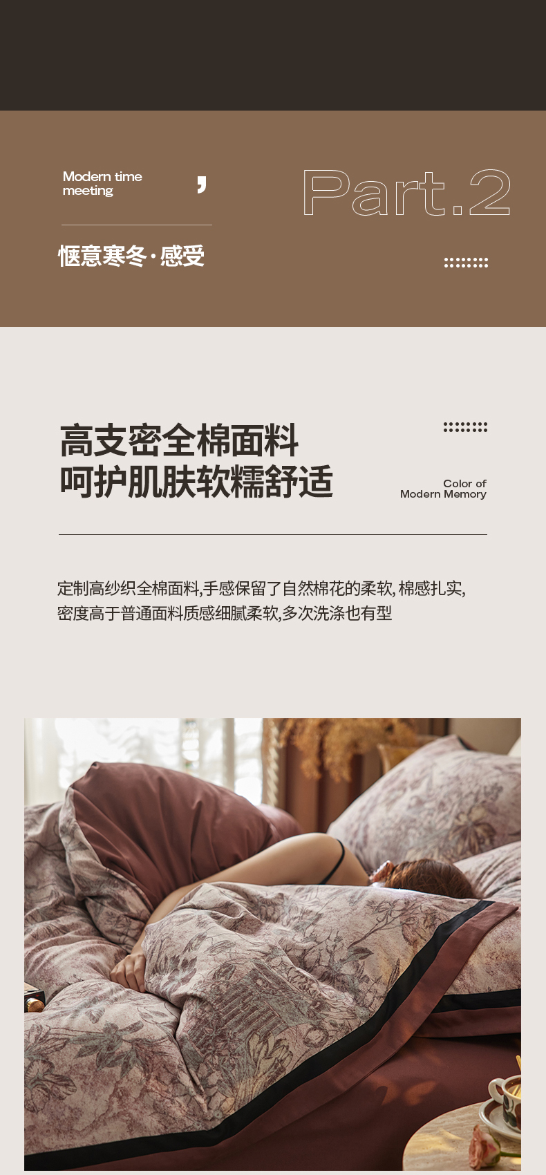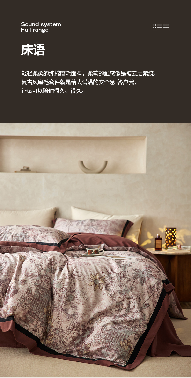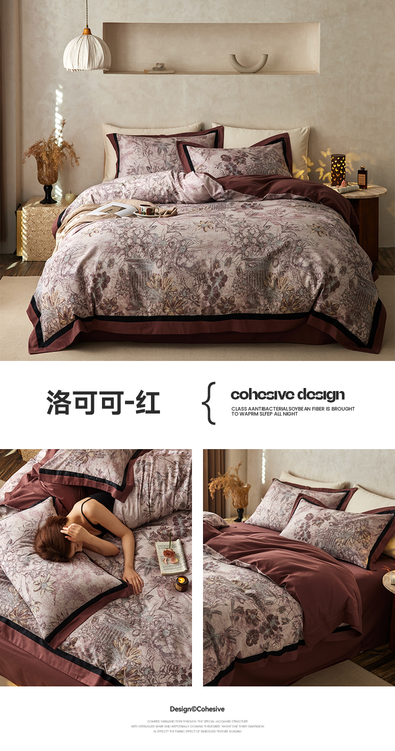 简纯主义 2025新款全棉磨毛印花四件套-洛可可 洛可可-红