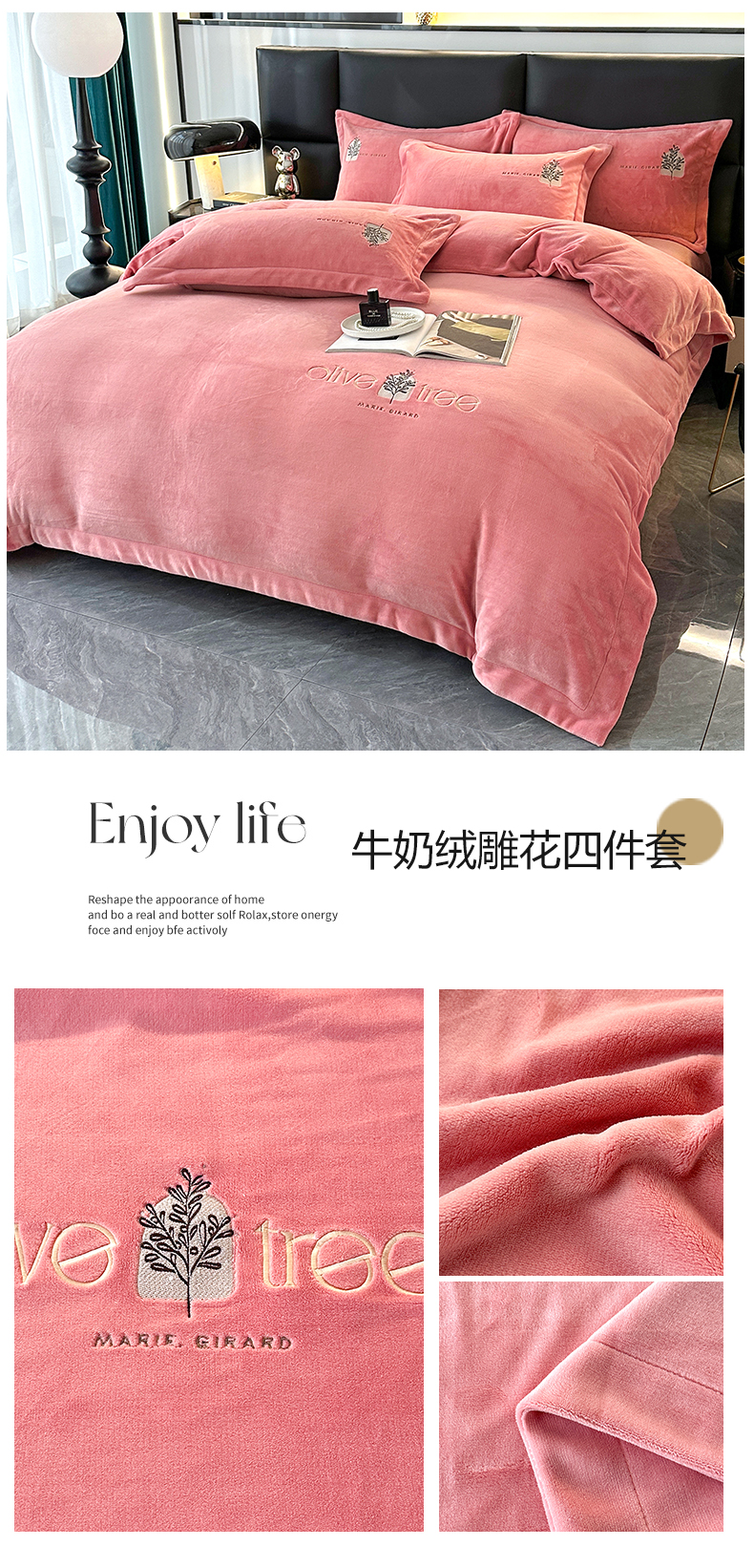 (总2)橘姿家纺 2025新款9斤牛奶绒绣花四件套-相伴,相伴-豆沙,相伴-桔,相伴-蓝,相伴-蓝灰,相伴-绿,相伴-驼色,相伴-玉色,相伴-紫色