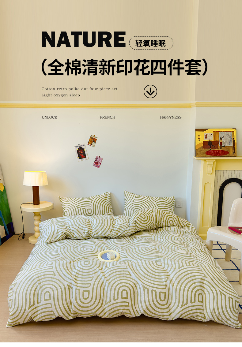(总)感遇家纺 2025新款小清新甜系全棉四件套,百丽兔,波点小女孩,点点小狗,复古樱桃,格子草莓,格子樱桃,花间牧歌,灰条猫咪,奶绿,宁夏,森林小熊猫,甜心波点