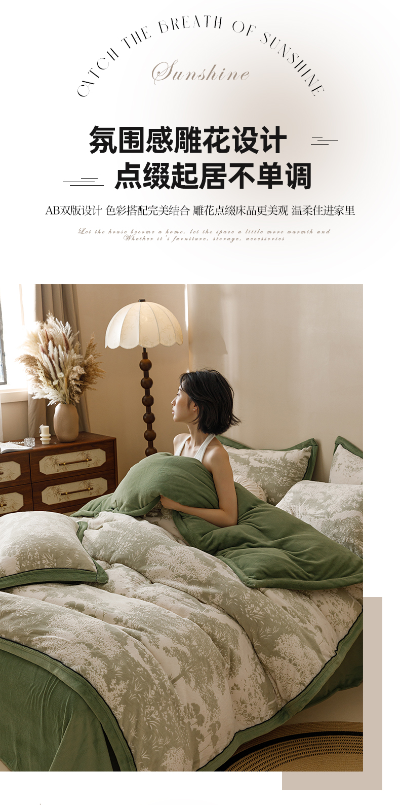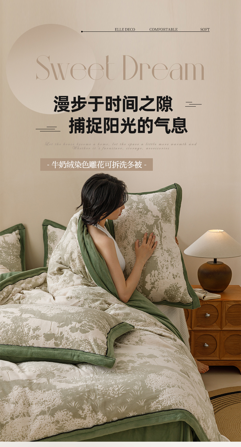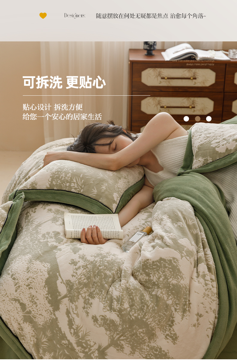 • 91家纺网 家纺一手货源 找家纺 2024新款牛奶绒染色雕花可拆洗冬被被子被芯 挪威森林