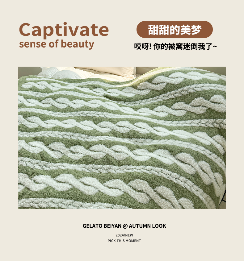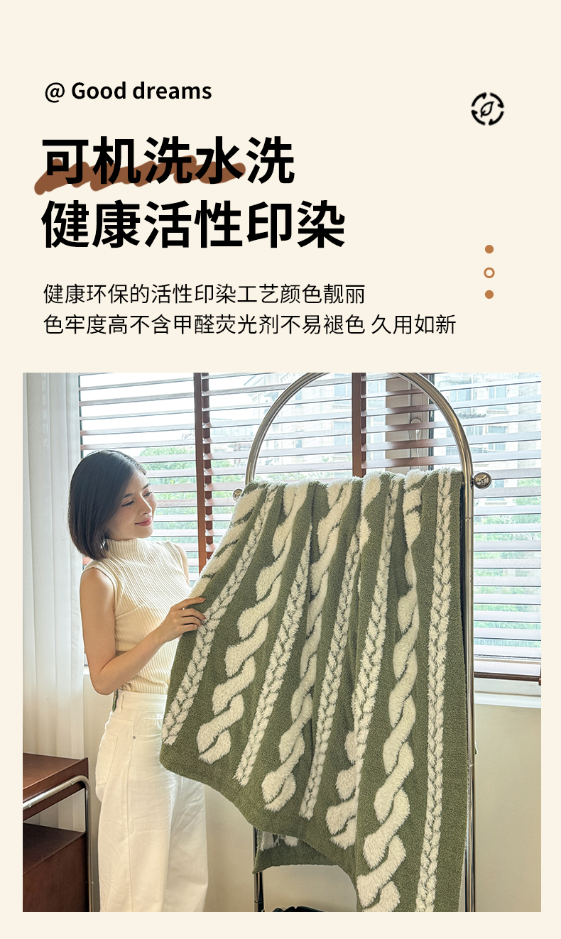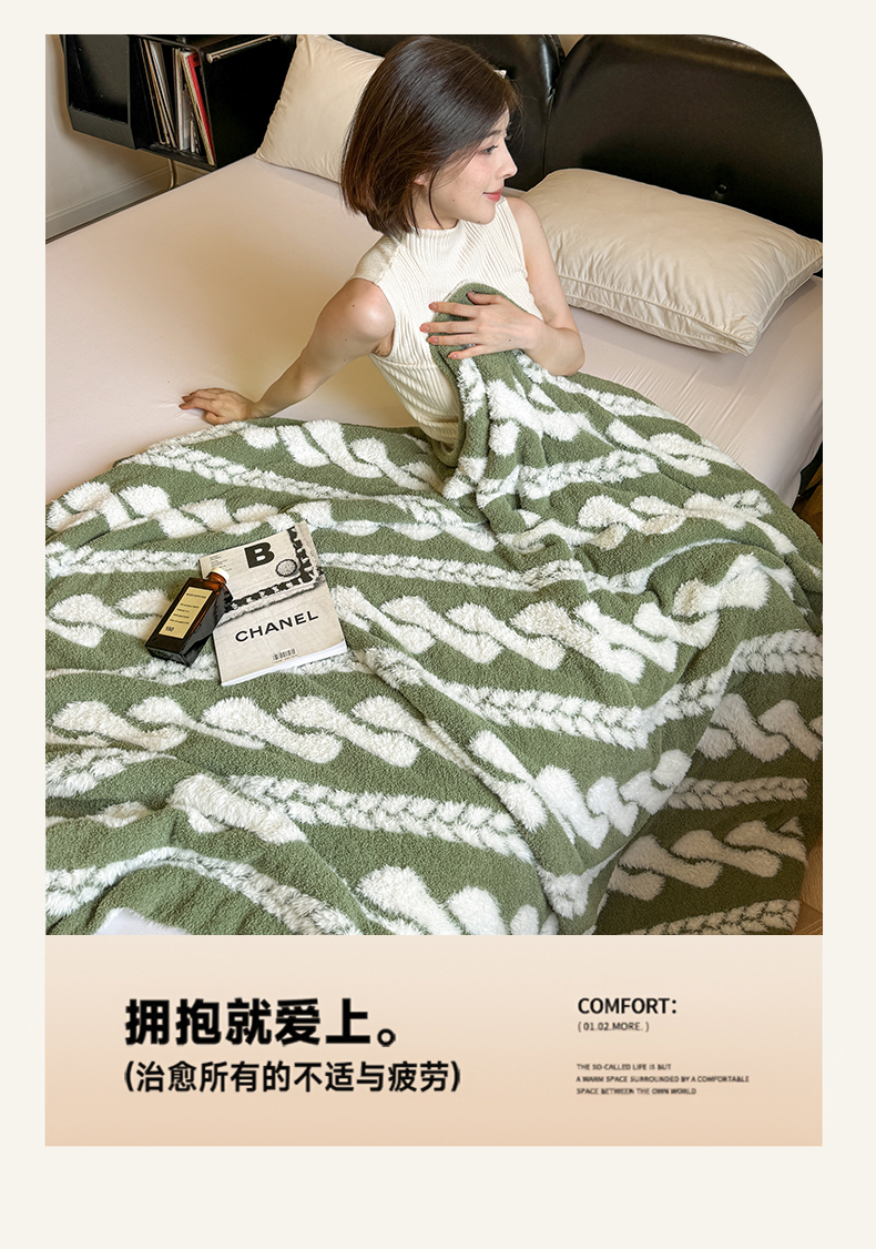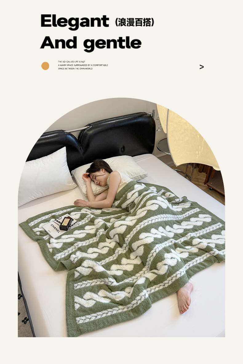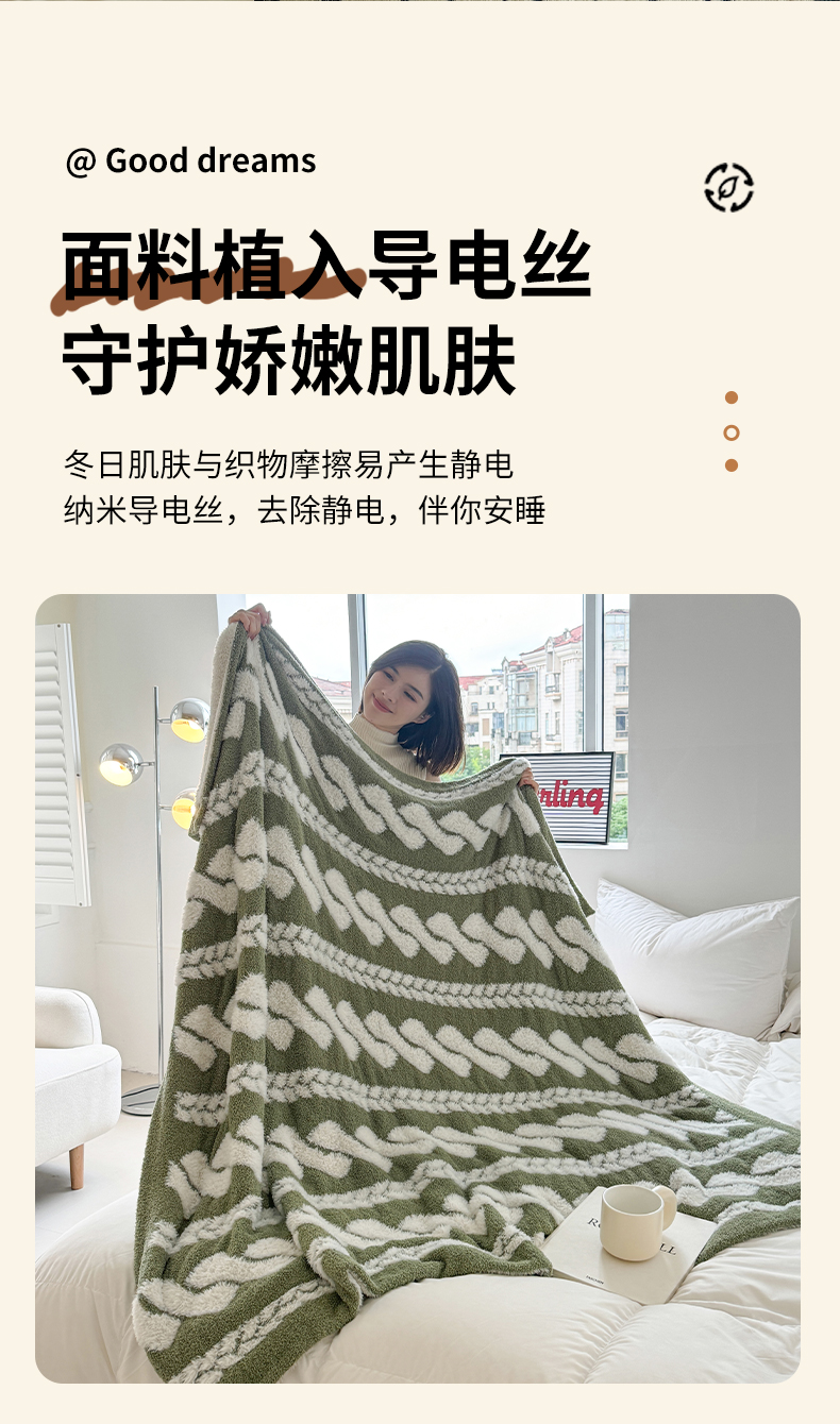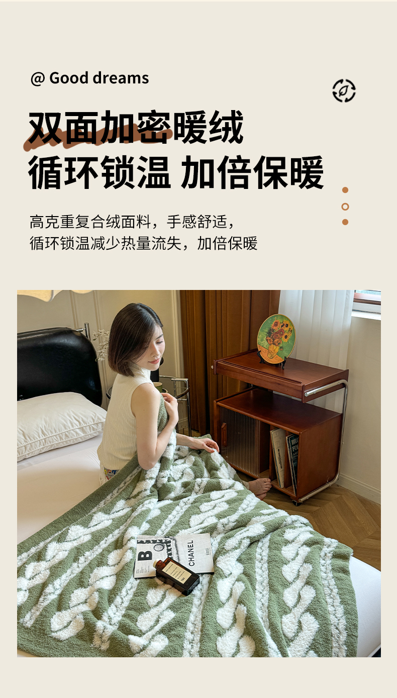 商品名称:丹本家纺 2025新款A类云暖绒仿貂复合毯跨境无印风针织毯半边绒毛毯盖毯 绿麻花