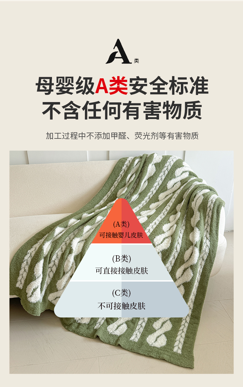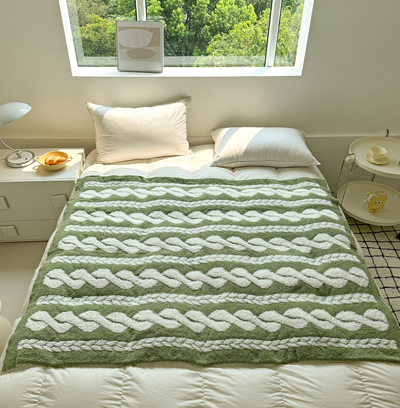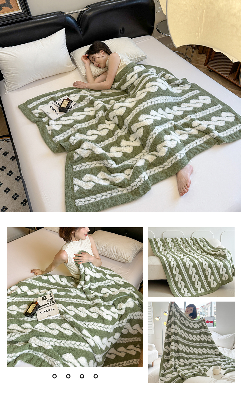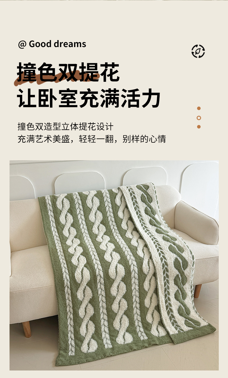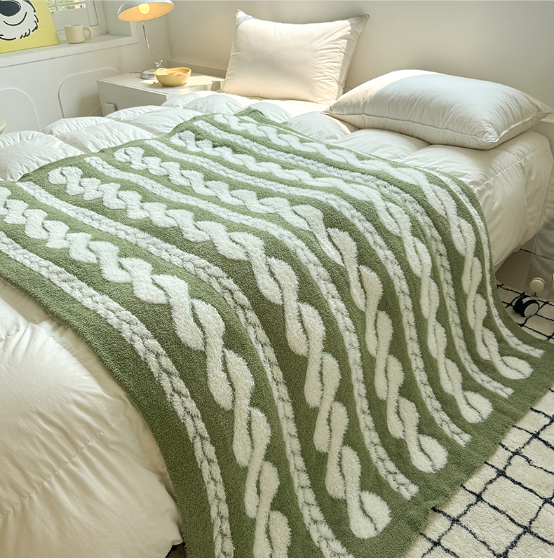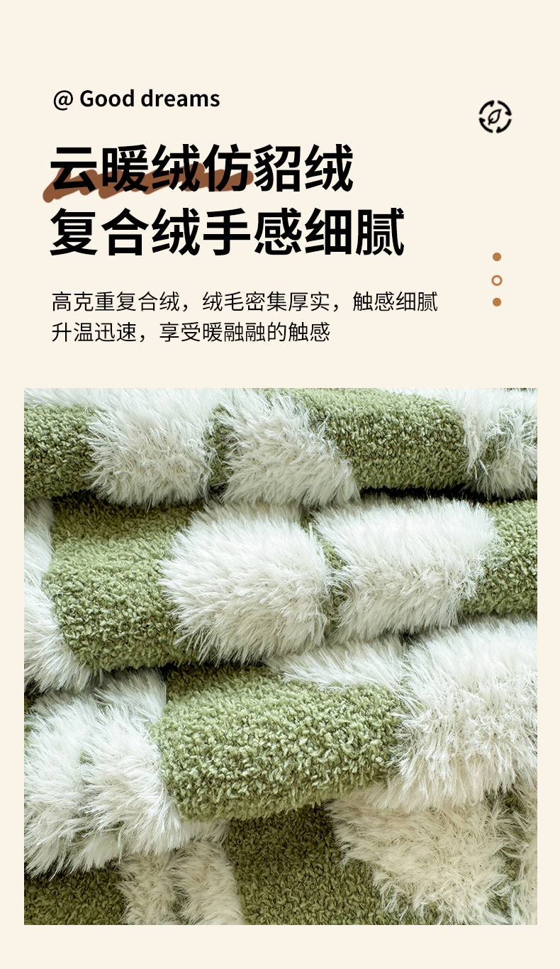 丹本家纺 2025新款A类云暖绒仿貂复合毯跨境无印风针织毯半边绒毛毯盖毯 绿麻花