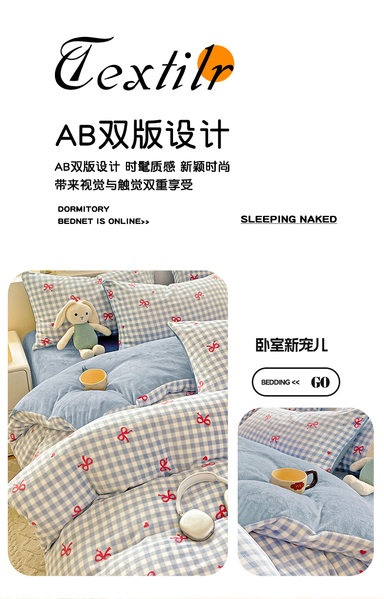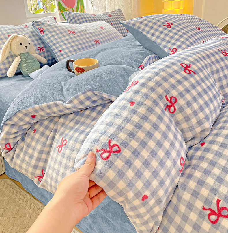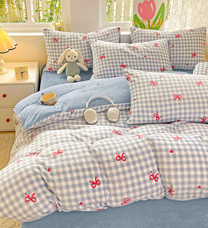 当前位置: 91家纺网 > 商品网购 > 床品套件 > 四件套 > 牛奶绒四件套 > 优选良品 2025新款小清新加厚高克重牛奶绒四件套直播热款电商热款 温柔-蓝