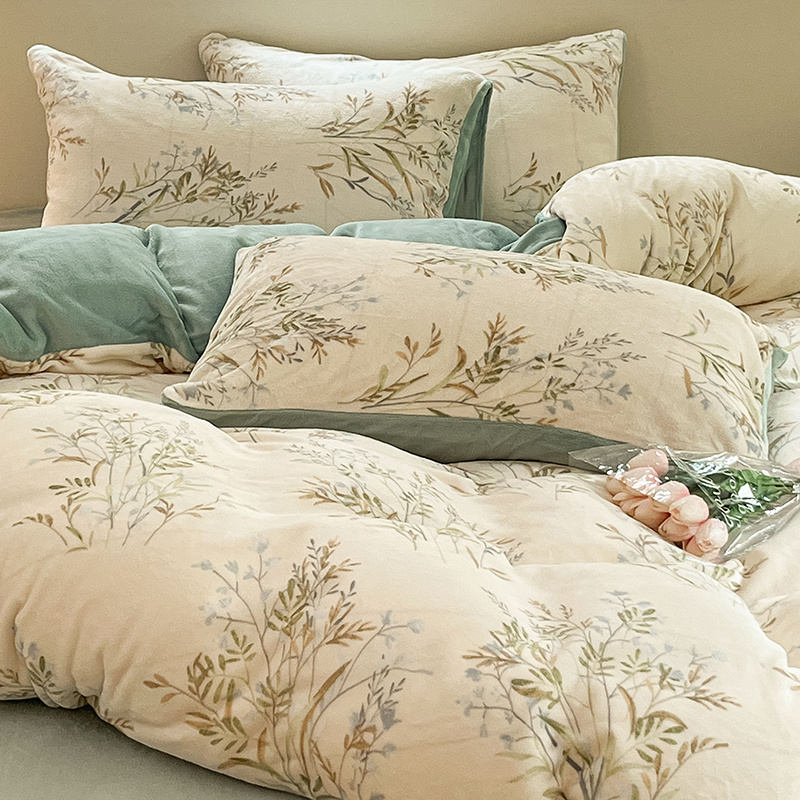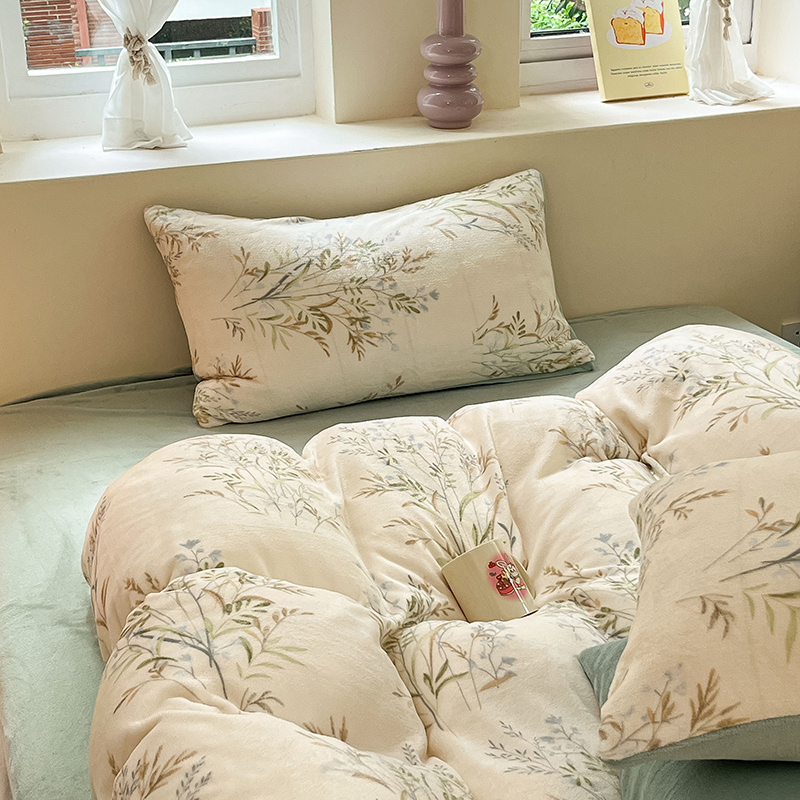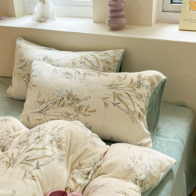 雅居纺家纺 2024新款高克重印花牛奶绒单枕套 仙草