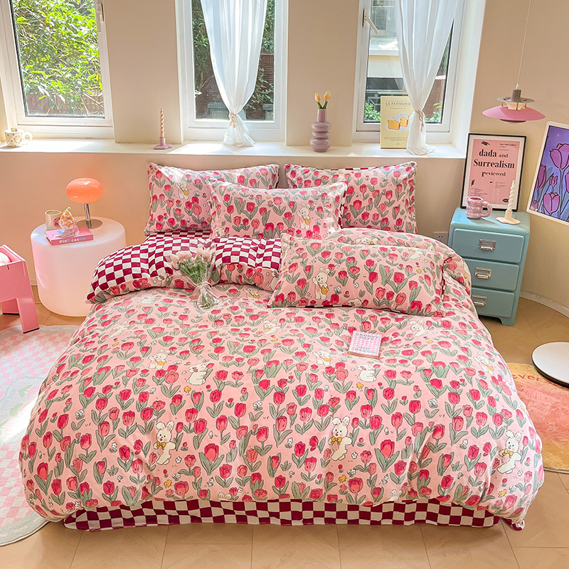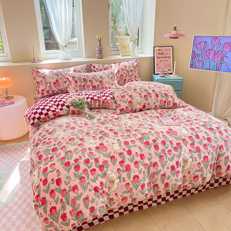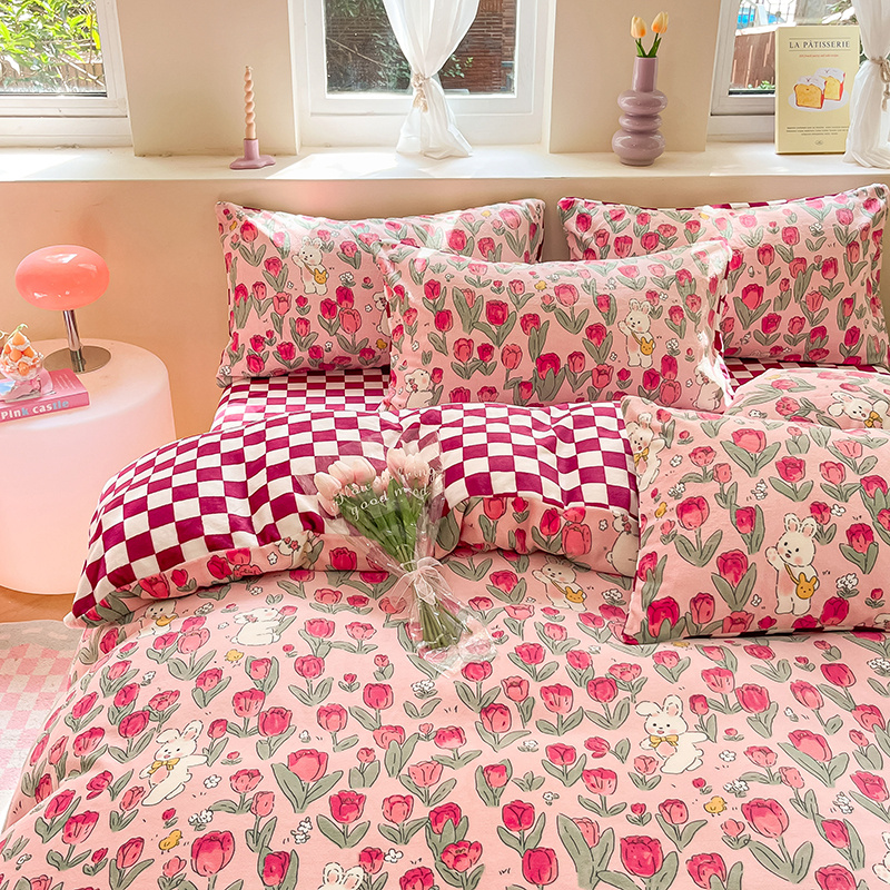 雅居纺家纺 2024新款高克重印花牛奶绒单被套 休闲小兔