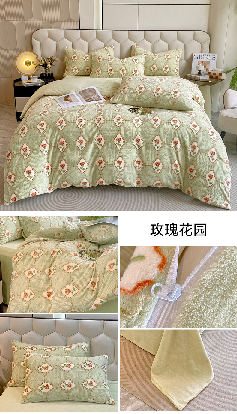 商品名称:佰亿莱 2024新款雕花牛奶绒四件套 玫瑰花园