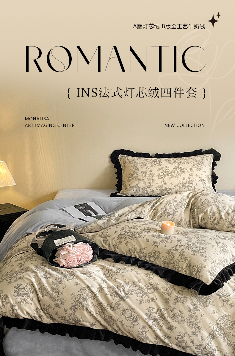 (总)羚羊语家纺 爆款2025轻法式赫本风灯芯绒四件套小香风提花立体韩版花边牛奶绒三件套珊瑚法莱绒灯芯绒单被套-实拍风,月亮花房-繁花(爆款),月亮花房-初禾,月亮花房-羽叶,月亮花房-艺境,月亮花房-南枝,月亮花房-山茶