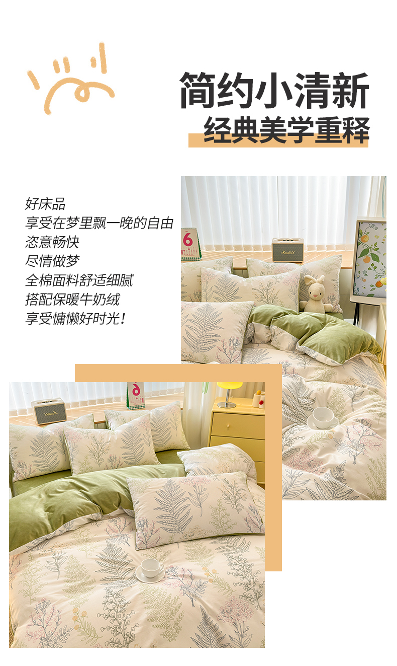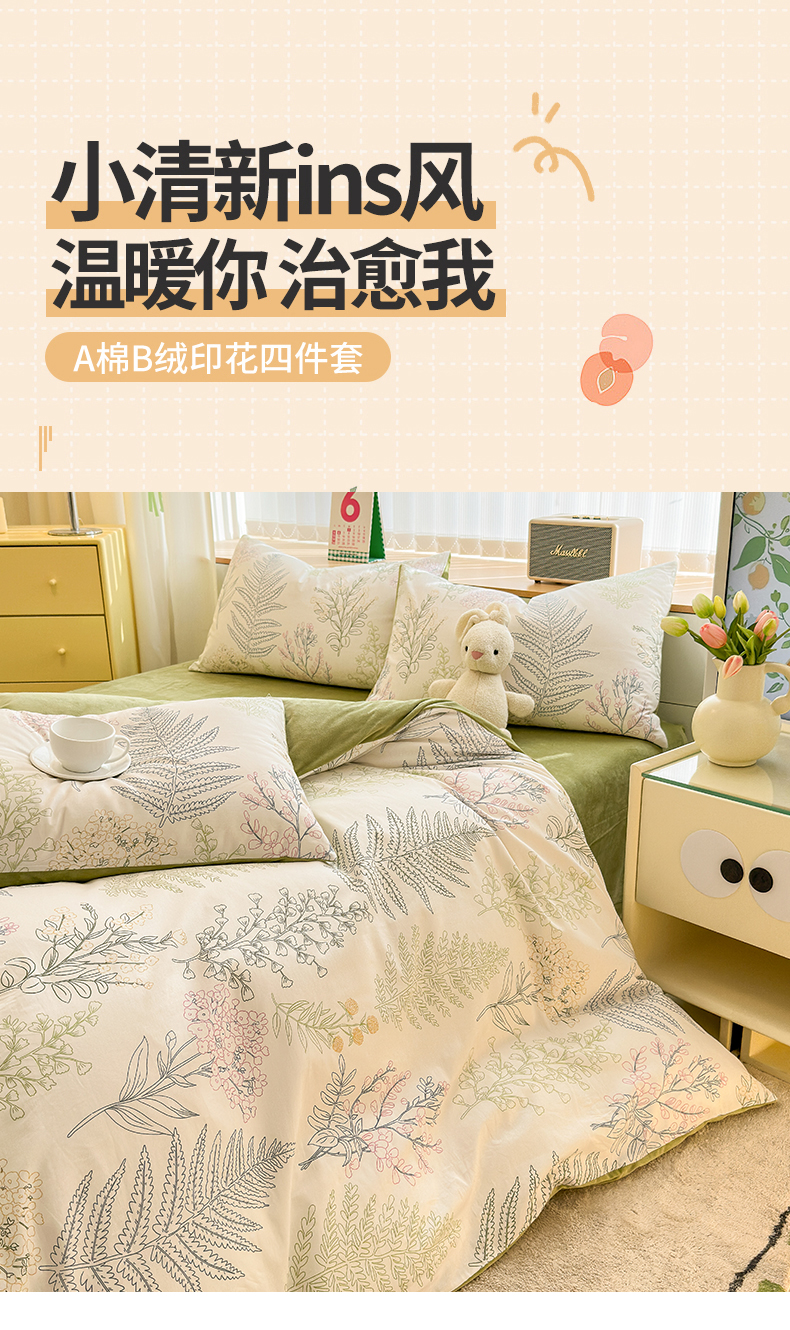 当前位置: 91家纺网 > 商品网购 > 床品套件 > 四件套 > 其它四件套 > 清雅福 2024新款小清新ins棉加绒印花四件套系列-棉绒风格二 巴黎之恋