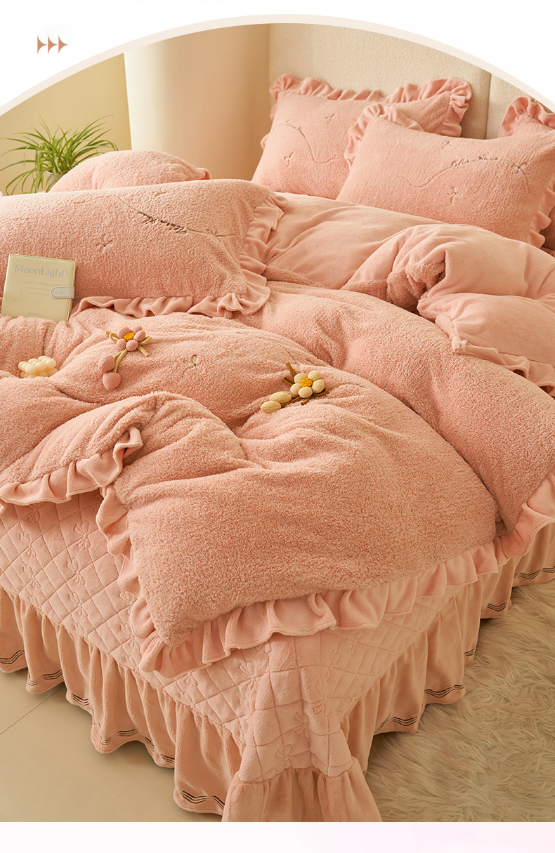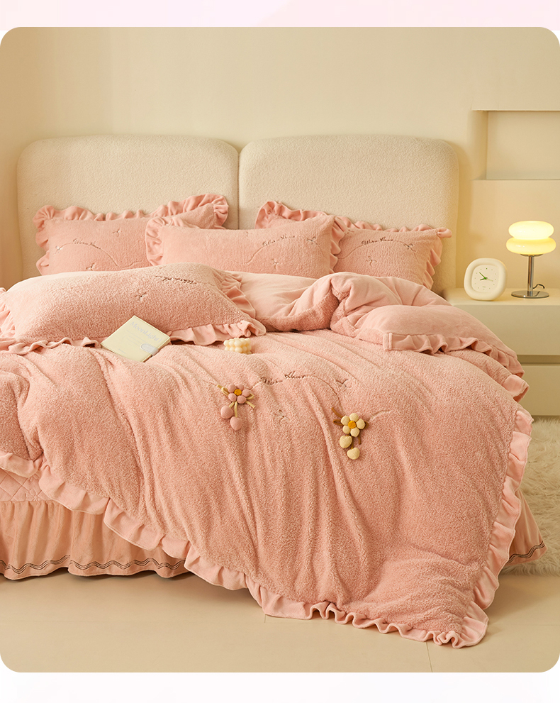 恒爱家纺 2024新款泰迪绒韩版床单床盖四件套 粉色