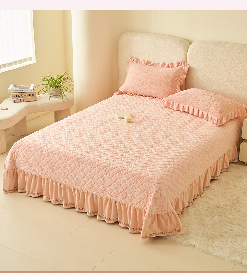 (总)恒爱家纺 2025新款牛奶绒贴布绣夹棉床裙四件套,豆沙红,浪漫紫,天空蓝,温馨粉,象牙白