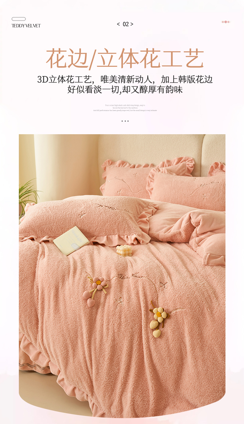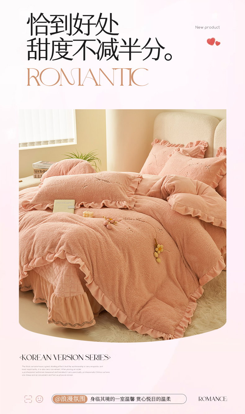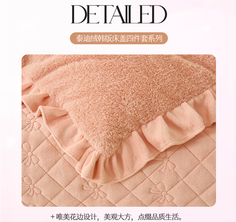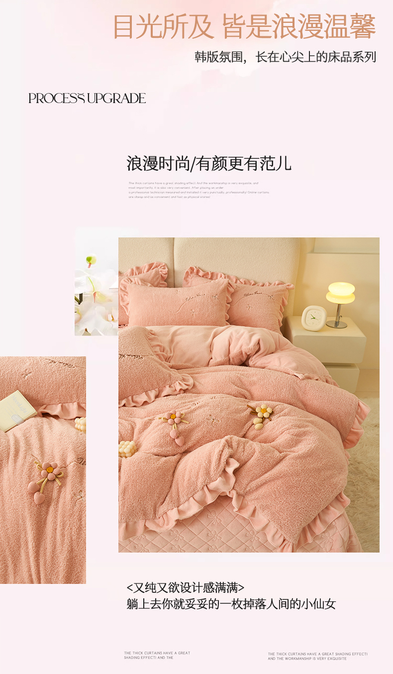 商品名称:恒爱家纺 2024新款泰迪绒韩版床单床盖四件套 粉色