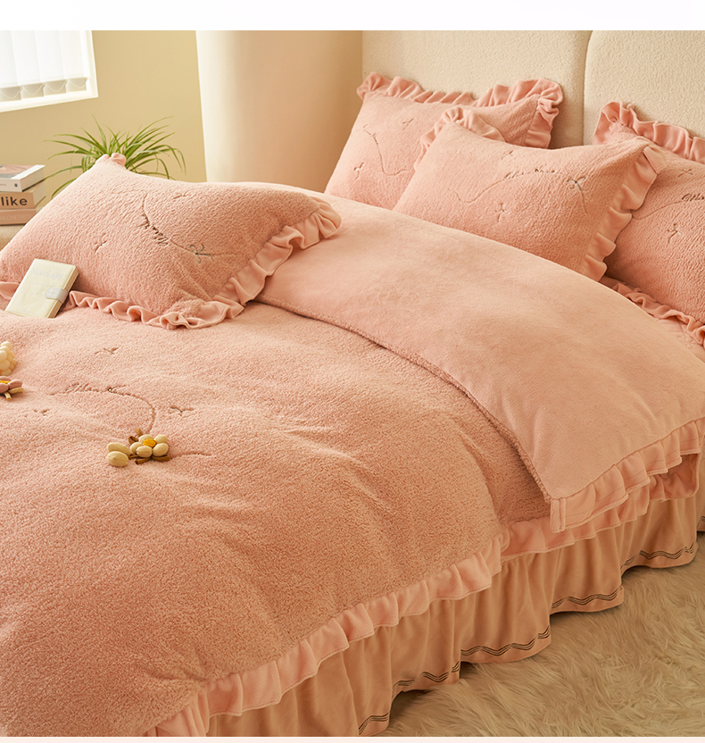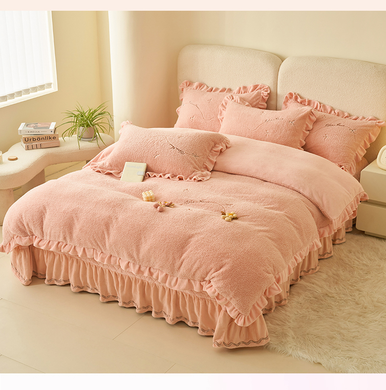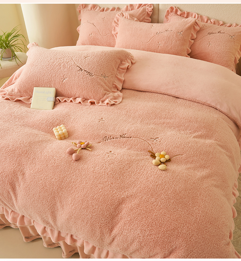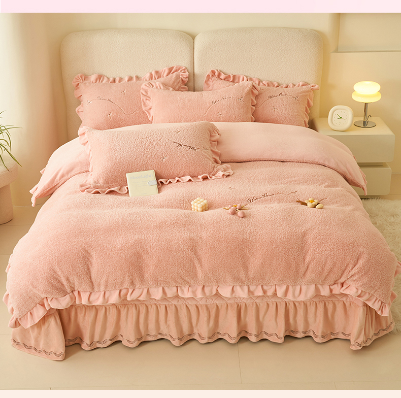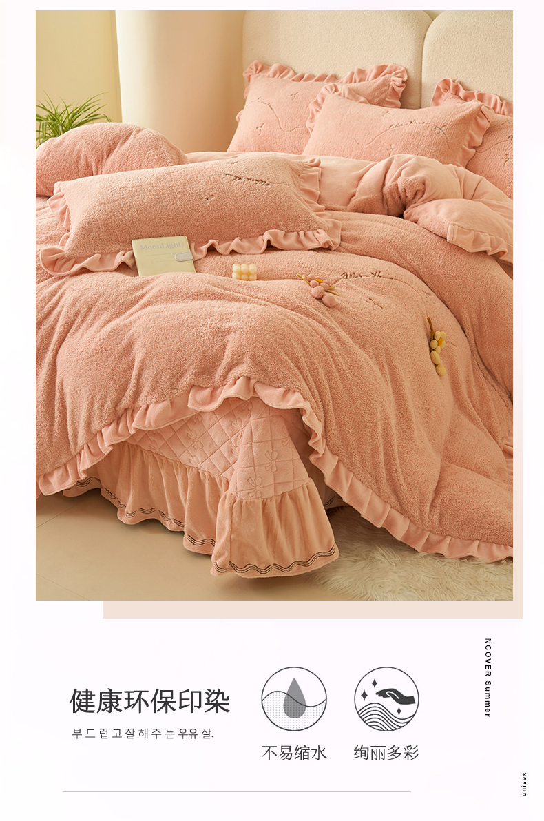商品名称:恒爱家纺 2024新款泰迪绒韩版床单床盖四件套 粉色
