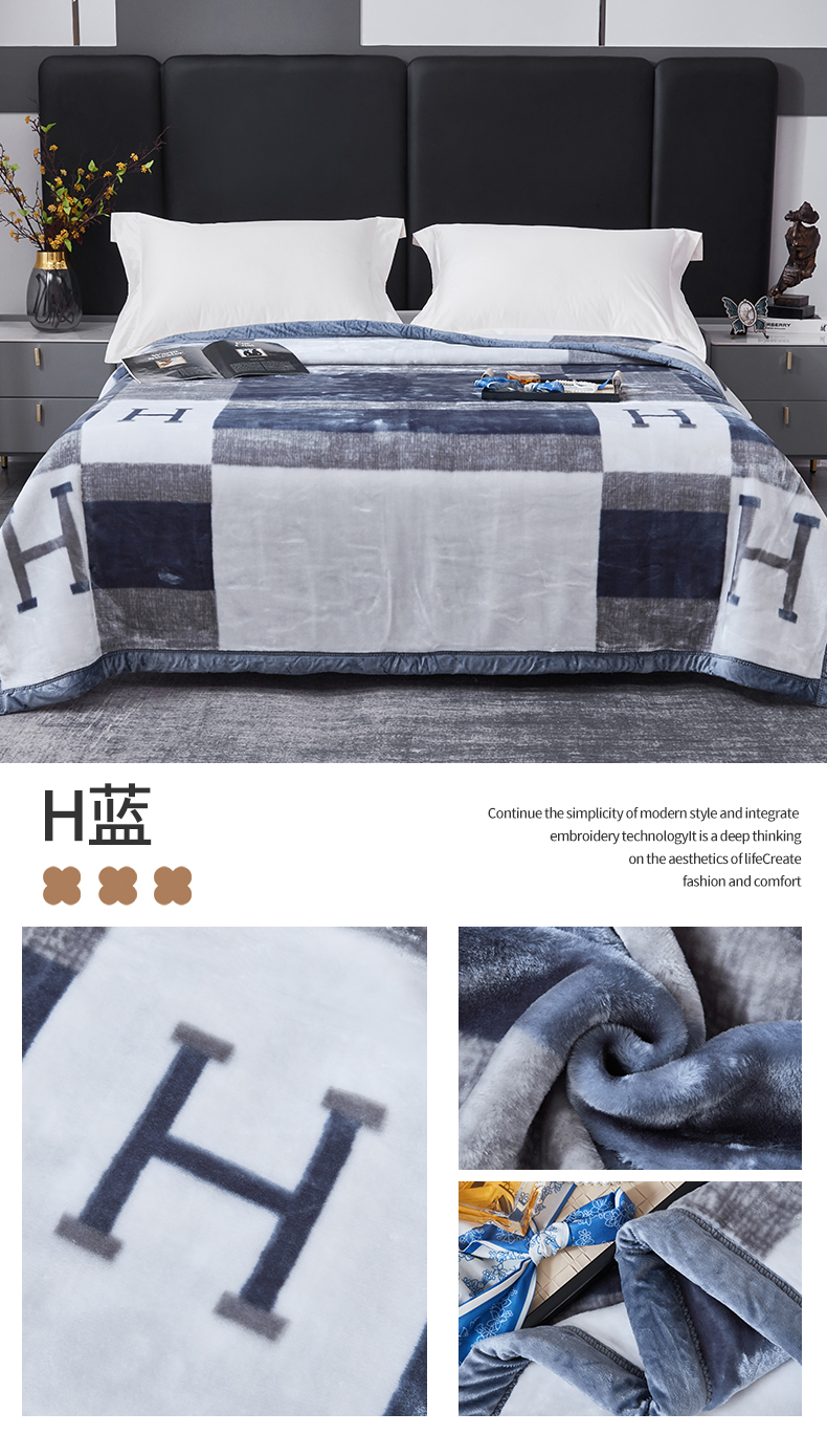 商品名称:凯轩毛毛毯毯子网销专供 2024新款A类双层云毛毯毯子 H蓝