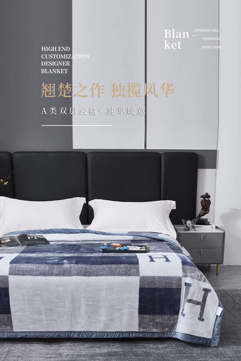 凯轩毛毛毯毯子网销专供 2024新款A类双层云毛毯毯子 H蓝