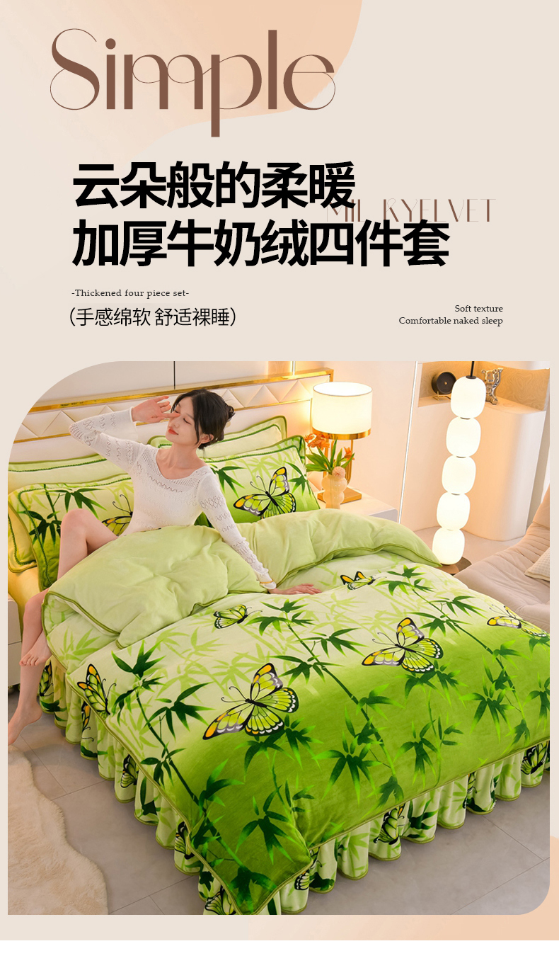 金柚子 2024新款加厚牛奶绒四件套 翩翩起舞