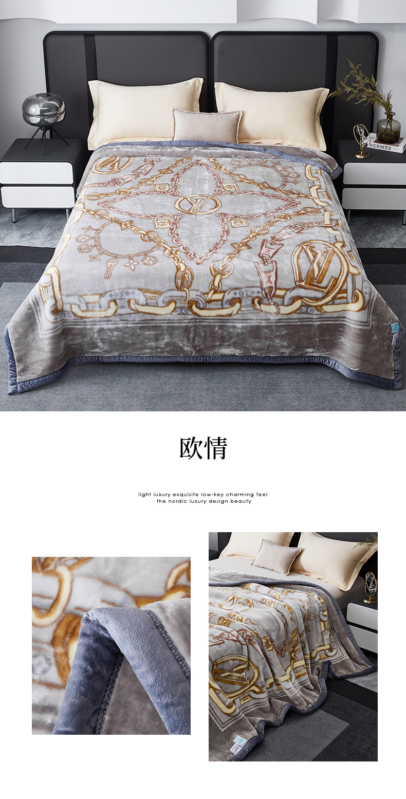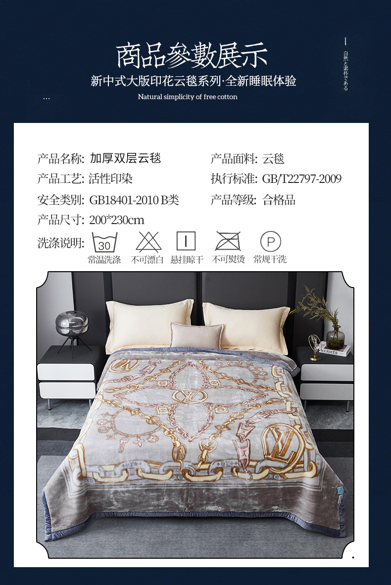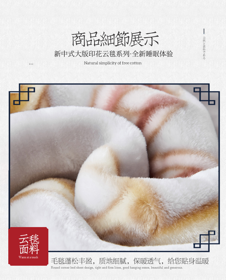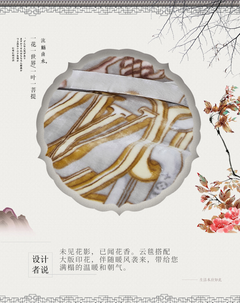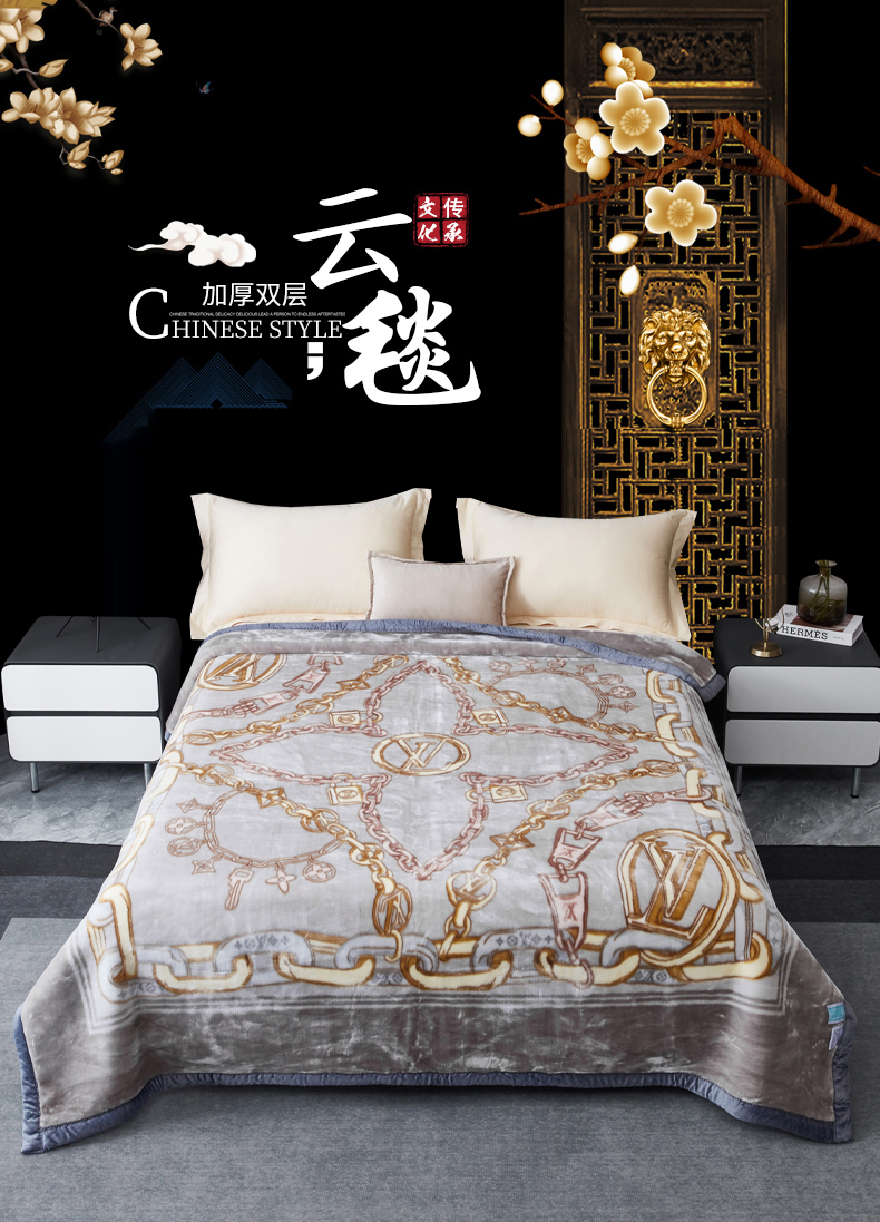 凯轩毛毛毯毯子网销专供 2024新款新中式大版印花双层云毛毯毯子 欧情
