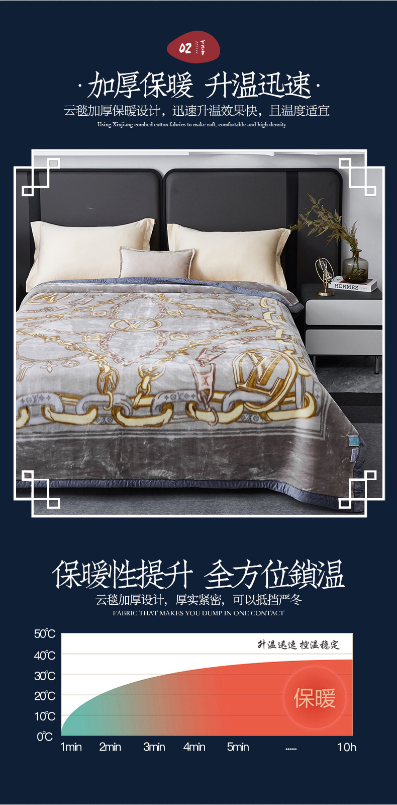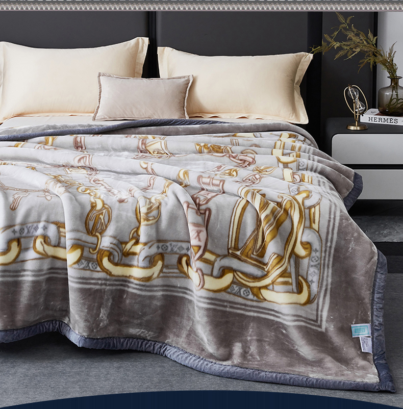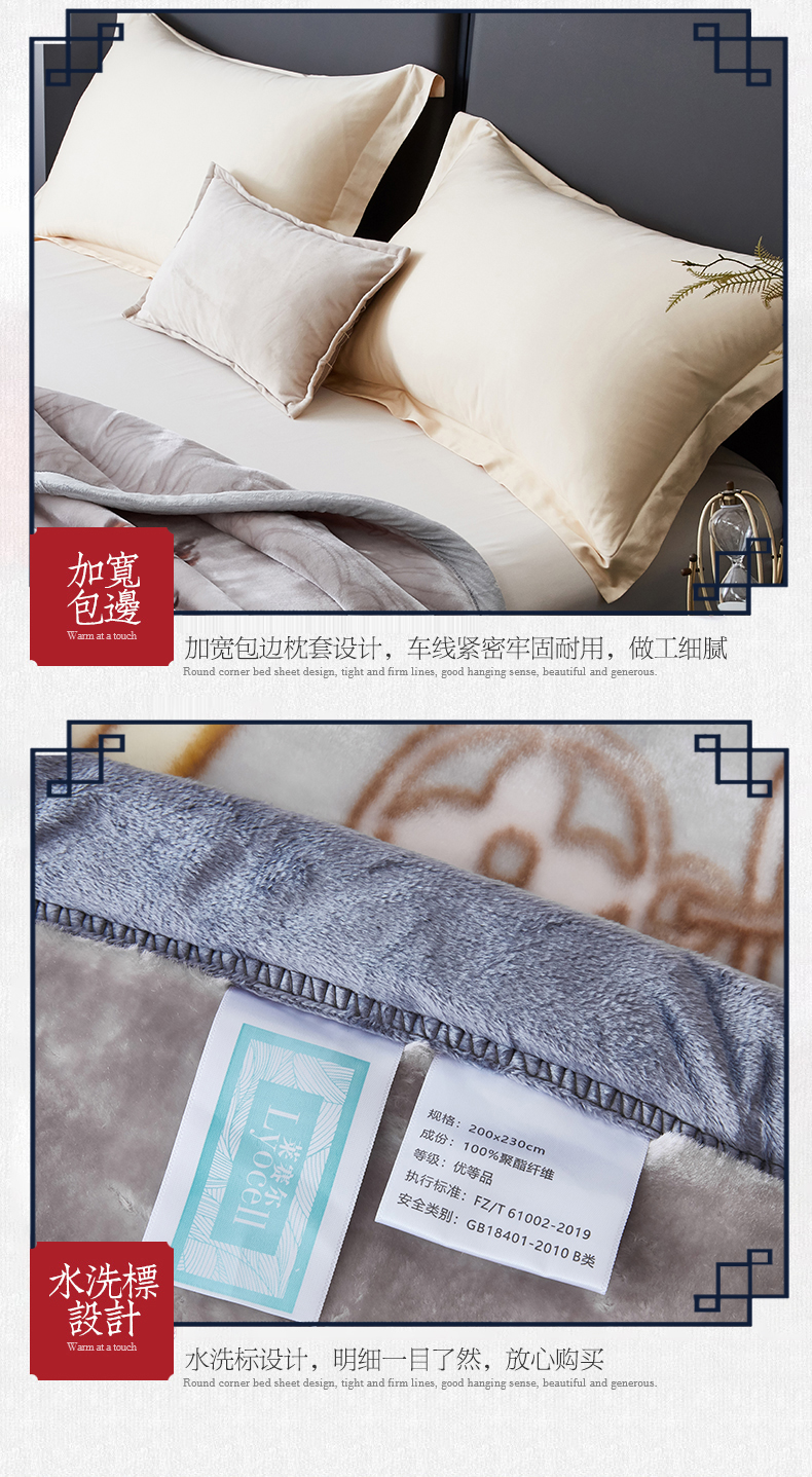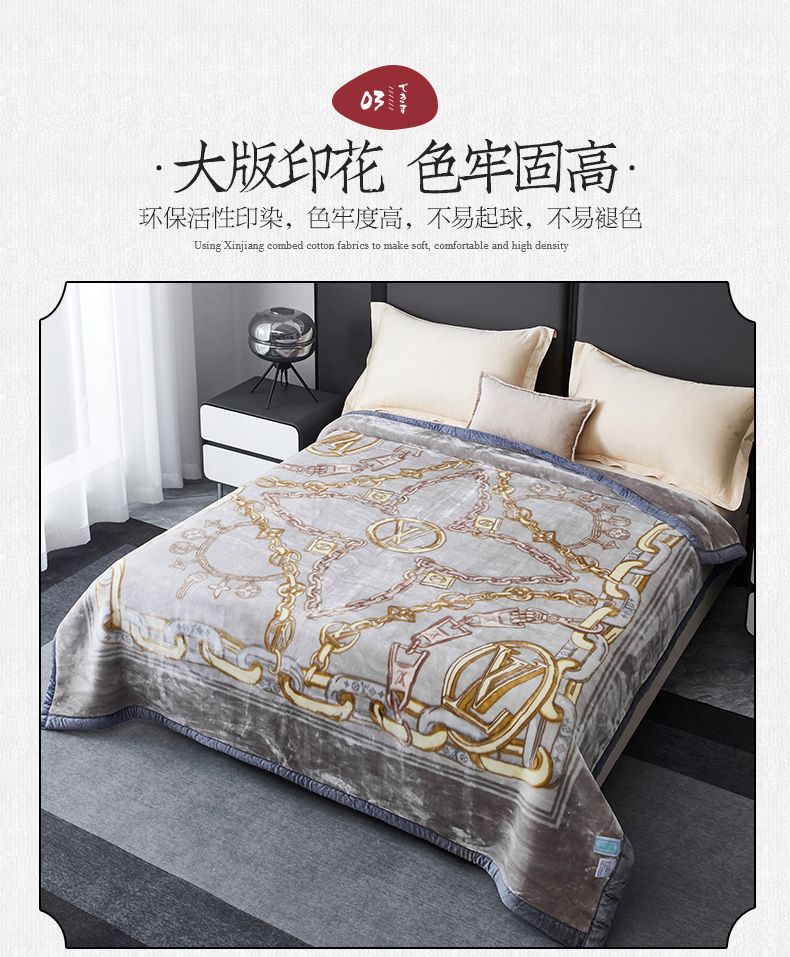 凯轩毛毛毯毯子网销专供 2024新款新中式大版印花双层云毛毯毯子 欧情