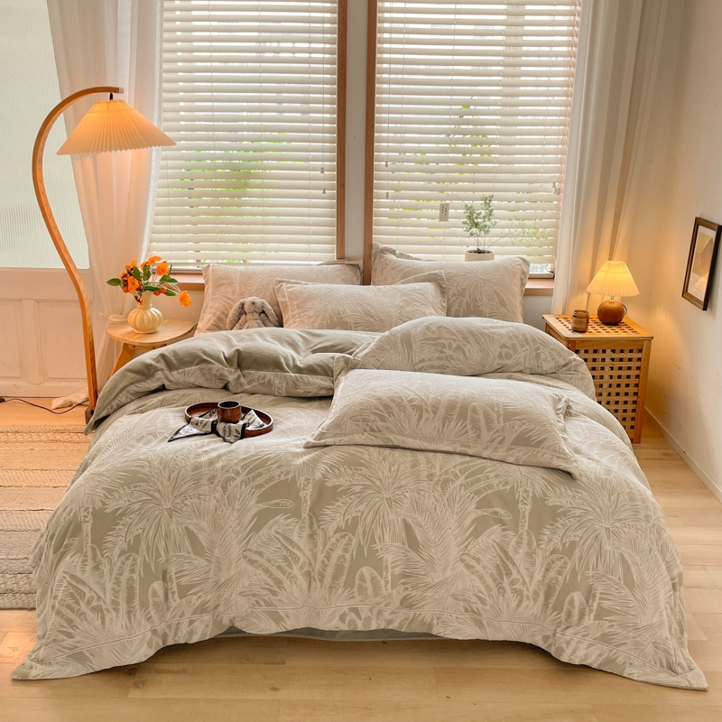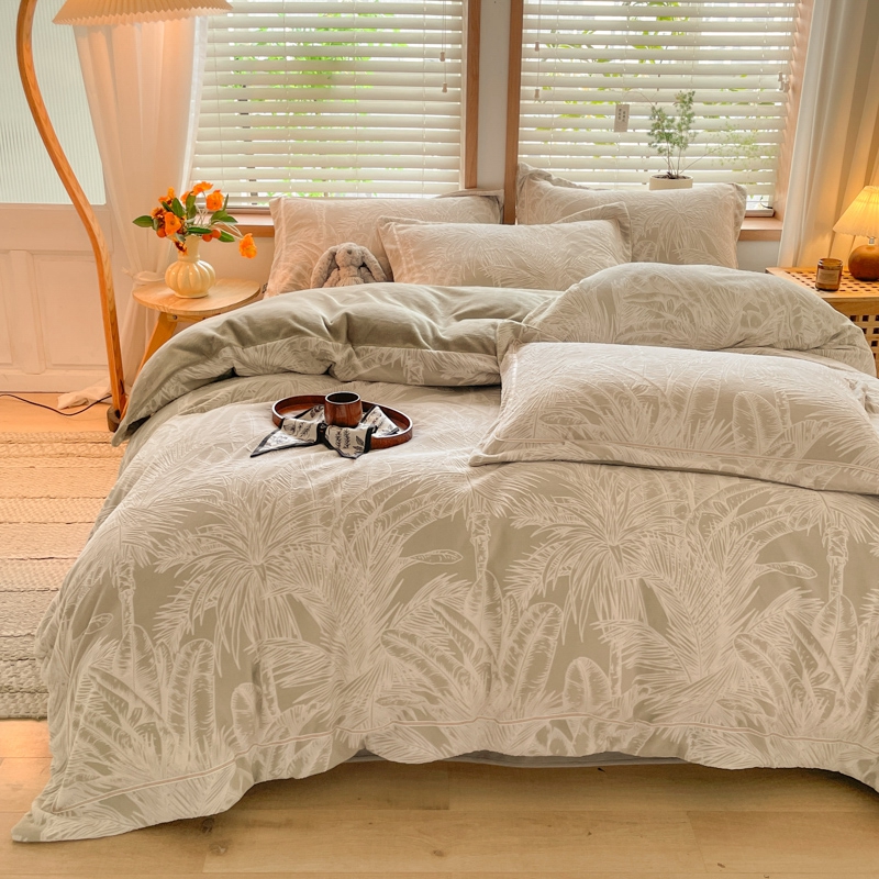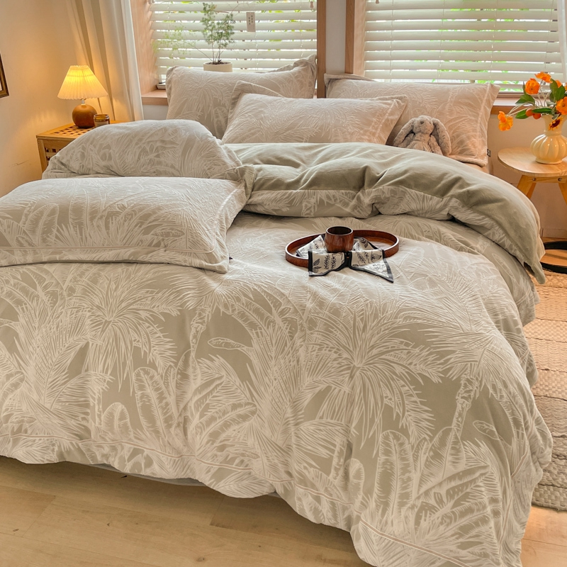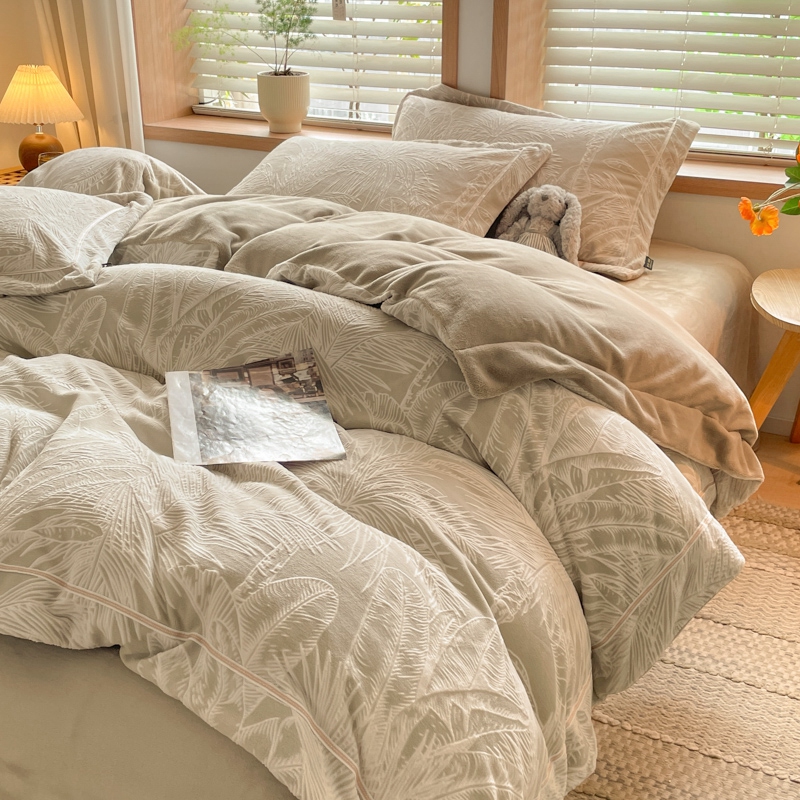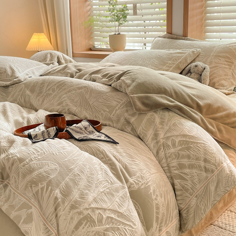 商品名称:简如 2025新款A类加厚冰岛立体雕花牛奶绒浮雕绒四件套(有买家秀) 丛草集-卡其