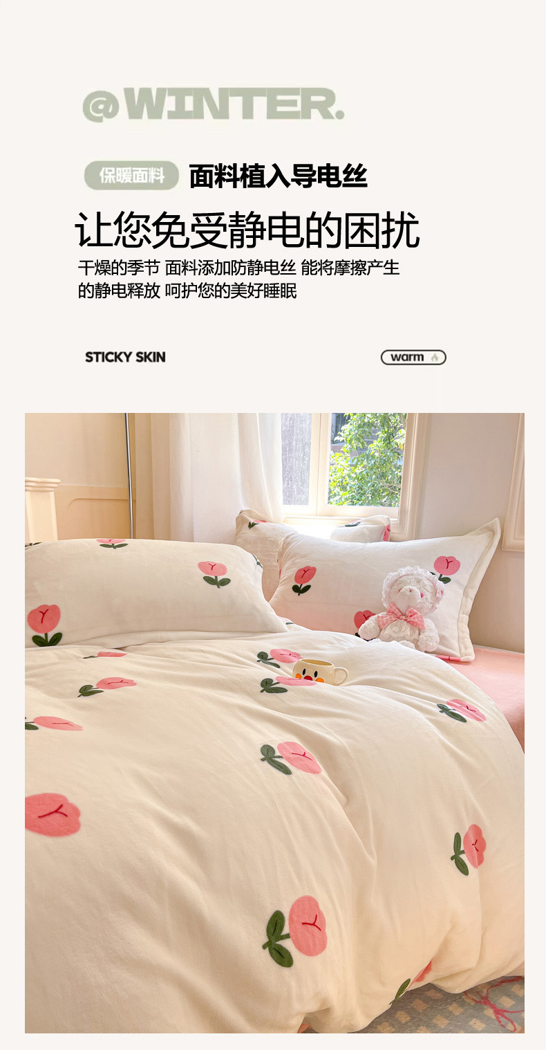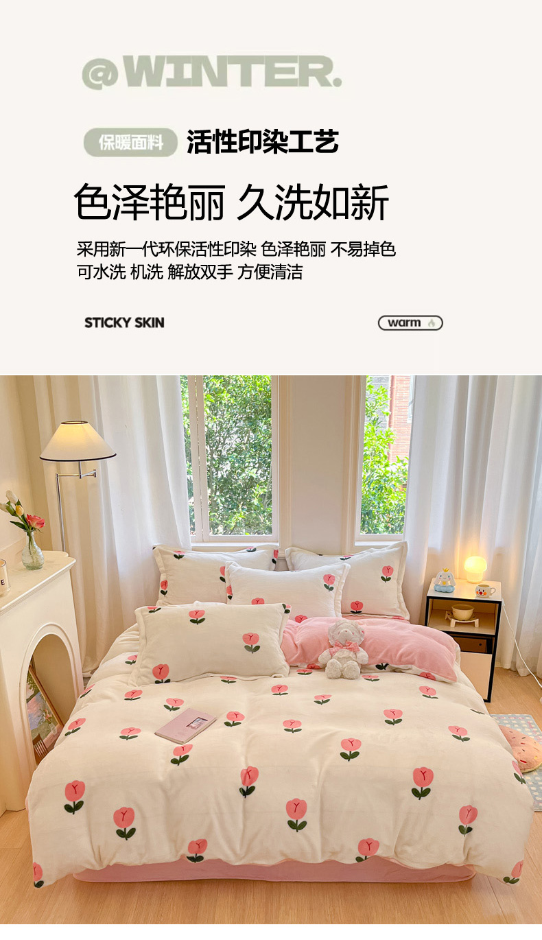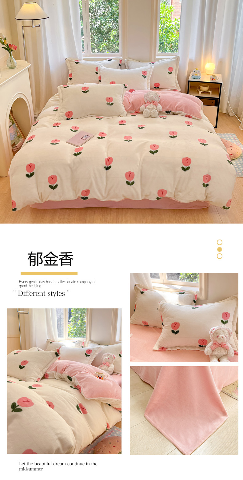 当前位置: 91家纺网 > 商品网购 > 床品套件 > 四件套 > 牛奶绒四件套 > 沐慕 2024新款200g加厚牛奶绒四件套 郁金香