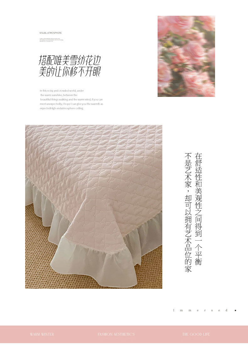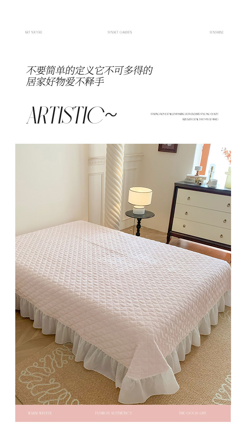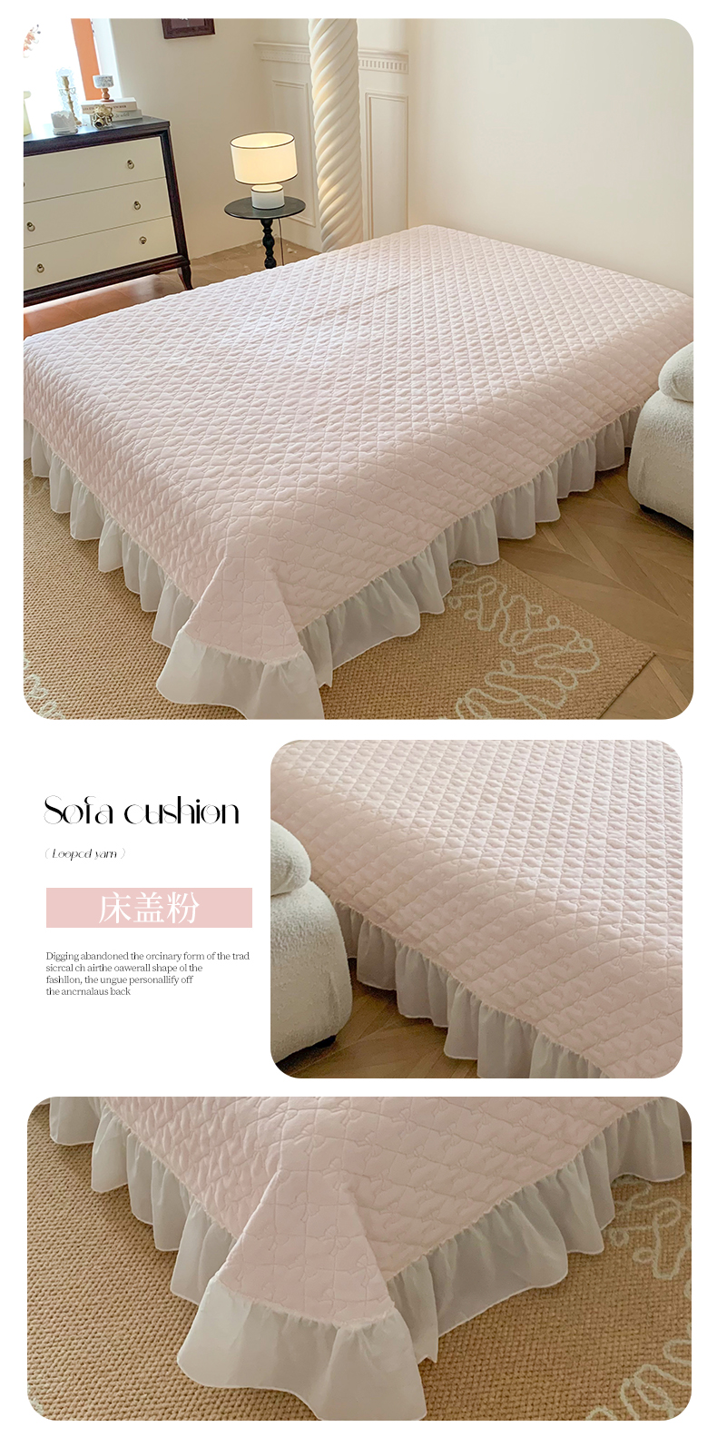 (总)吾欢心 2025新款公主风雪纺边四季通用夹棉床盖,床盖白,床盖粉,床盖黄,床盖咖,床盖绿,床盖抹茶绿,床盖紫