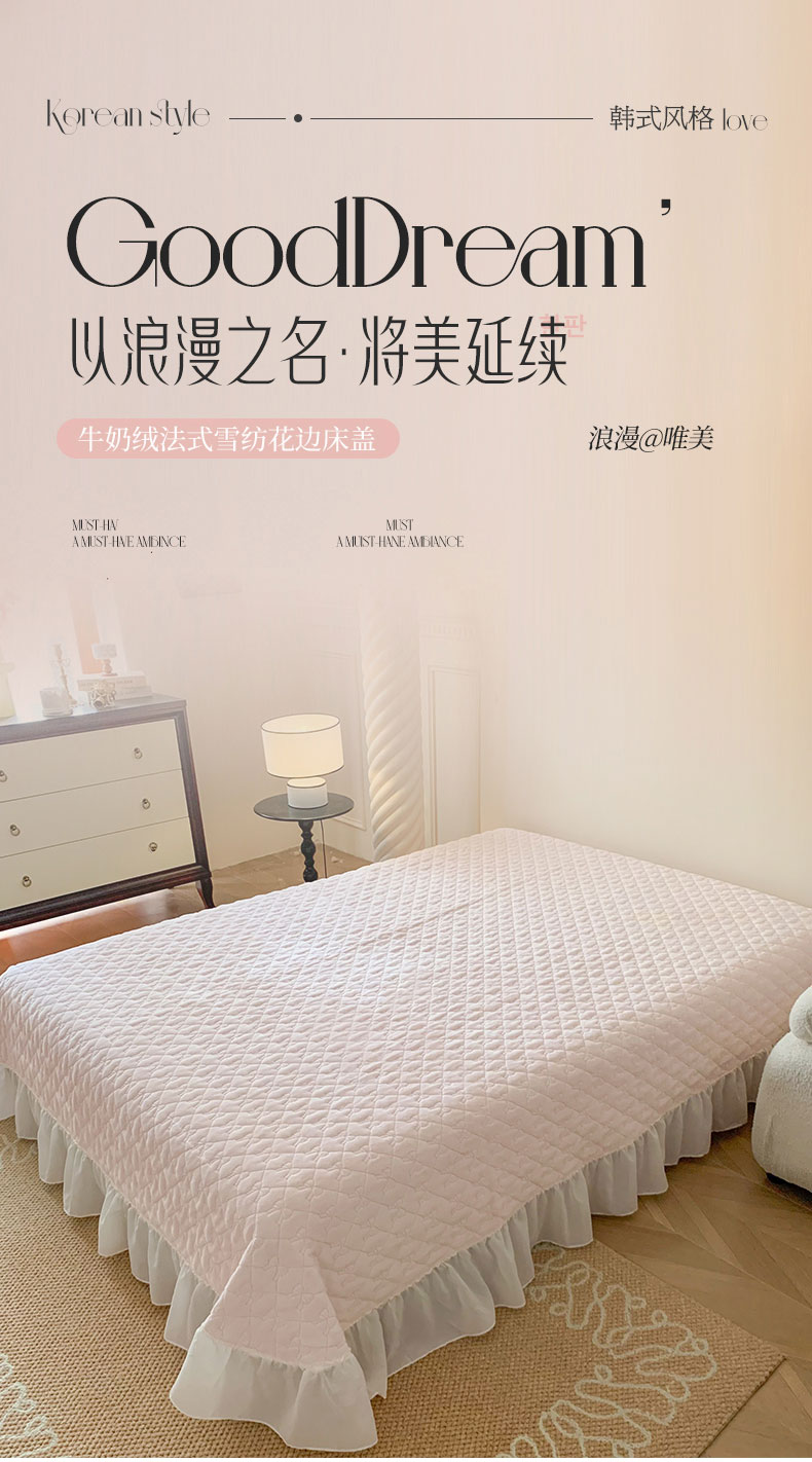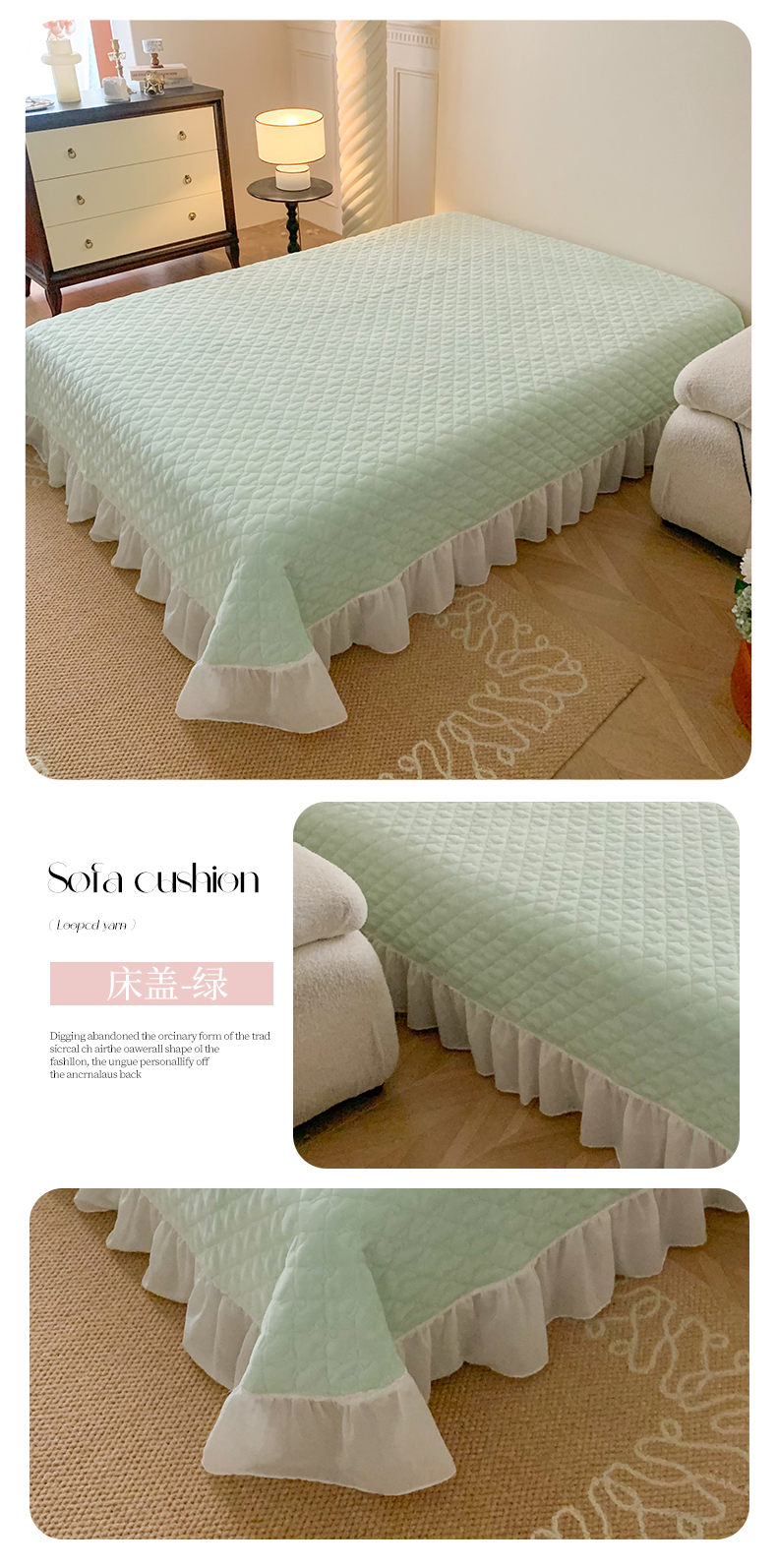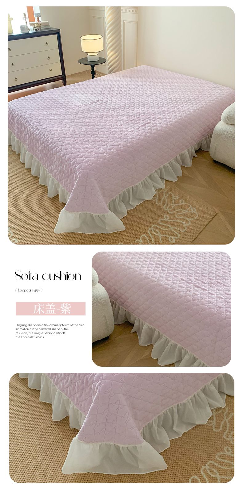 (总)吾欢心 2025新款公主风雪纺边四季通用夹棉床盖,床盖白,床盖粉,床盖黄,床盖咖,床盖绿,床盖抹茶绿,床盖紫