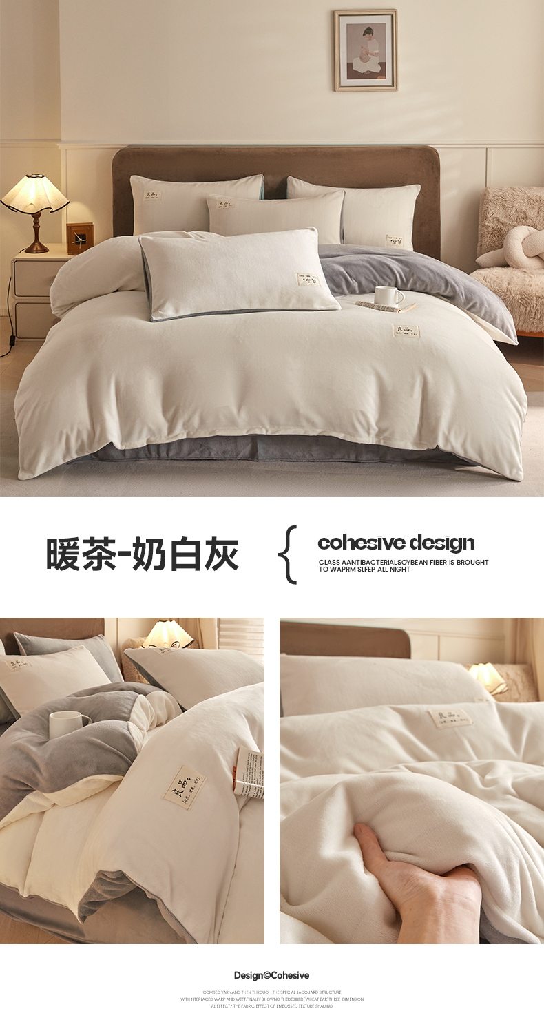 当前位置: 91家纺网 > 商品网购 > 床品套件 > 四件套 > 牛奶绒四件套 > 澳梵家居 2024新款牛奶绒素色双拼四件套--【暖茶系列】 暖茶-奶白灰