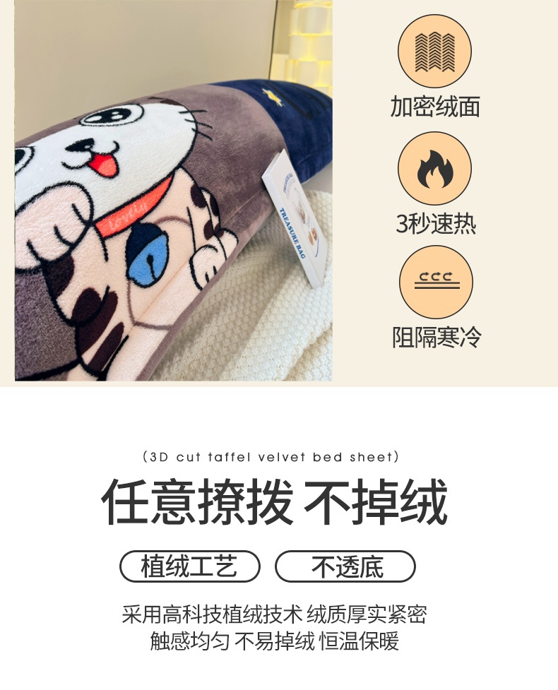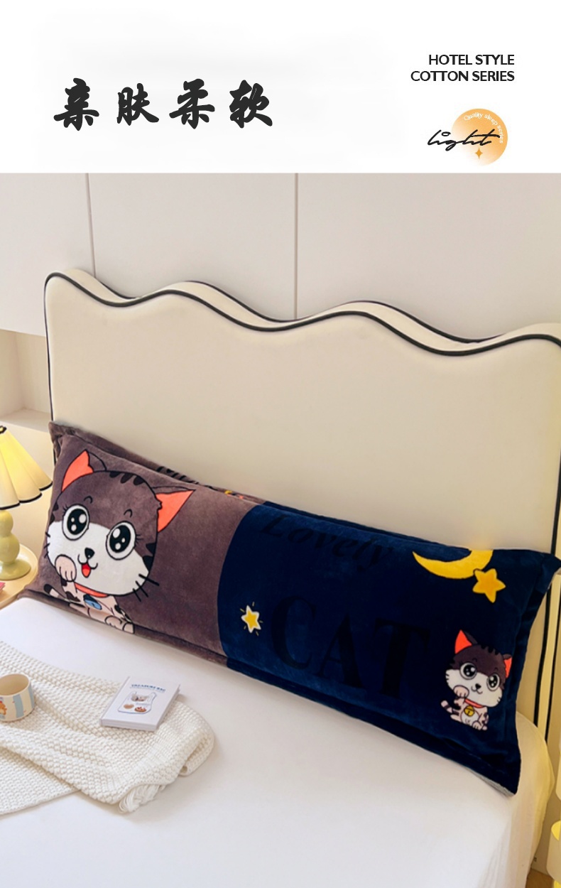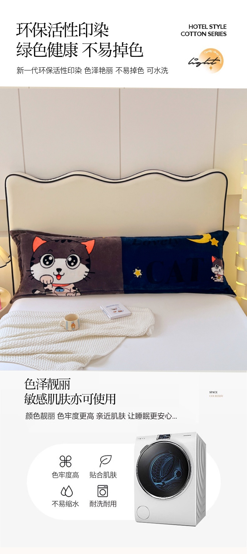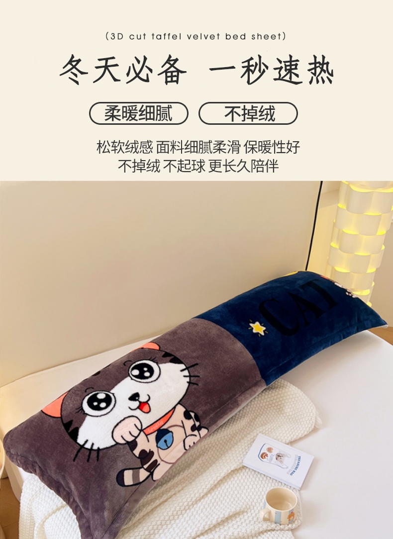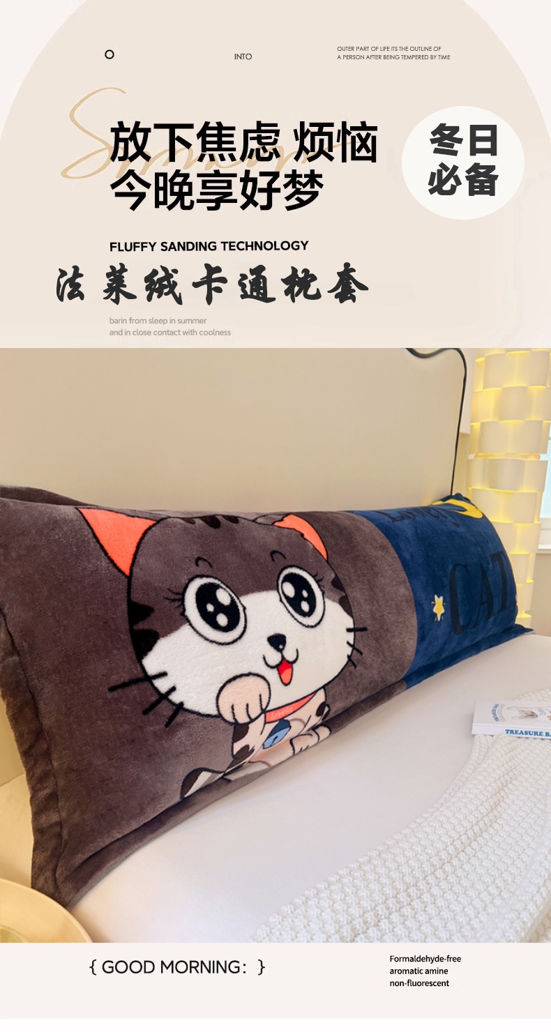 商品名称:圣比熊 2025新款冬季法莱绒枕套牛奶绒1.5m枕头套双人珊瑚绒枕芯套 招财猫