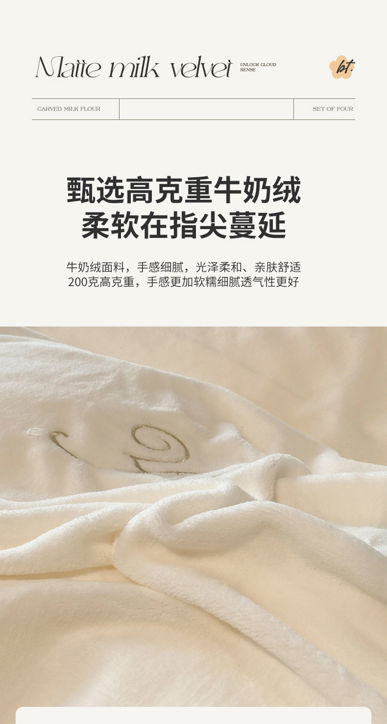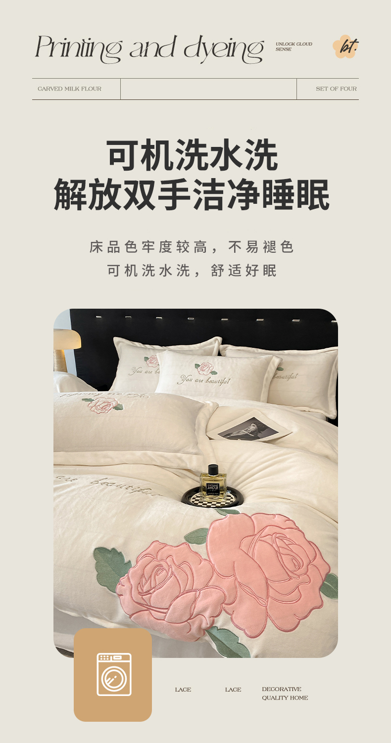 商品名称:(总)你好美丽 2025新款A类200克牛奶绒雅漾大版贴布绣四件套