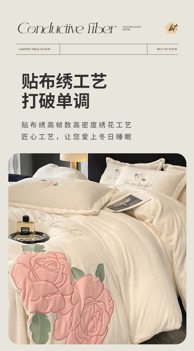 (总)你好美丽 2025新款A类200克牛奶绒雅漾大版贴布绣四件套