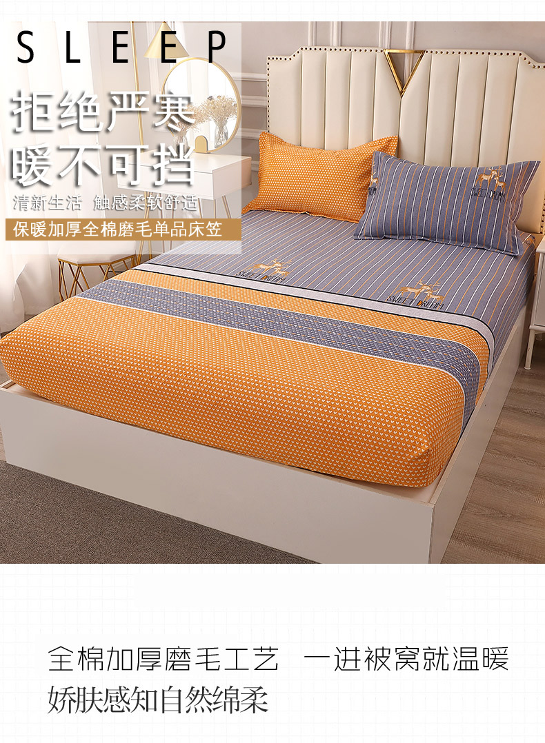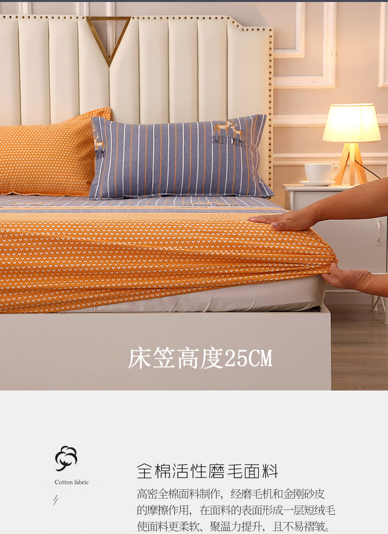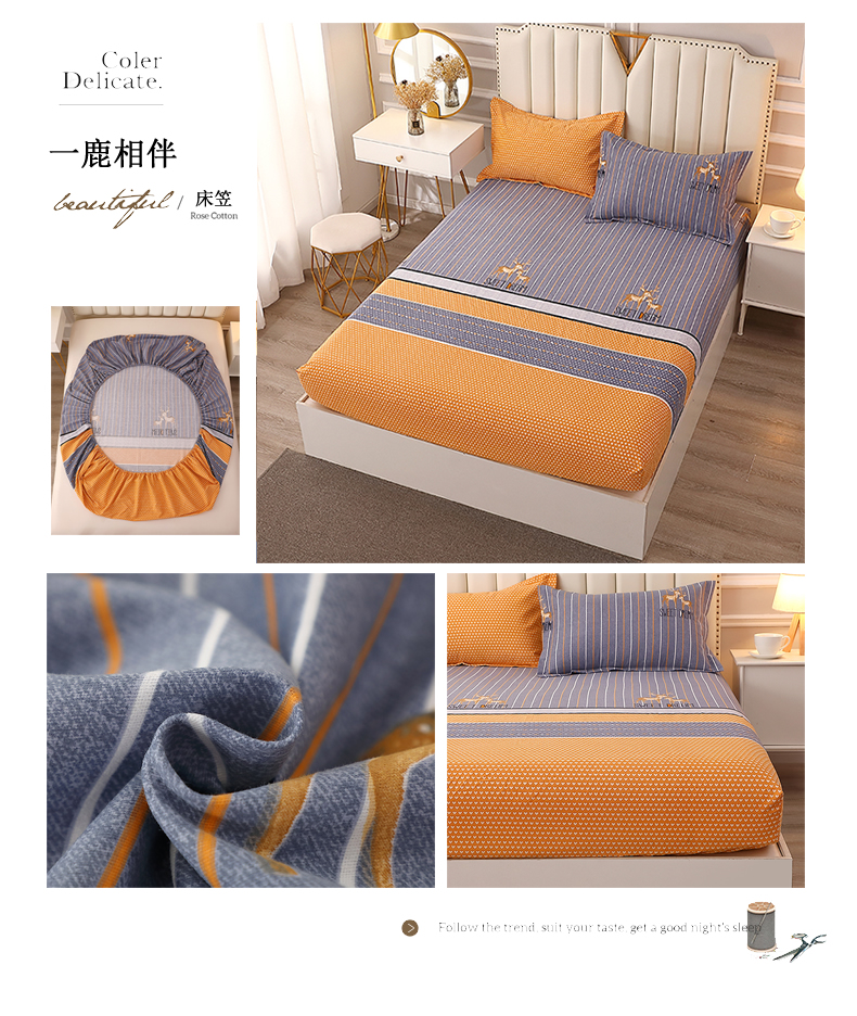 晶缦家纺 2024新款典雅系-全棉活性磨毛多规格单品床笠 一鹿相伴